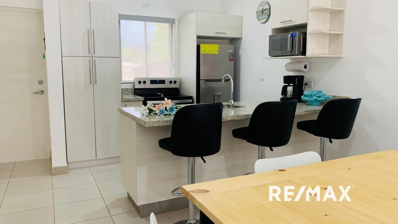 Discover this delightful 2-bedroom, 2-bathroom beach house built in 2020, located in the serene and family-friendly neighborhood of Arenas Herradura. Each bedroom and the living room feature air conditioning for your comfort, while the home boasts a private backyard and covered parking for added convenience.