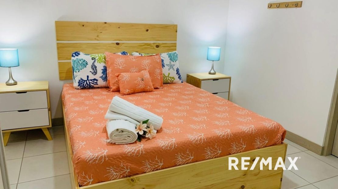 Descubre esta encantadora casa de playa de 2 habitaciones y 2 baños, construida en 2020, ubicada en el tranquilo y familiar vecindario de Arenas Herradura. Cada habitación y la sala de estar cuentan con aire acondicionado para tu comodidad, además de un hermoso jardín privado y estacionamiento techado.