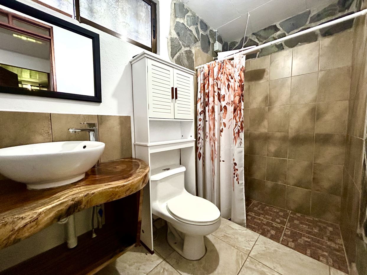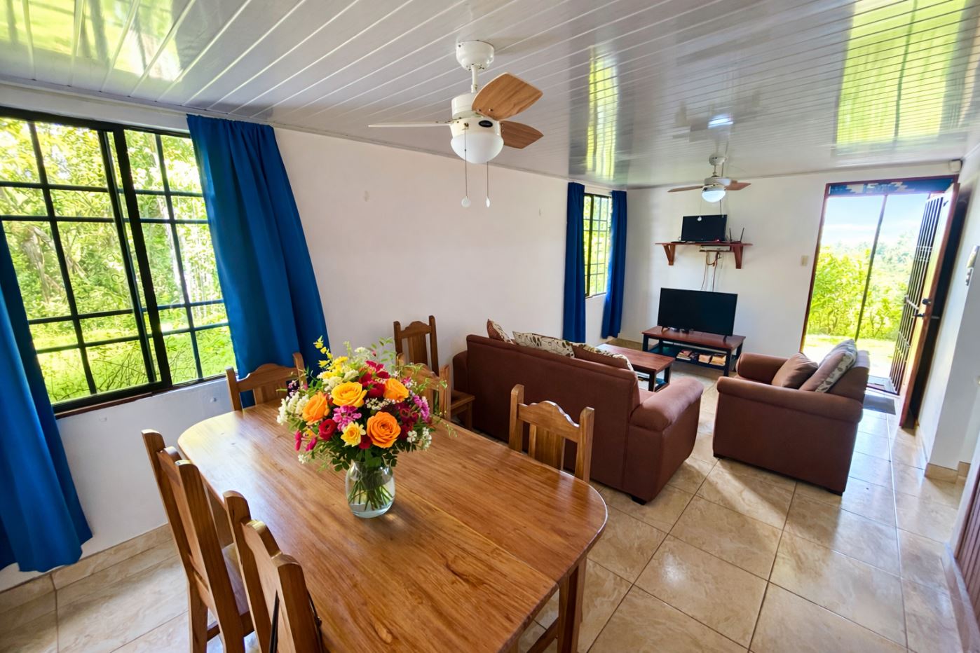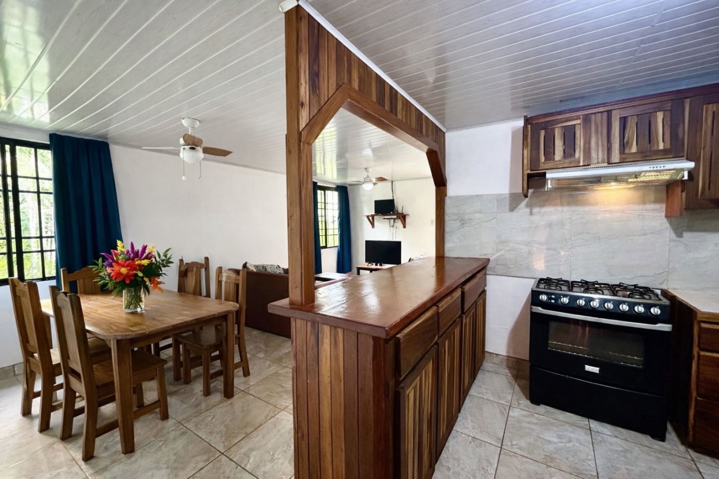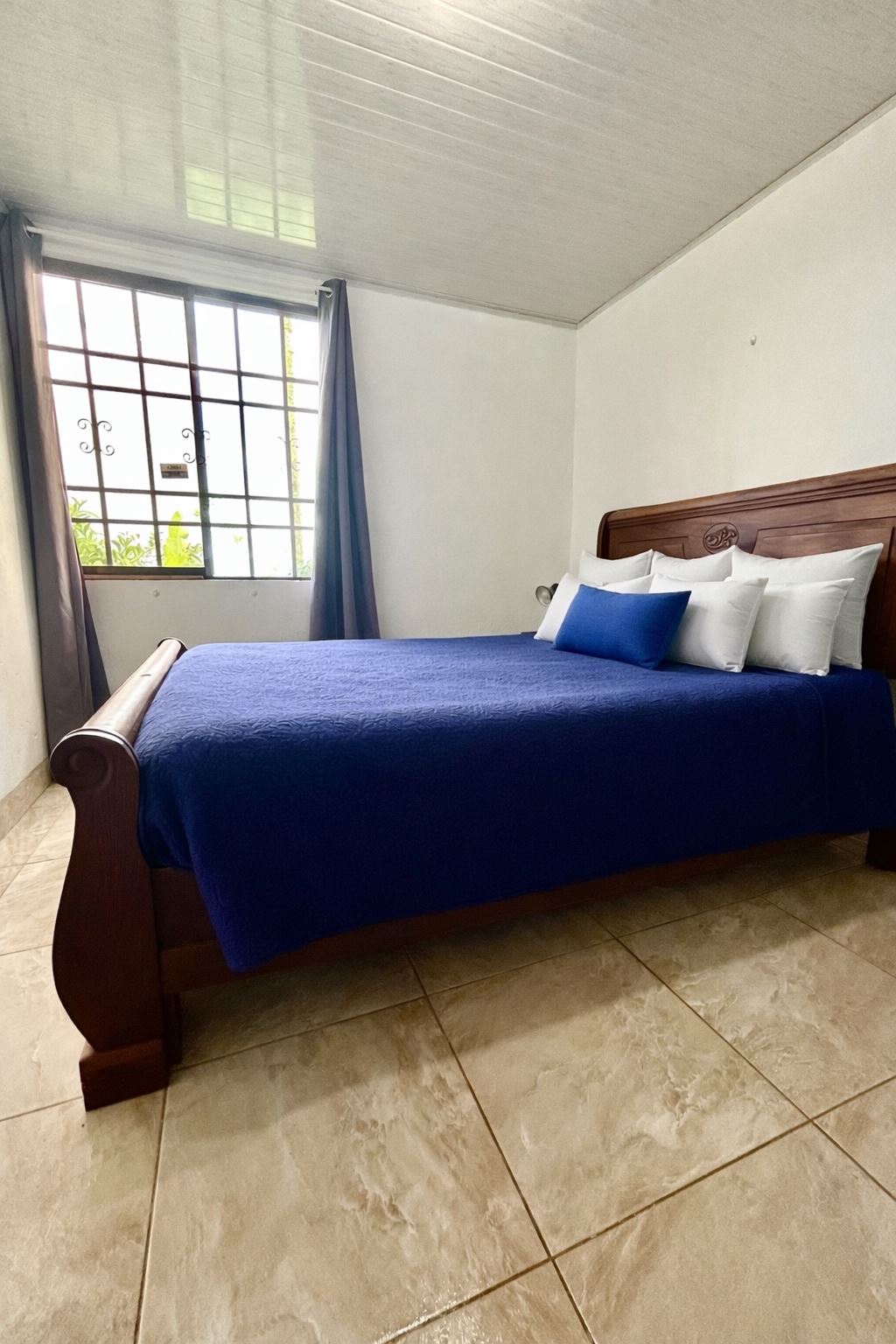 As you step inside, you are greeted by a warm and inviting atmosphere. The home’s quaint, thoughtfully designed interior features an open-concept living and dining area that transitions naturally into a spacious, fully equipped kitchen with beautiful wood cabinetry. The property offers a principal bedroom with exceptional versatility, thanks to its large adjacent sitting area; easily adaptable into a fourth bedroom or an office. With the installation of patio doors, leading out to the garden, and the addition of a deck, this space could fully capture the beautiful views of Lake Arenal, transforming the master suite into a truly spectacular space.