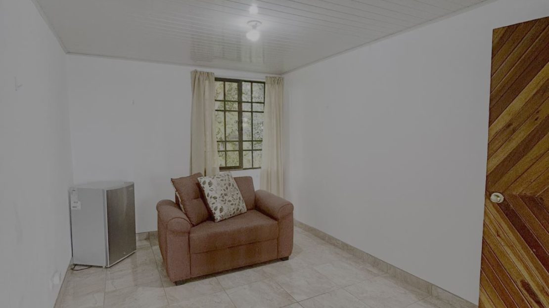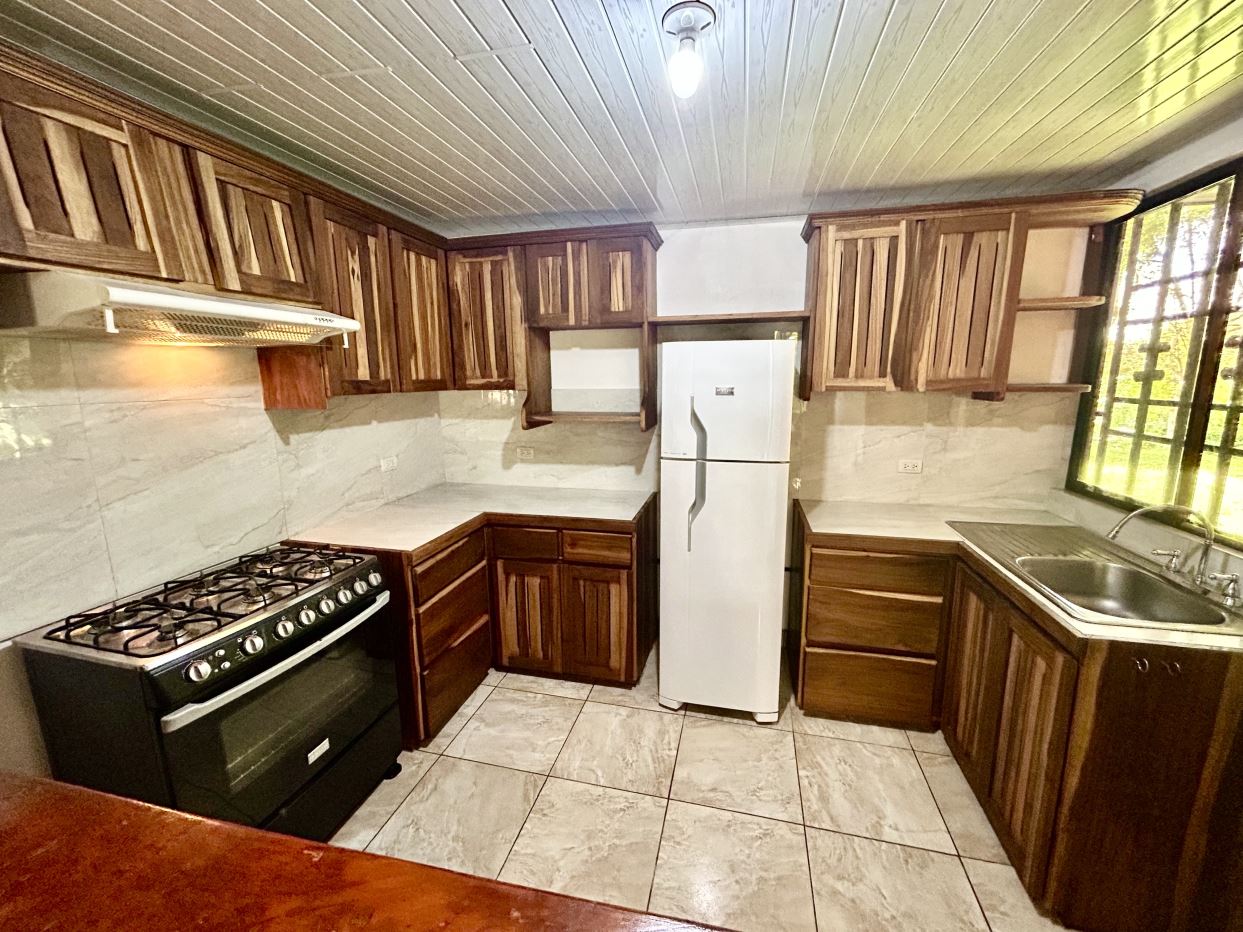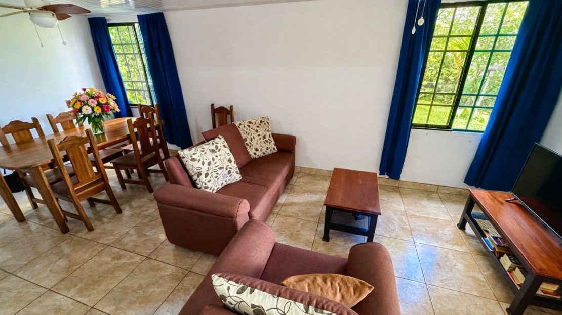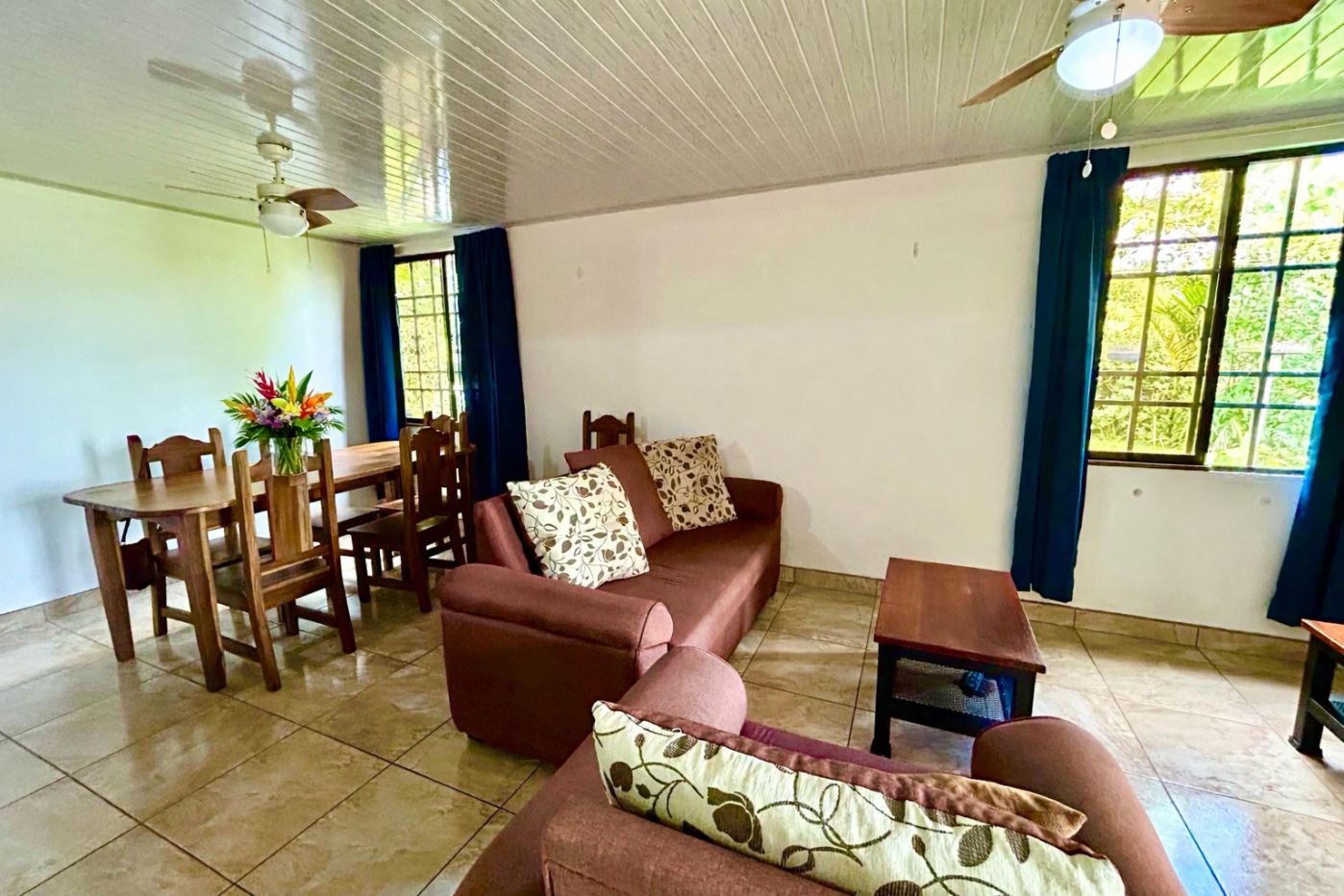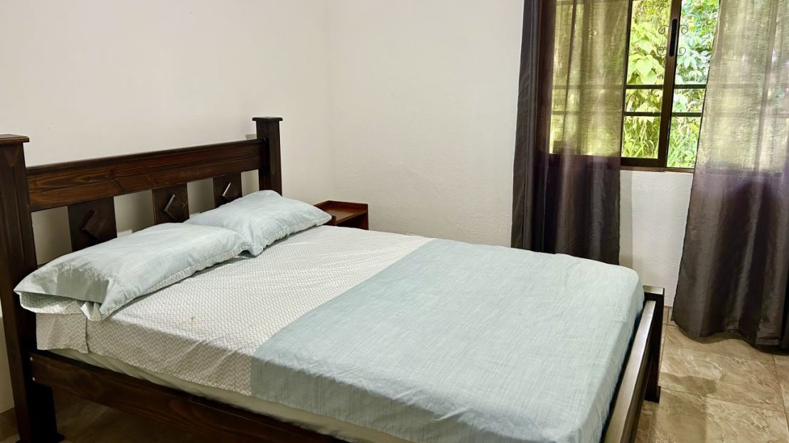 As you step inside, you are greeted by a warm and inviting atmosphere. The home’s quaint, thoughtfully designed interior features an open-concept living and dining area that transitions naturally into a spacious, fully equipped kitchen with beautiful wood cabinetry. The property offers a principal bedroom with exceptional versatility, thanks to its large adjacent sitting area; easily adaptable into a fourth bedroom or an office. With the installation of patio doors, leading out to the garden, and the addition of a deck, this space could fully capture the beautiful views of Lake Arenal, transforming the master suite into a truly spectacular space.