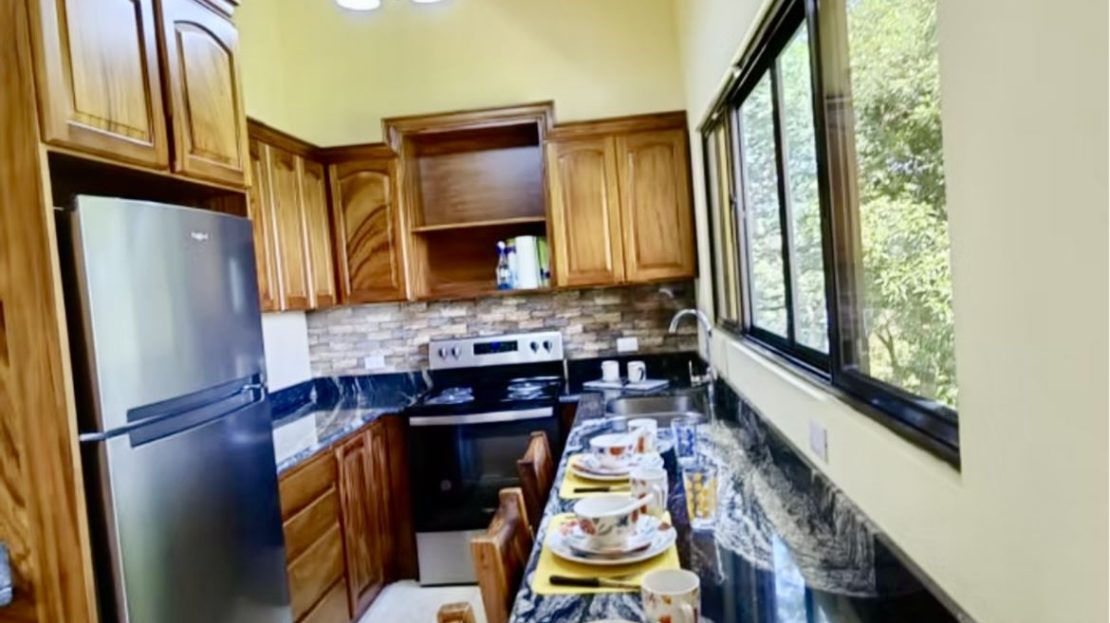 Thoughtfully designed with natural materials and artisan finishes, this 1,080 SF home features an open-concept kitchen, living, and dining area with custom Guanacaste wood cabinetry, granite countertops, new appliances, a picture-window breakfast bar with inspiring lake views, as well as a beautifully crafted built in workstation, perfect for writing, remote work, or creative projects.