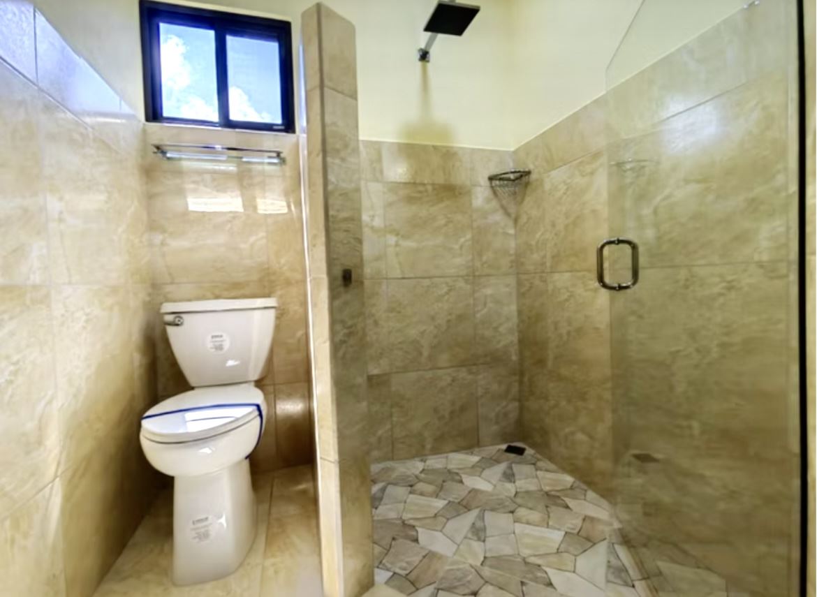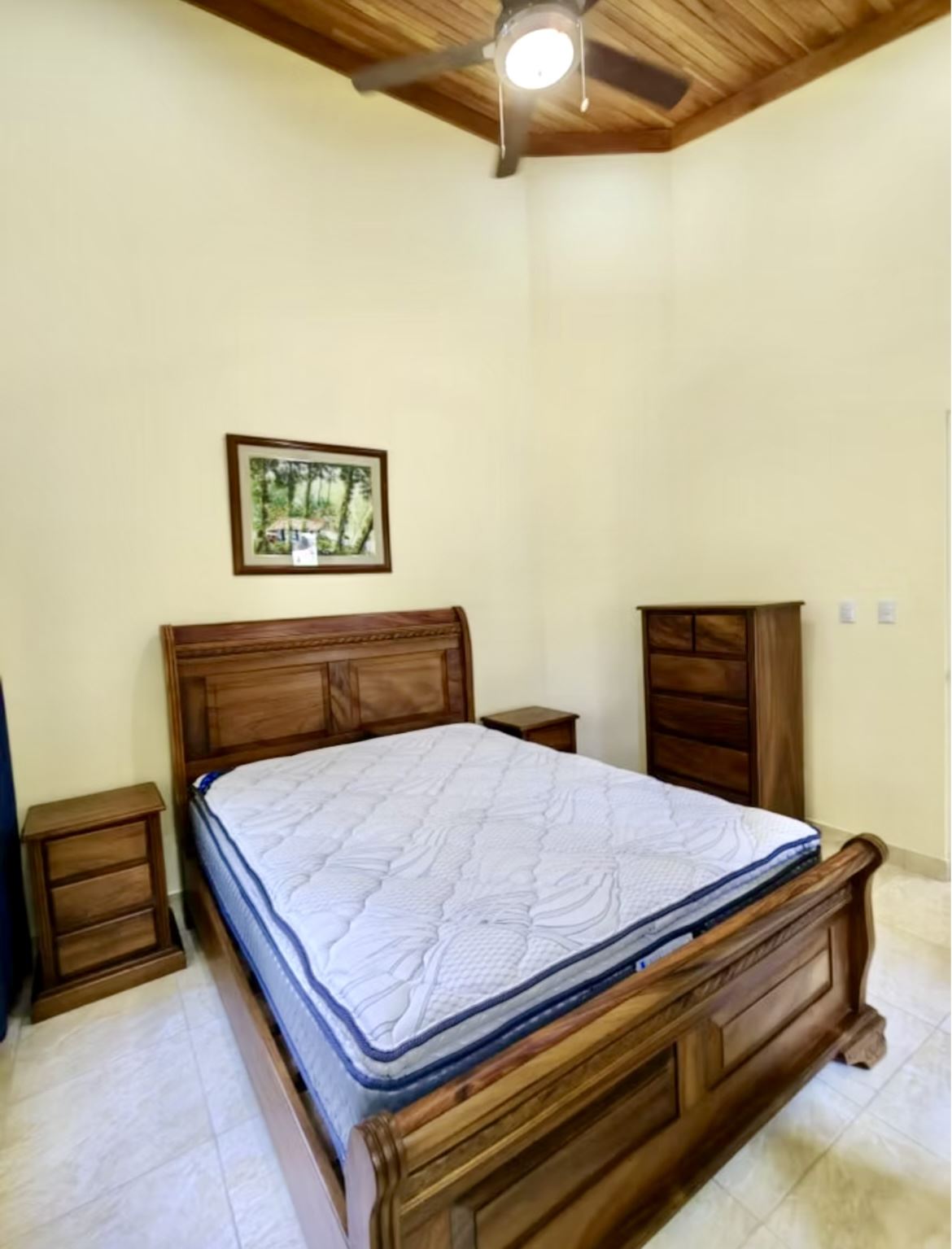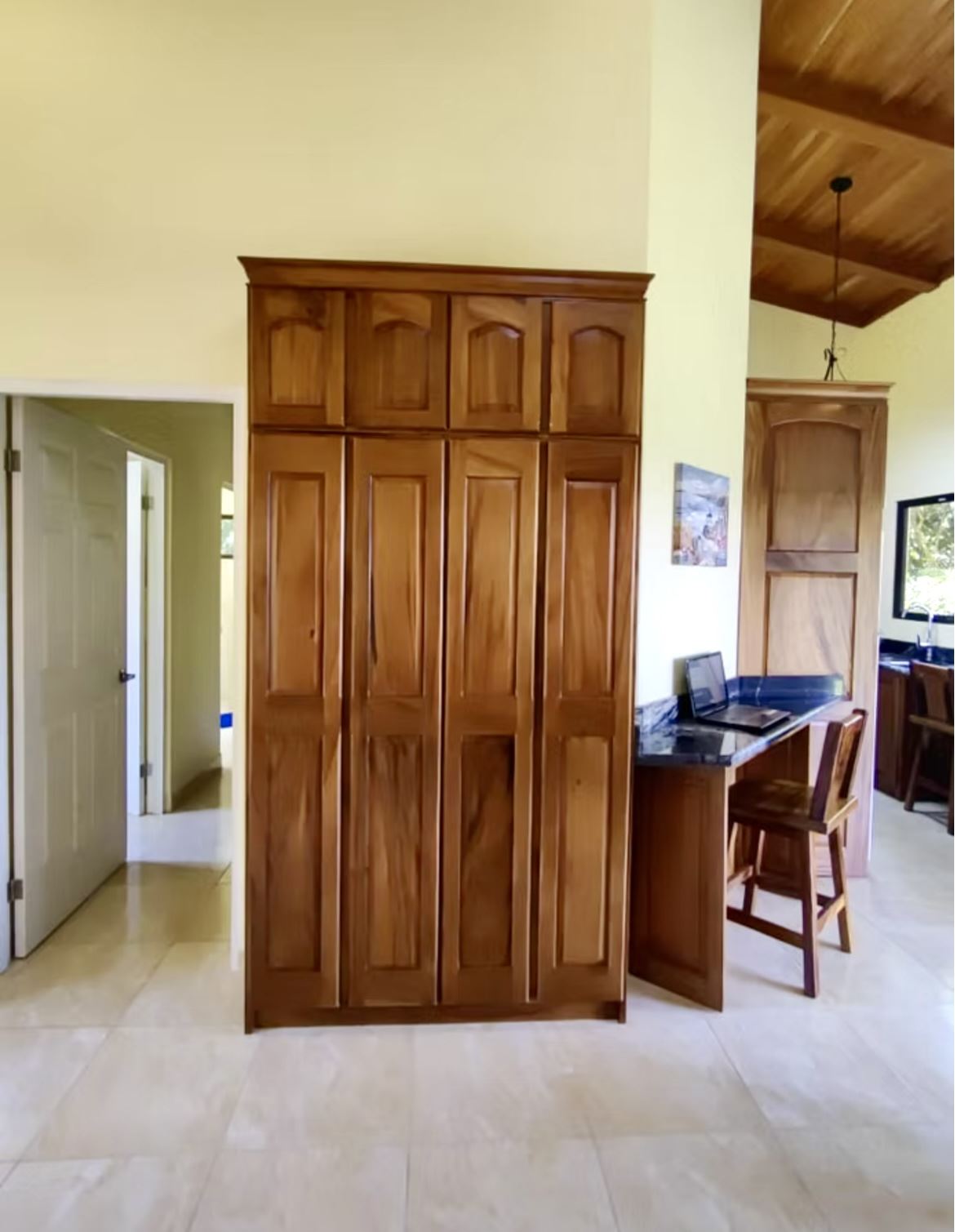 The master suite includes a luxurious ensuite bath with a walk-in shower, in addition to a cozy nook/sitting area overlooking the lake where one can reflect on the day while taking in the glorious lake sunsets. A second full bathroom serves the spacious guest suite and includes Guanacaste cabinetry, as well as in-home laundry facilities.