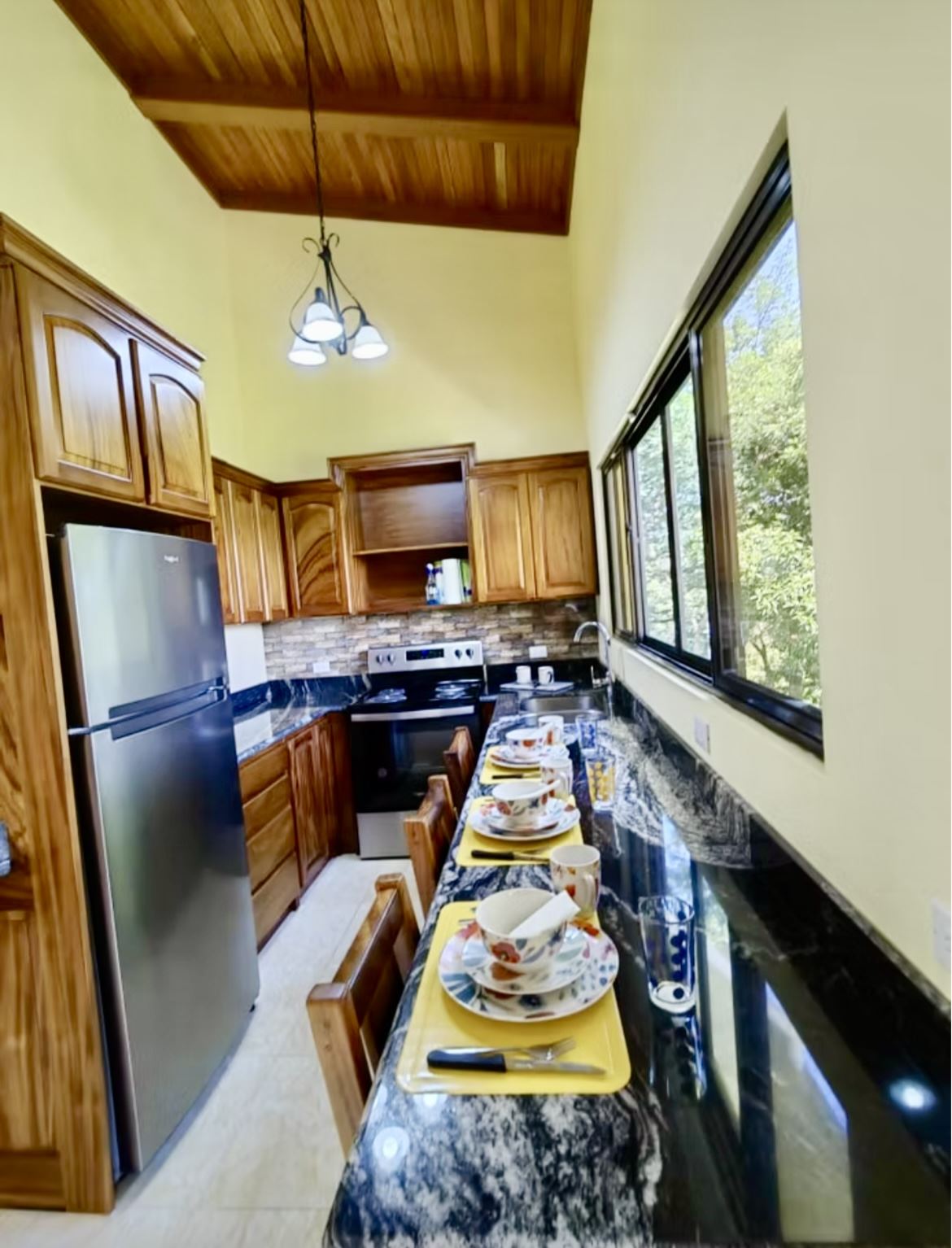 Thoughtfully designed with natural materials and artisan finishes, this 1,080 SF home features an open-concept kitchen, living, and dining area with custom Guanacaste wood cabinetry, granite countertops, new appliances, a picture-window breakfast bar with inspiring lake views, as well as a beautifully crafted built in workstation, perfect for writing, remote work, or creative projects.