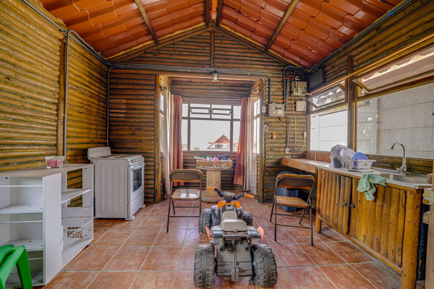 La casa se distribuye en dos niveles con una excelente distribución y detalles en madera tratada contra plagas:
