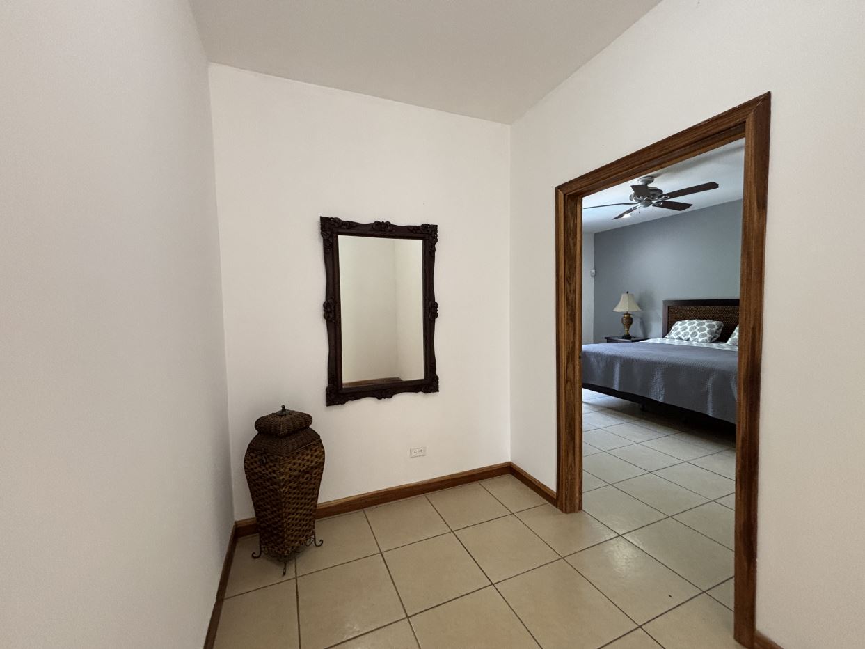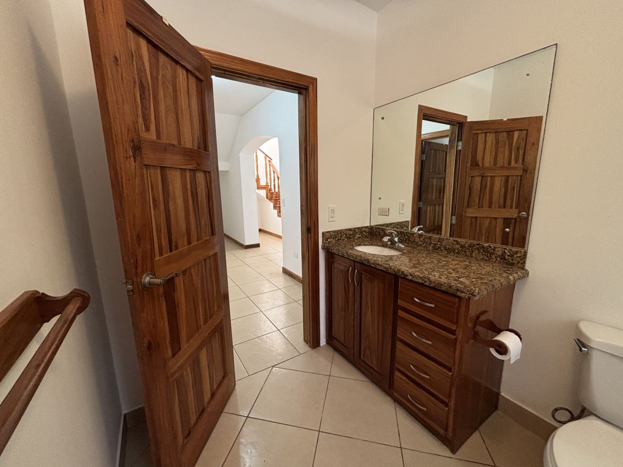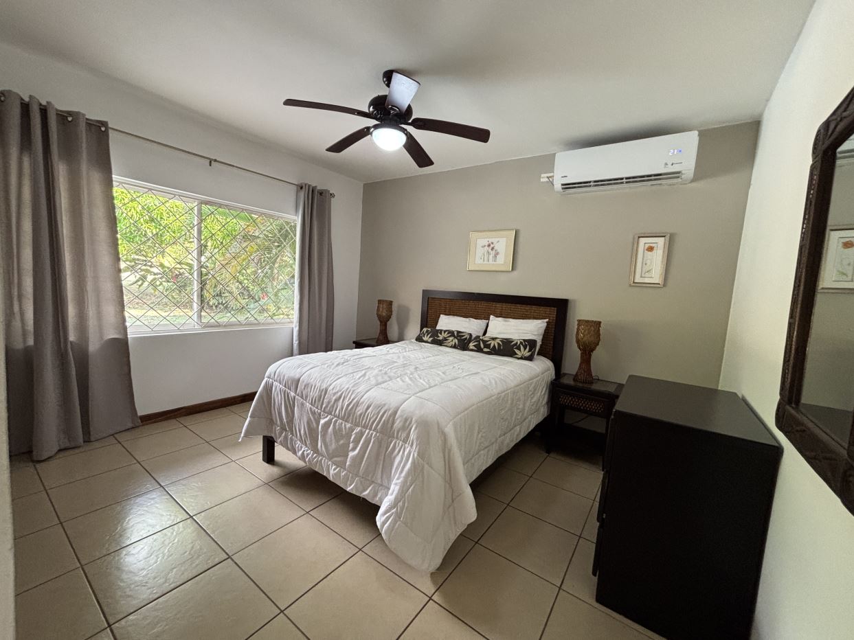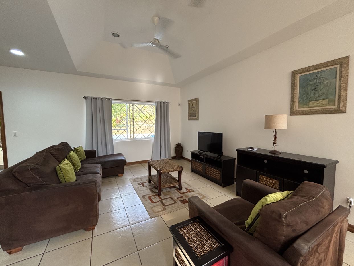 On the first floor, you’ll find two well-sized bedrooms with a shared bathroom, a cozy living room, and a fully equipped kitchen with a dishwasher and a separate laundry room. Both the kitchen and living room open directly to a charming gazebo-style covered dining area, perfect for entertaining guests or enjoying outdoor meals year-round. From here, step straight into your private swimming pool and beautifully maintained garden, where you can fully embrace the Costa Rican lifestyle.