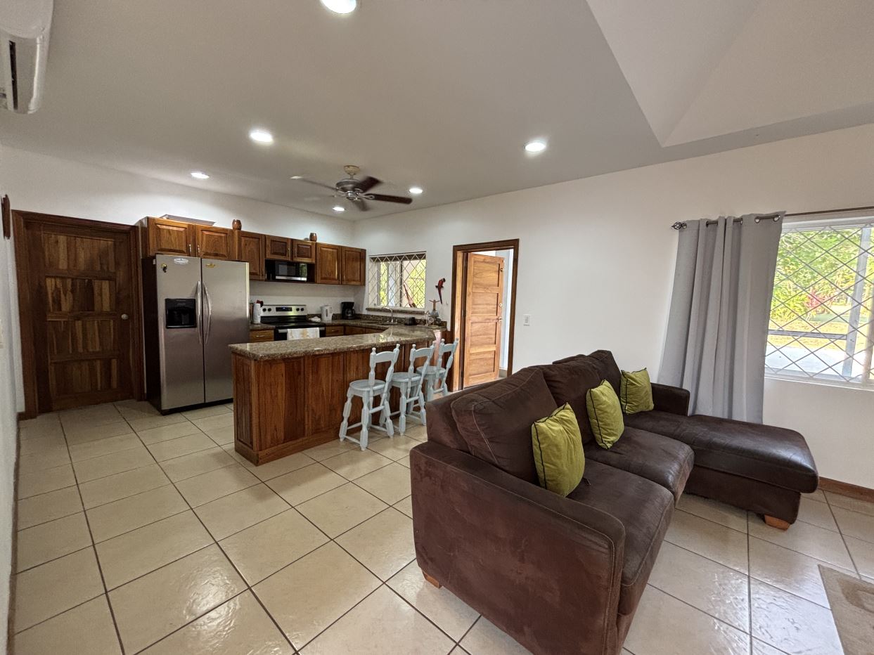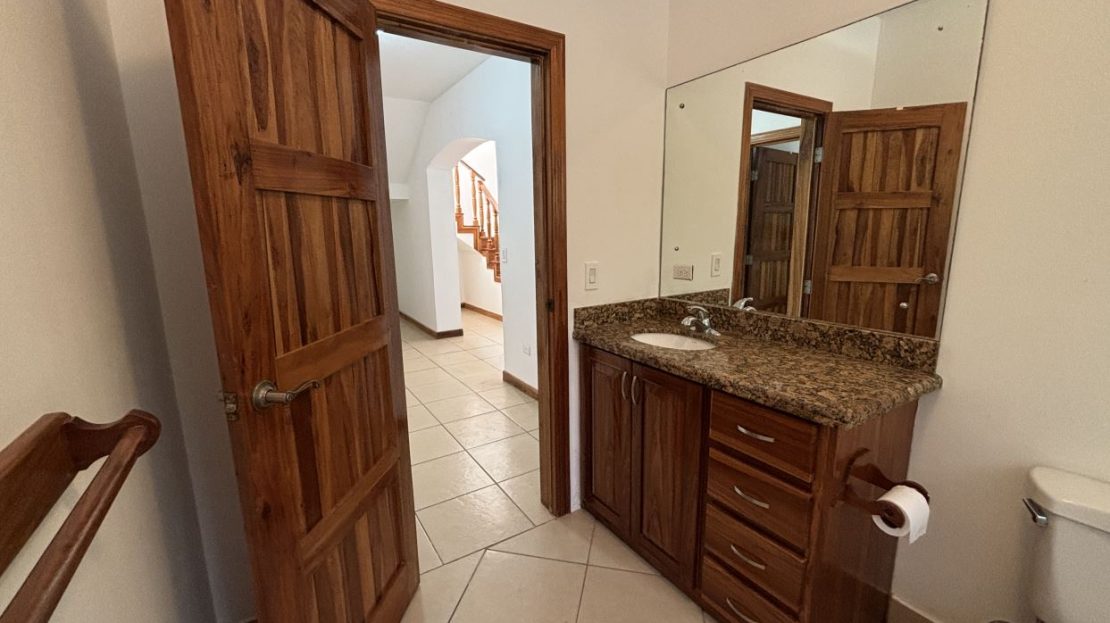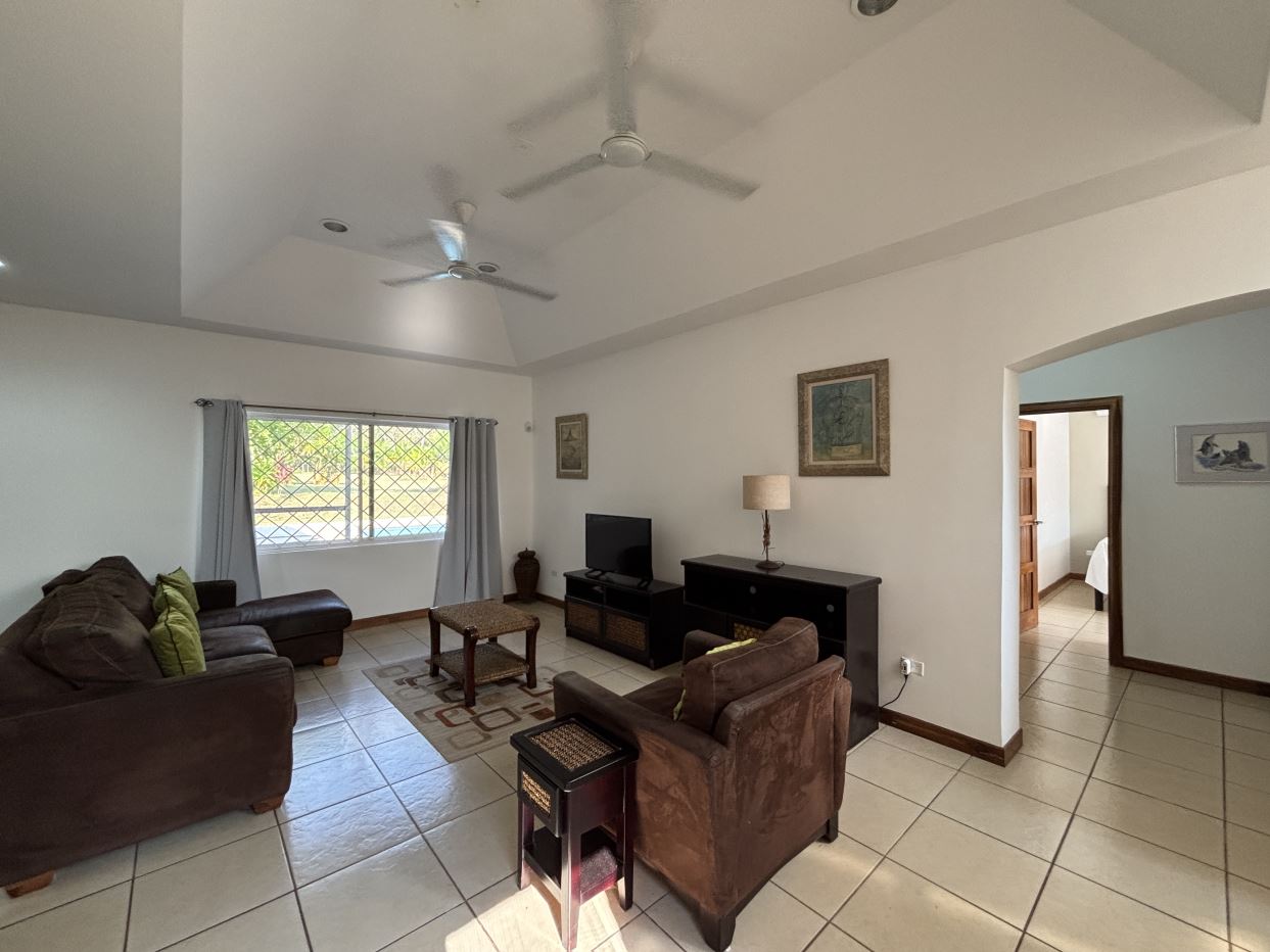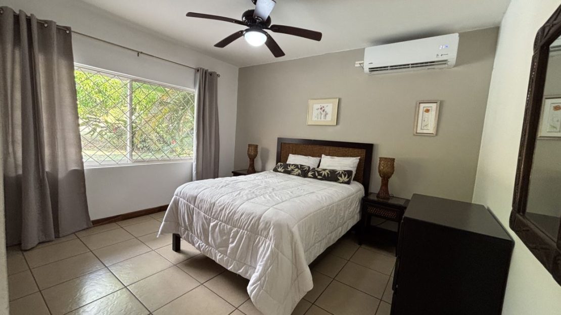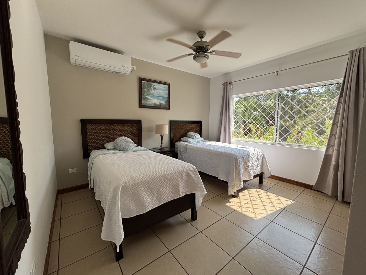 On the first floor, you’ll find two well-sized bedrooms with a shared bathroom, a cozy living room, and a fully equipped kitchen with a dishwasher and a separate laundry room. Both the kitchen and living room open directly to a charming gazebo-style covered dining area, perfect for entertaining guests or enjoying outdoor meals year-round. From here, step straight into your private swimming pool and beautifully maintained garden, where you can fully embrace the Costa Rican lifestyle.