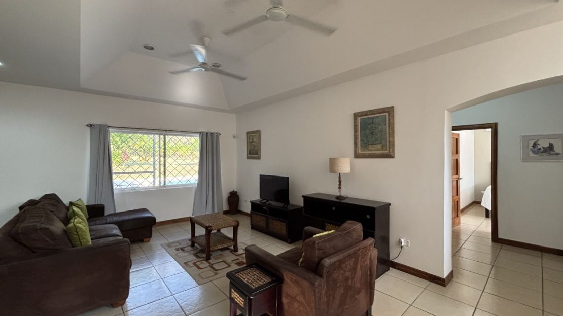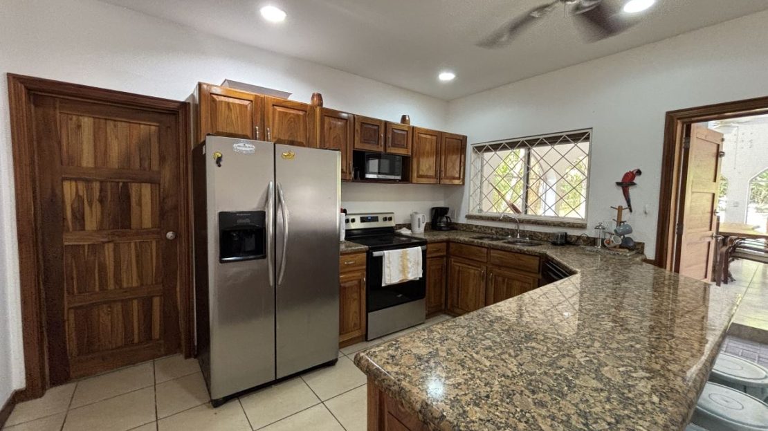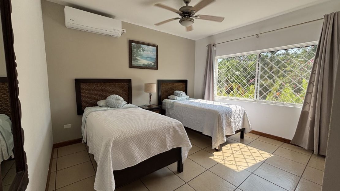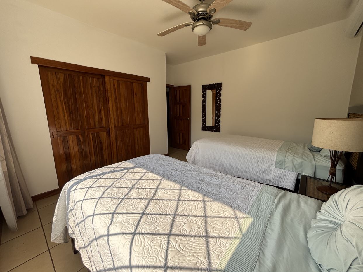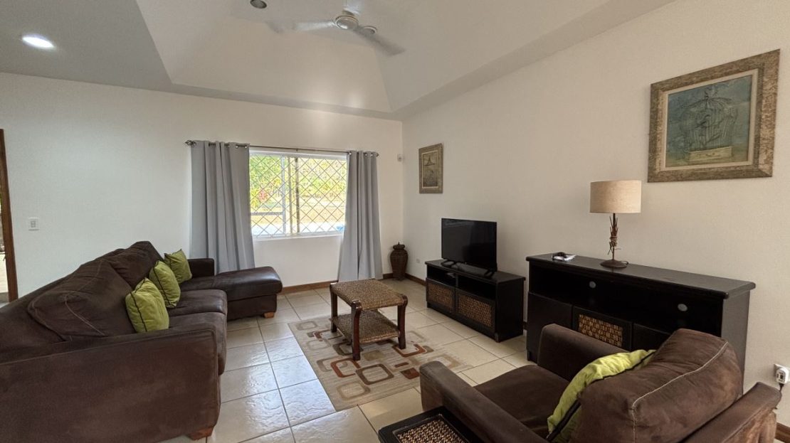 On the first floor, you’ll find two well-sized bedrooms with a shared bathroom, a cozy living room, and a fully equipped kitchen with a dishwasher and a separate laundry room. Both the kitchen and living room open directly to a charming gazebo-style covered dining area, perfect for entertaining guests or enjoying outdoor meals year-round. From here, step straight into your private swimming pool and beautifully maintained garden, where you can fully embrace the Costa Rican lifestyle.