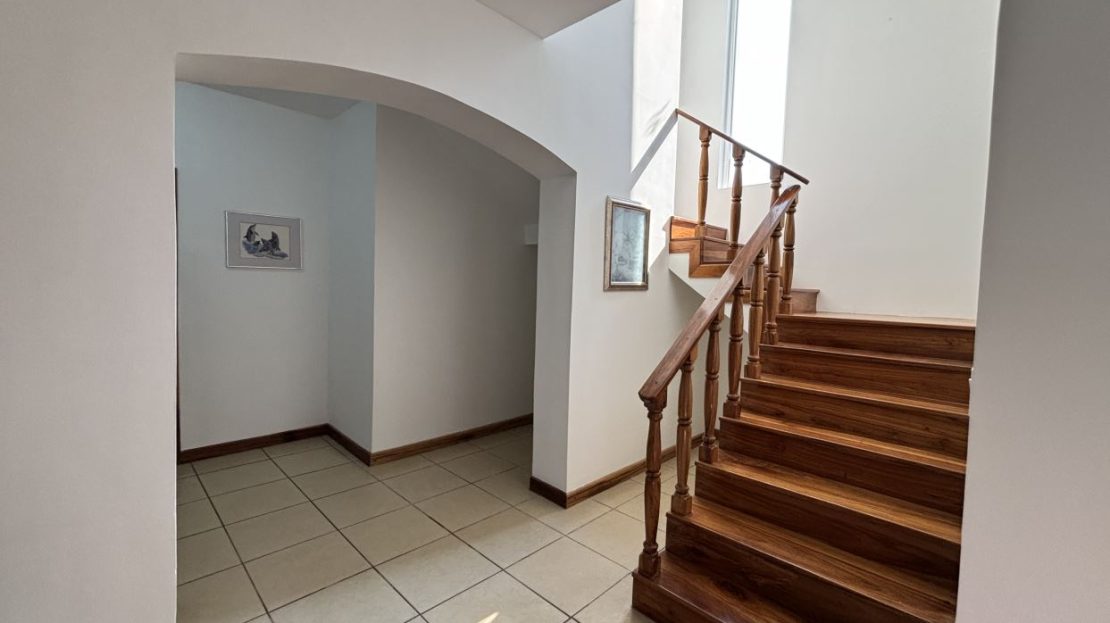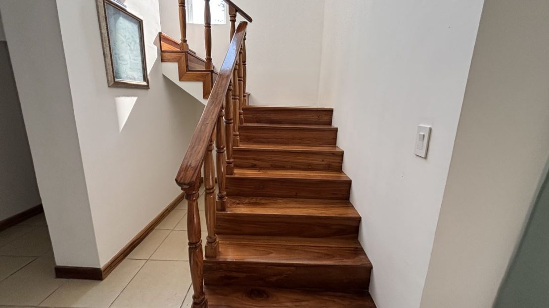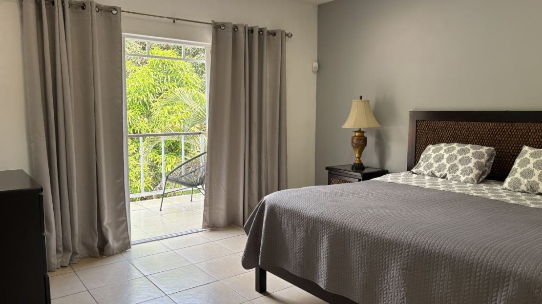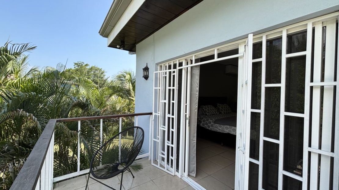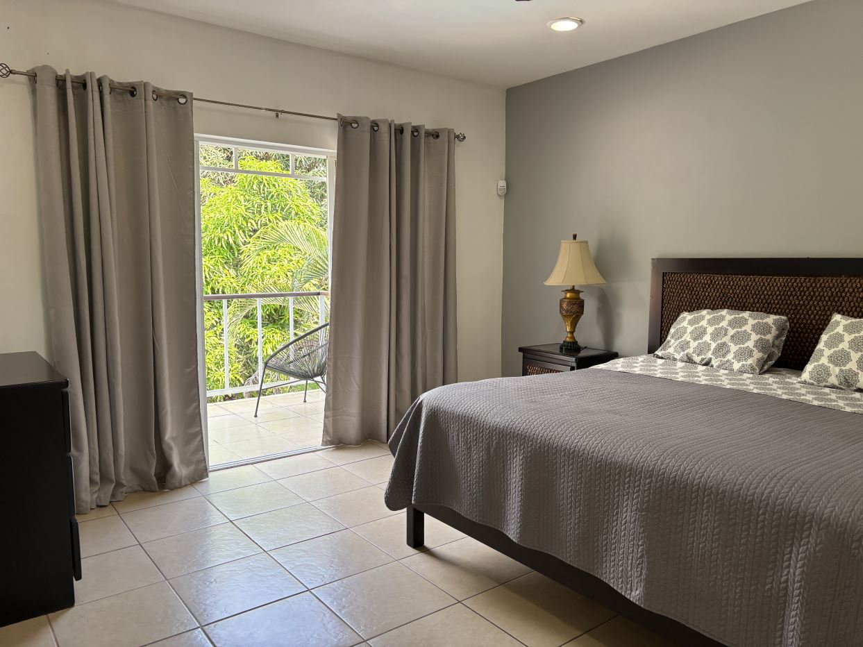 El segundo piso está dedicado por completo a una amplia habitación principal con baño privado, vestidor tipo walk-in y un balcón con vistas al exuberante jardín — el espacio perfecto para disfrutar de un café por la mañana o relajarse al atardecer.