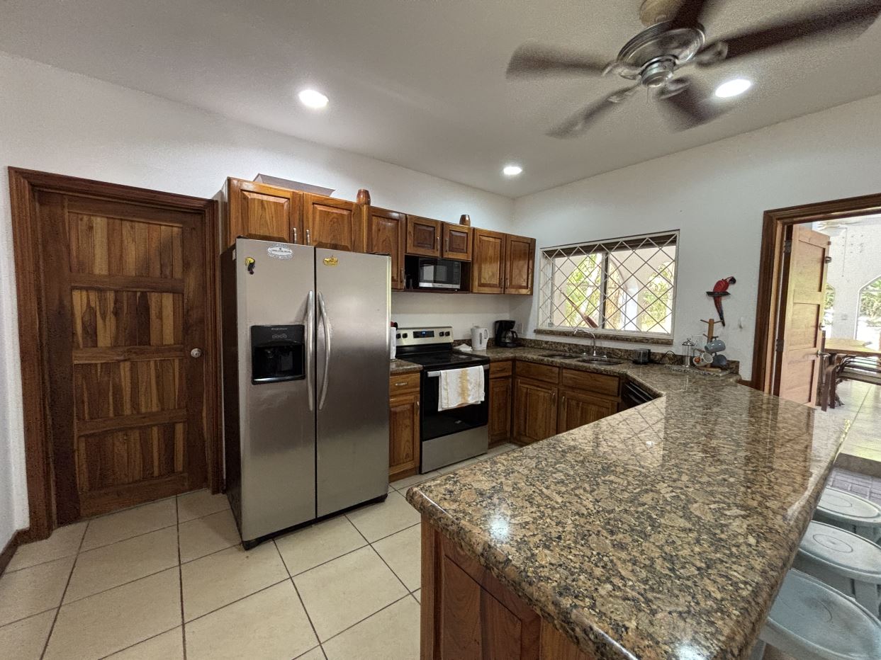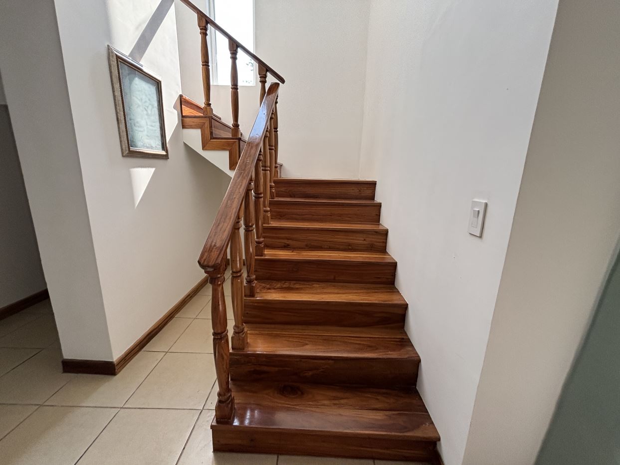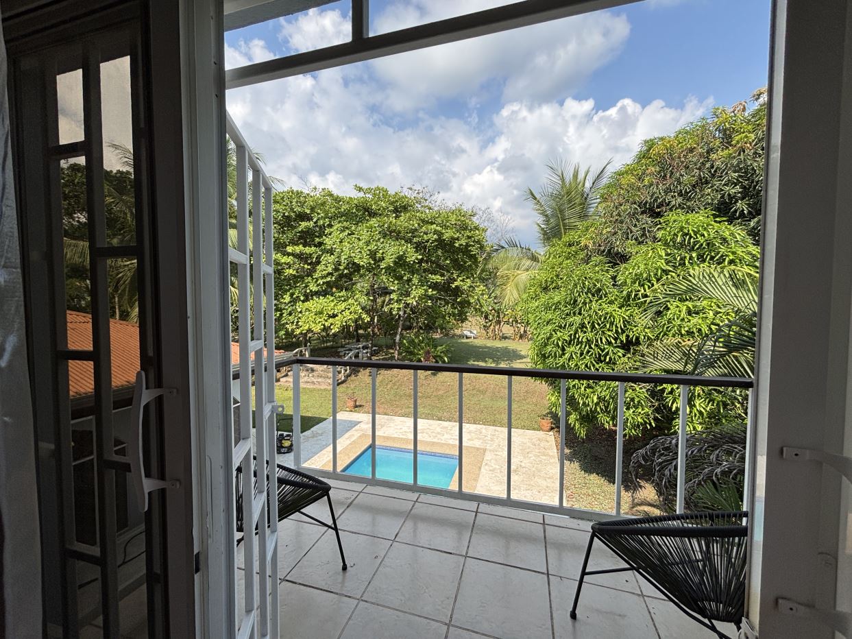 En la primera planta encontrarás dos habitaciones adicionales de buen tamaño que comparten un baño, una acogedora sala de estar y una cocina totalmente equipada con lavaplatos y cuarto de pilas independiente. Tanto la cocina como la sala de estar se conectan directamente con un encantador comedor exterior techado tipo gazebo, ideal para recibir invitados o disfrutar de comidas al aire libre durante todo el año. Desde aquí, tendrás acceso directo a tu piscina privada y a un jardínbellamente cuidado, donde podrás vivir plenamente el estilo de vida costarricense.