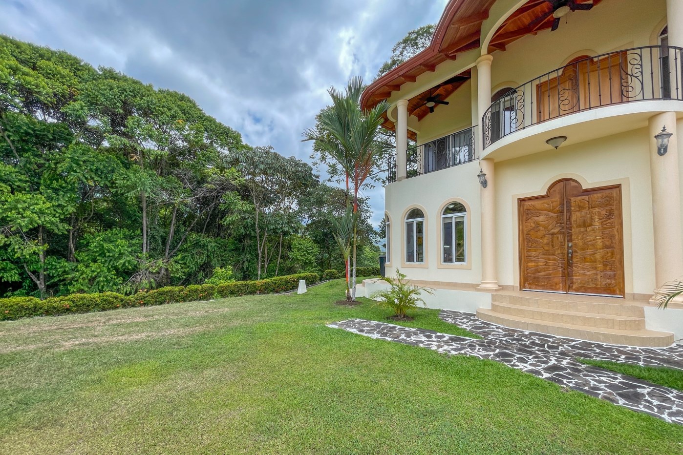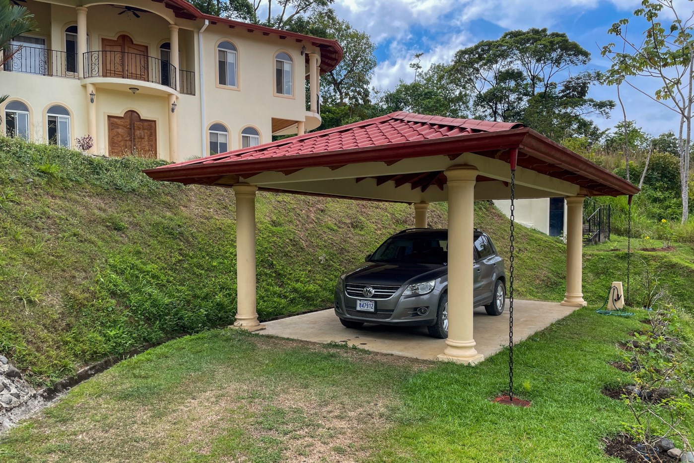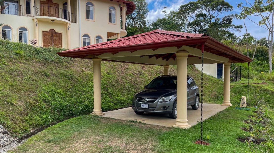 Upon arrival, you will find that the home offers a couple of convenient methods of access including a covered carport by the road with easy entry/exit plus it has a gated-entry option for you drive up to the front of the home as well. As you approach, you will see the lush tropical landscaping with an abundance of ornamental plants and a handful of fruit trees as well as a vibrant grass area perfect for kids to play outside. The back of the property is a green space (maintained & protected by the HOA) covered by jungle and populated by abundant wildlife as well as a running stream that together provides the soothing natural soundtrack of the home, reminding you that you are truly in a tropical paradise. The size and layout of the property is perfect to indulge your gardening hobby with room for a greenhouse or more fruit trees for your daily enjoyment. Imagine enjoying tropical fruit from your garden while entertaining friends and family in your classic and spacious Ojochal Costa Rican home.
