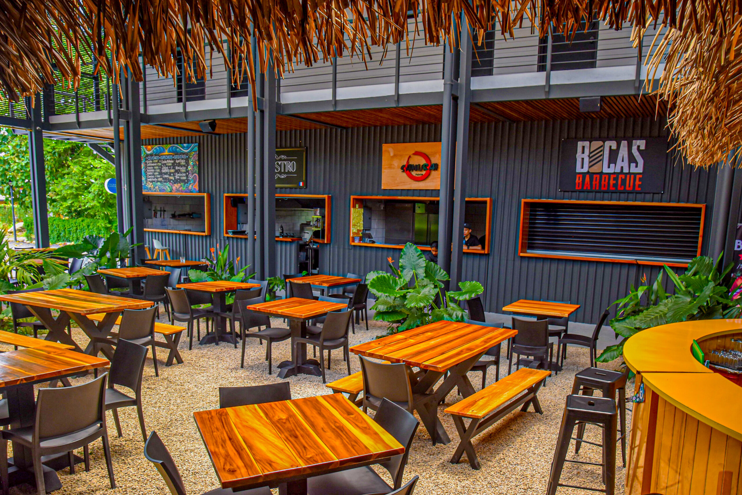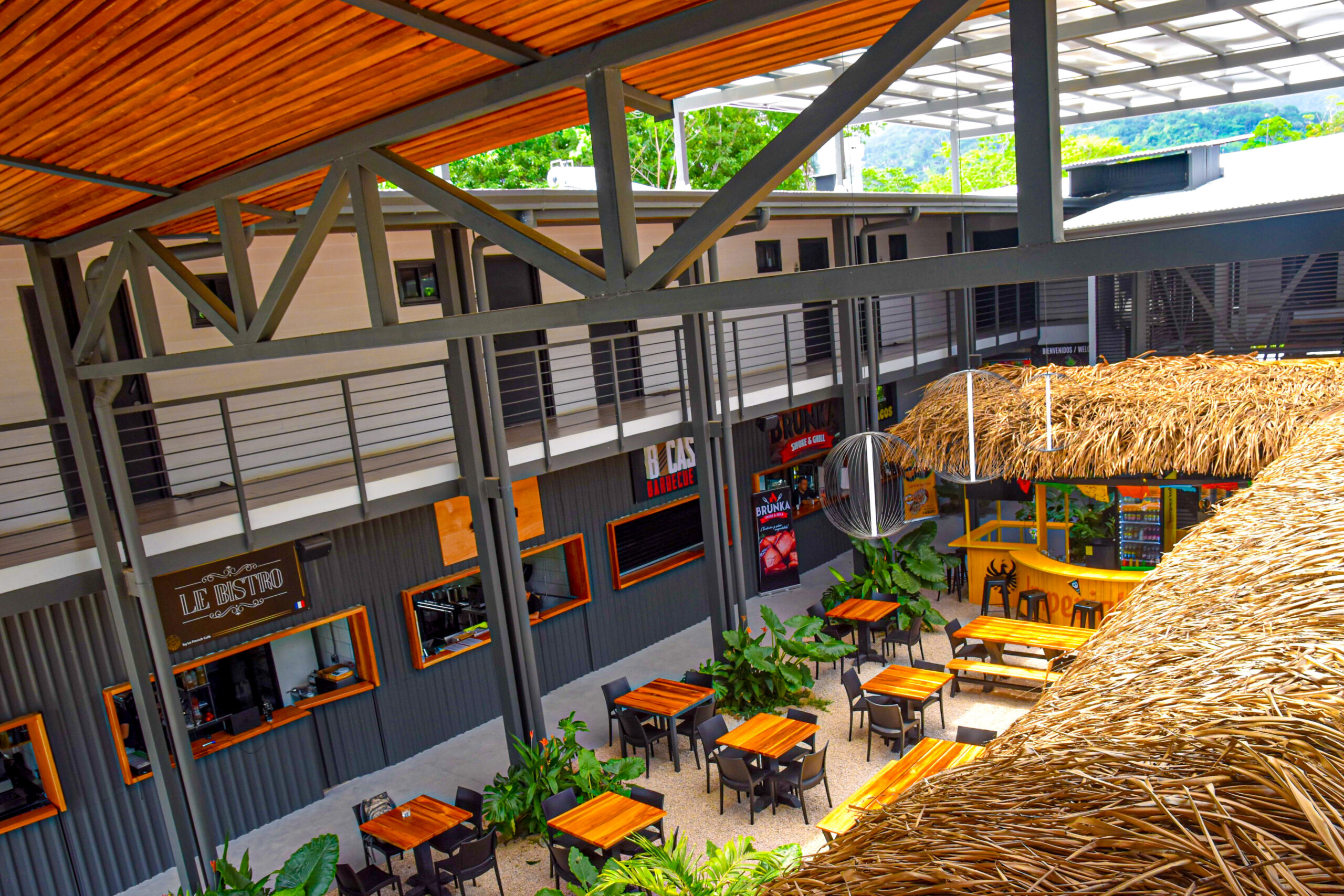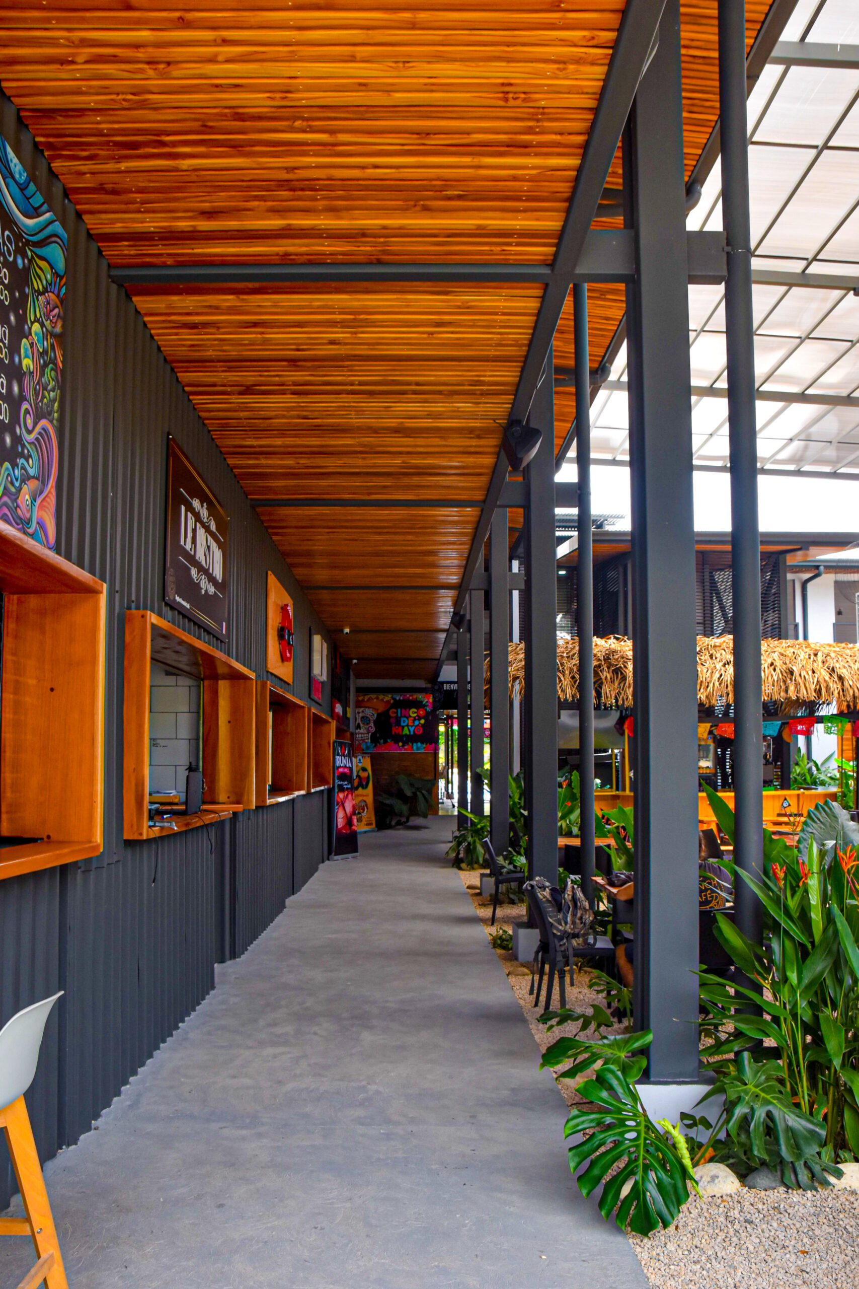 The ground floor is a gastronomic haven with eight diverse offerings: Contra Maria Chevicheria, Le Bistro, Samurai, Books BBQ, Brunch, Tacos, Ice Cream & Rolls, and the Italian place Portofino, complete with the Imperial Bar. This vibrant area, central to the structure, has seating for over 100 guests and is complemented by a sanitary block of eight toilets. Also located on the ground floor is Monkey Ride, an office providing ground transfers throughout Costa Rica.