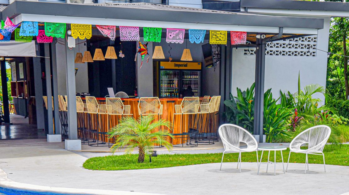 The rear section houses the Mexican Restaurant and Bar, 5 de Mayo, which includes a 60-seat dining area, a pool, and a splash area accompanied by three toilets and four showers with changing rooms. The area also features its own parking lot and a green area with a children’s play zone. The existing green space offers potential for further development, with initial plans approved for an additional three buildings.