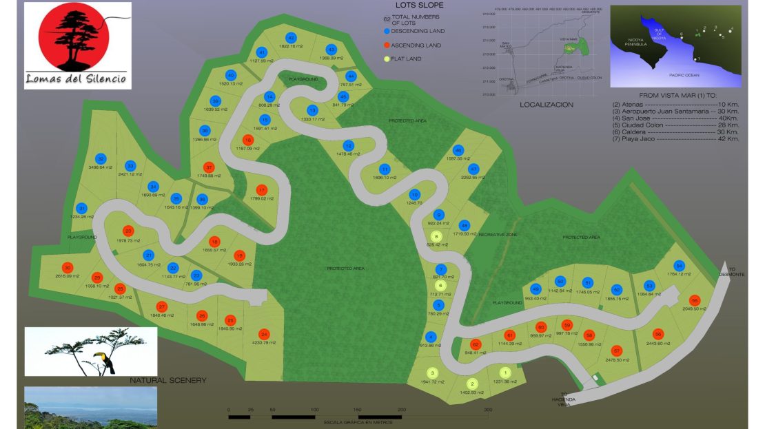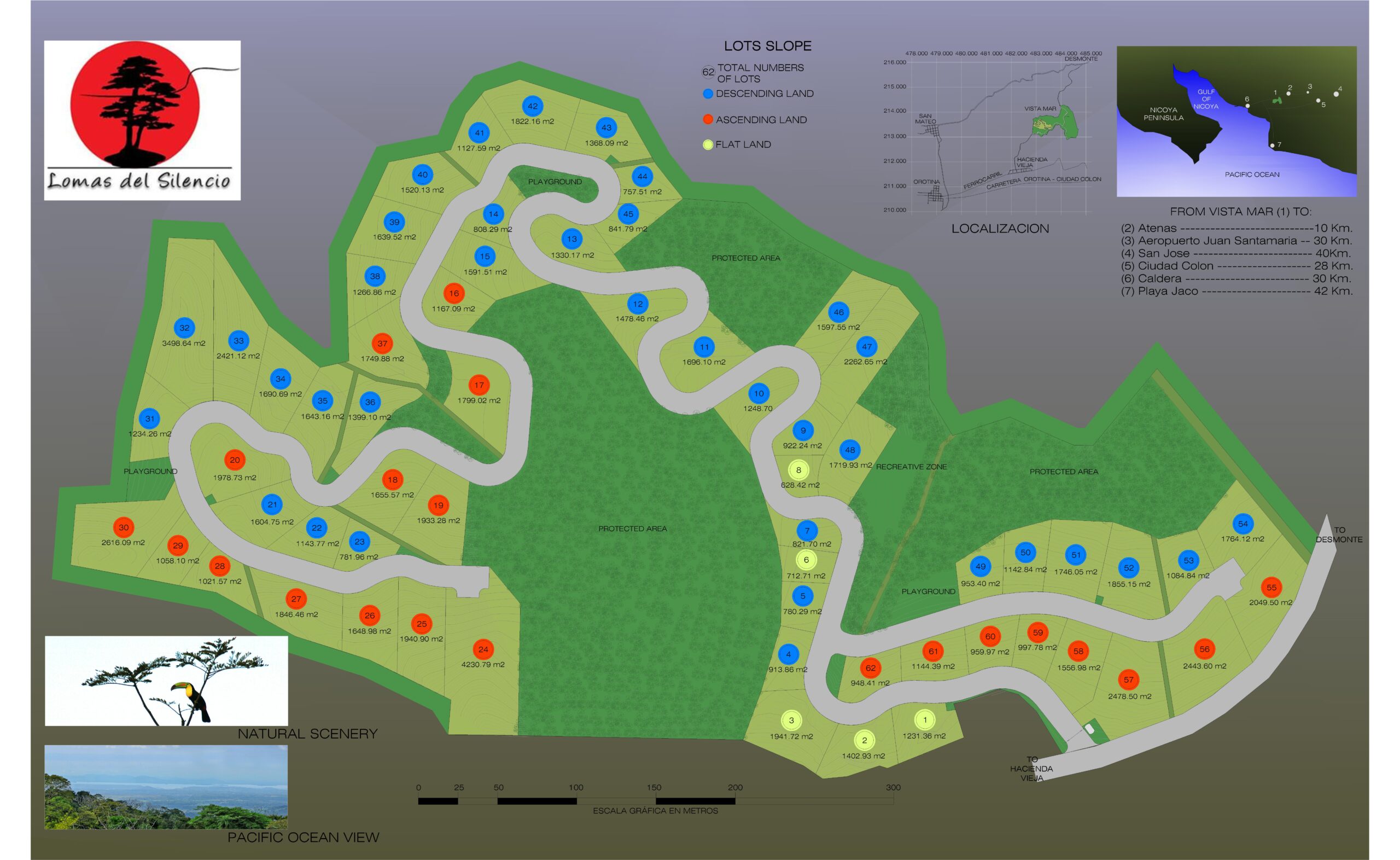 Donde puedes encontrar el Condominio Lomas del Silencio es parte del proyecto habitacional Vista Mar, que consta de 34 acres desarrollados estratégicamente para combinar la naturaleza y las hermosas vistas panorámicas del lugar; ya que se encuentra en la zona más elevada de Orotina a 600 msnm.