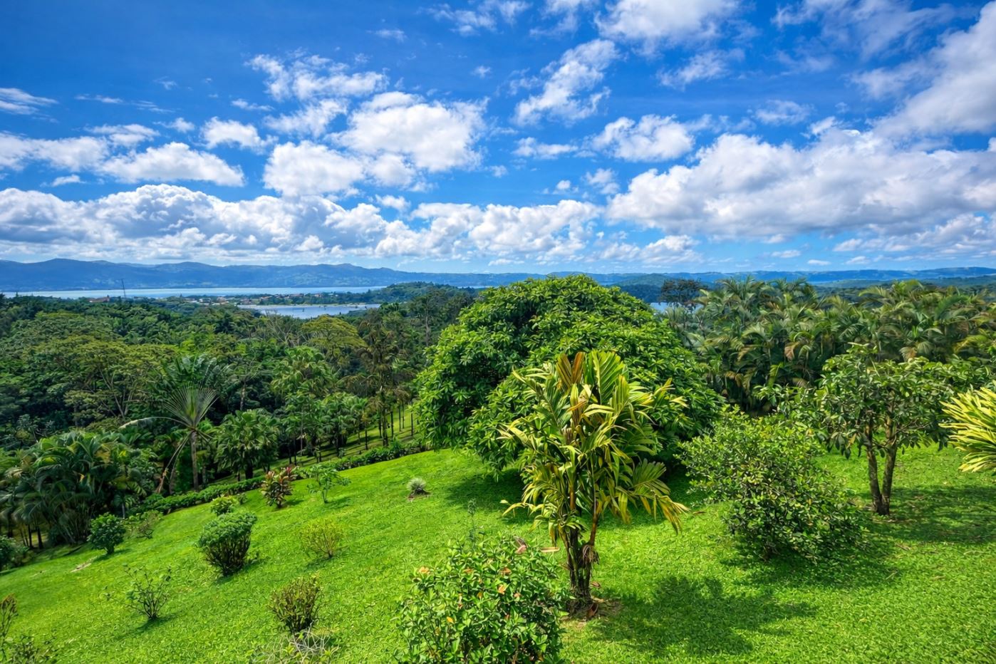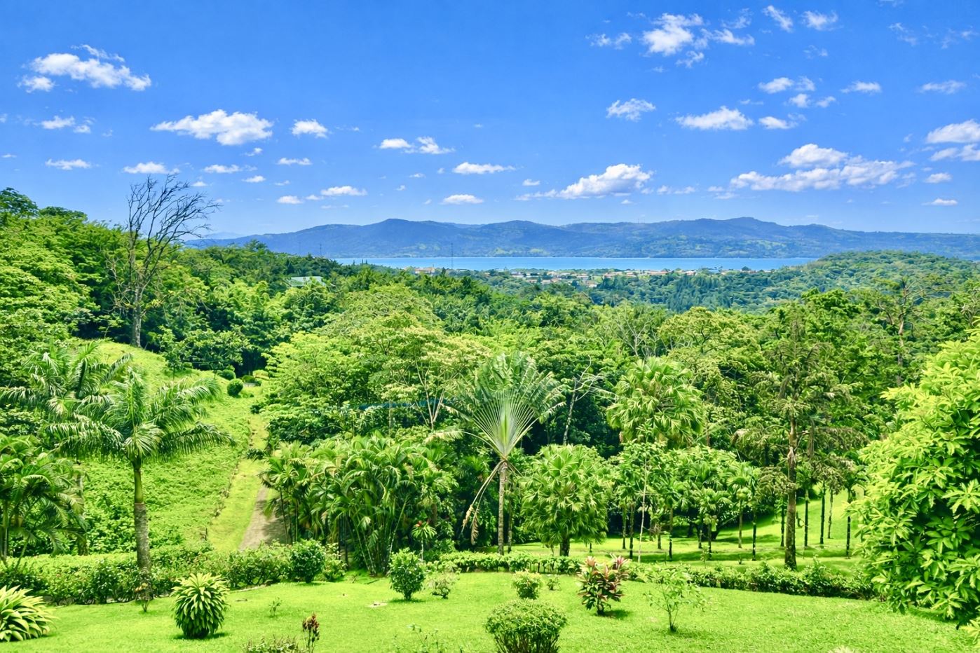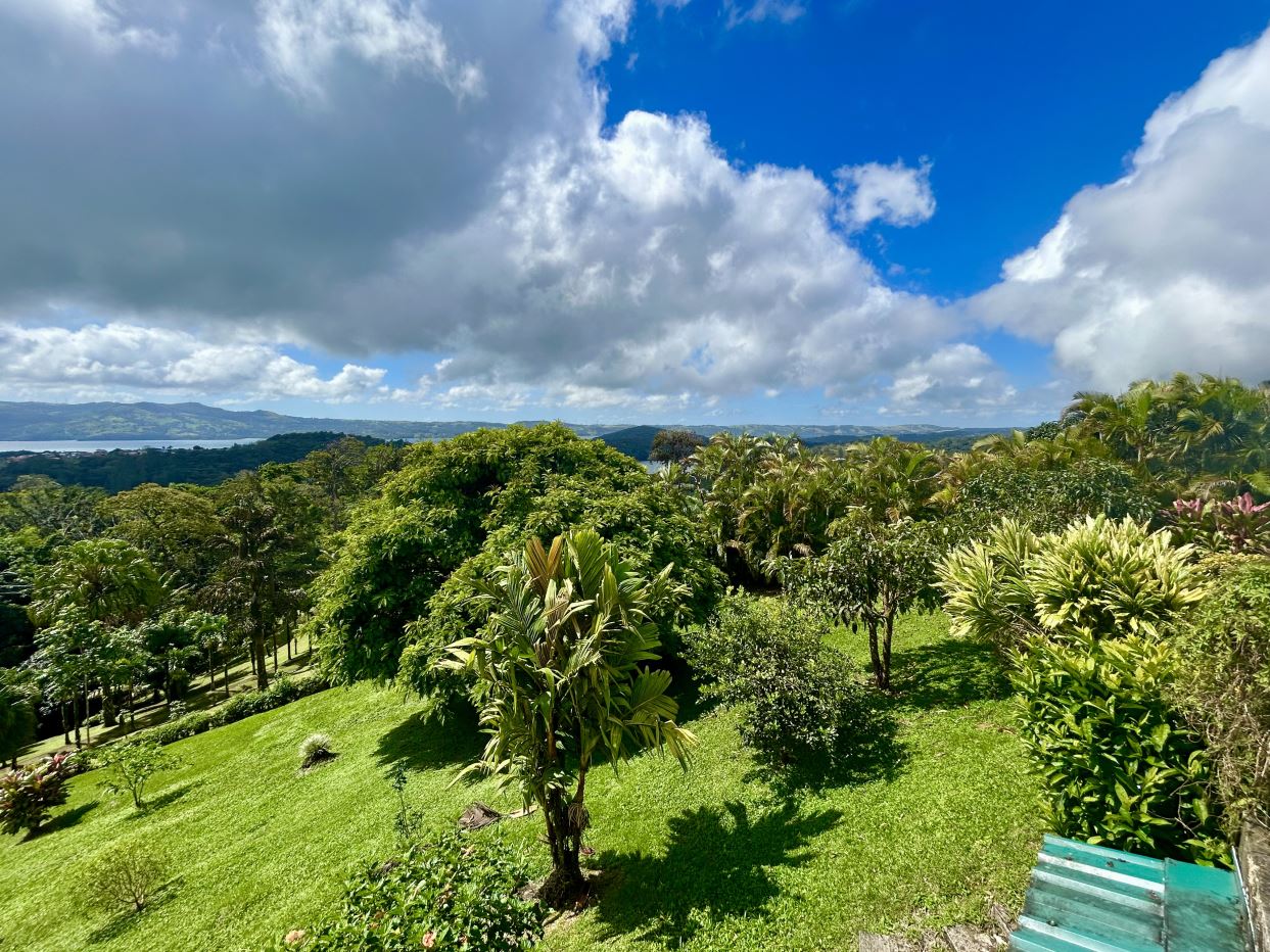 Set on approximately 1.81 acres, the property is accessed via its own private gated entrance, with a driveway leading to a dedicated parking area and carport, reinforcing both privacy and ease of access. Landscaped gardens extend naturally from the terrace, offering generous lawn areas and a tranquil outdoor setting. Portions of the grounds present future development potential, subject to permitting, for the creation of small guest houses, which could further enhance the property’s functionality and appeal. A section of the land features a seasonal creek and wooded corridor, creating a private and natural setting where an additional small guest house could be thoughtfully positioned, potentially introducing an income-generating component while maintaining harmony with the landscape. An additional enhancement that would significantly elevate the outdoor living experience would be the installation of a swimming pool directly in front of the terrace, creating a dramatic focal point that complements the home’s indoor–outdoor design. From both the terrace and garden level, the property enjoys expansive views across Lake Arenal and the surrounding town, with lush vegetation in the foreground providing depth and seclusion.