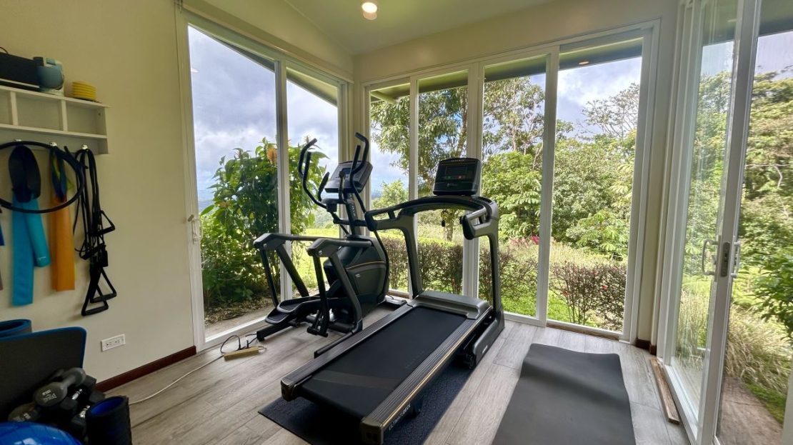 The home includes a spacious laundry room equipped with a washer and dryer, as well as an additional brand-new dryer. The property is also equipped with dehumidifiers and includes an outdoor storage facility, gardening equipment, outdoor furniture, and a barbecue. The home is offered furnished, with the exception of the gym equipment, providing a largely turnkey opportunity for the next owner.