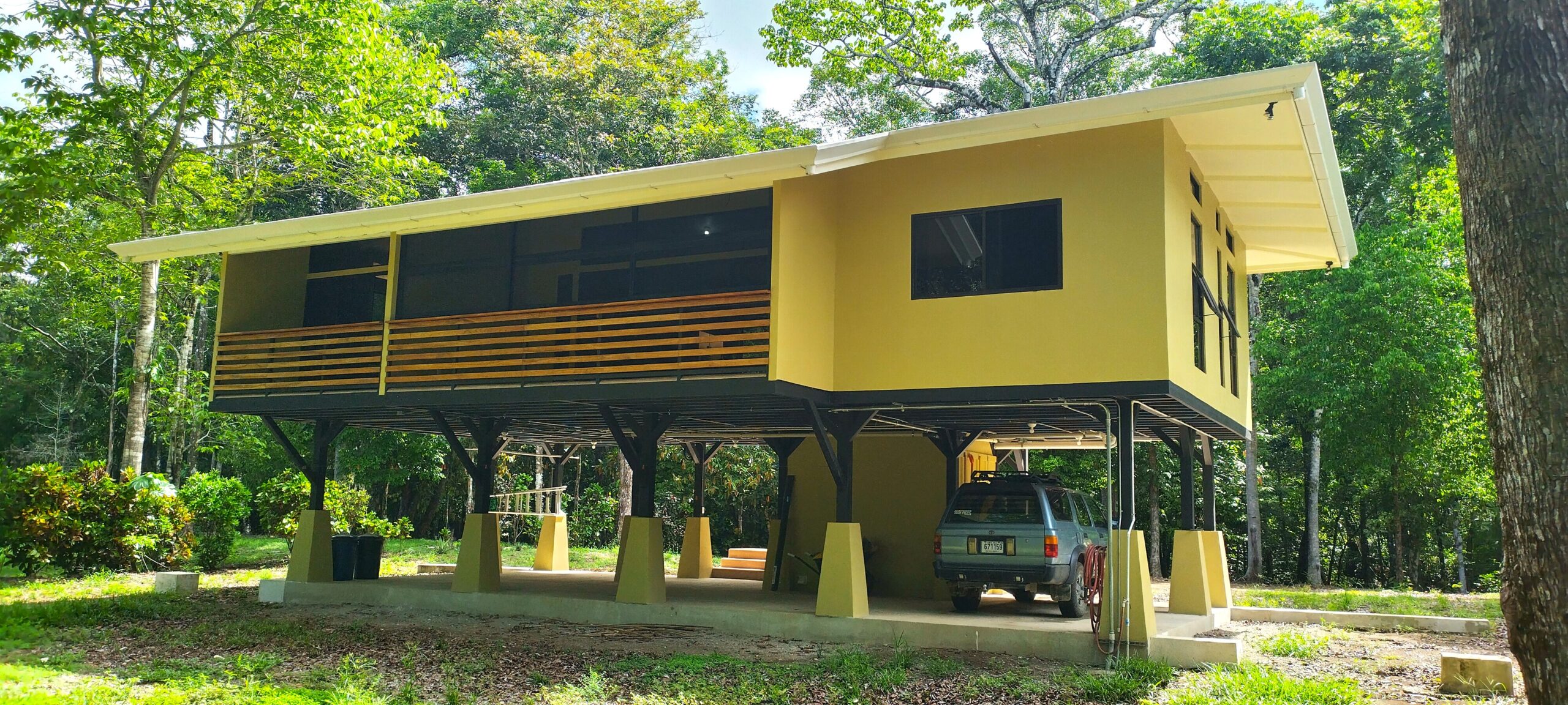 Built with heavy concrete board walls, floors, and ceilings, the home is resistant to weather, mold, and mildew—perfect for the jungle environment.