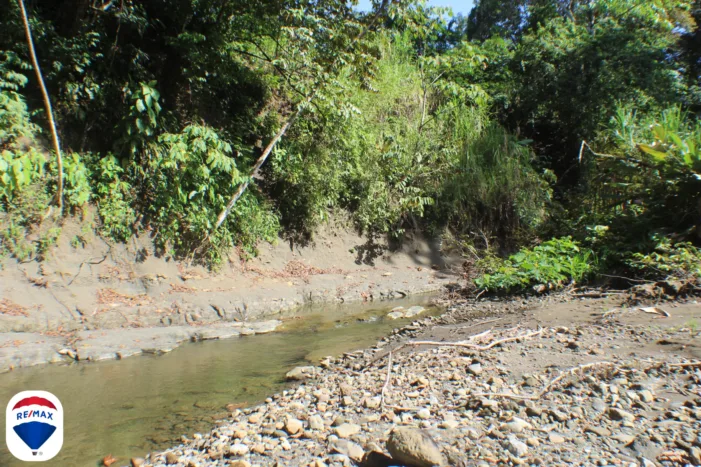“Bueno Aloha”, the NE corner of Rio Claro/Yerba Road, is rainforested with huge trees and fronts the protected nature on the Quebrada La Yerba. This large La Yerba Corner Lot Creek measures 7,152.16 square meters (physically 1+ hectare). This property is in a maritime zone and is uniquely located near the beach, creek, La Yerba road and between Pavones and Pilon.
