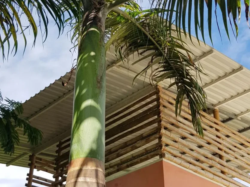 Fruit tree garden in the valley, featuring primarily cocoa plants and various fruit trees. There’s also a 20-square-meter dome covered in greenery for wildlife observation.
