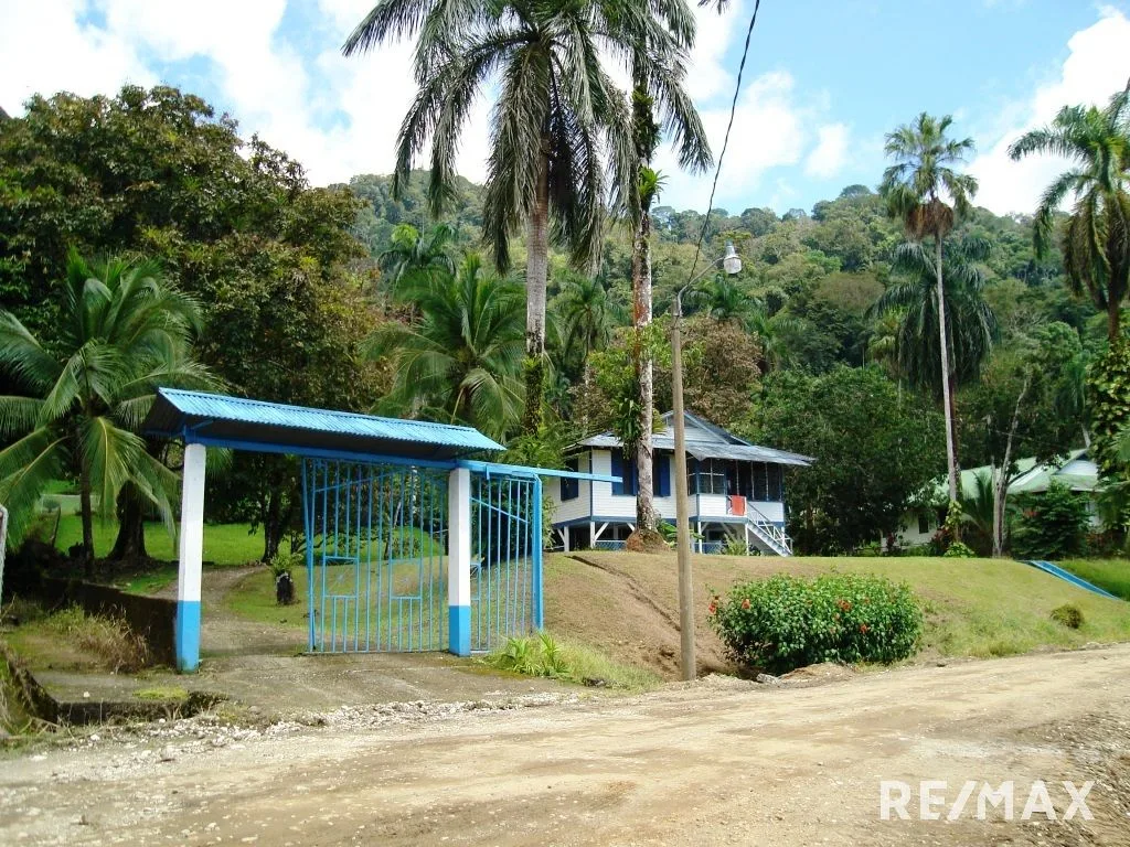 Fantastic location on this double lot in downtown Golfito! This ¼ hectare (3/4 acre) gently sloping terrain has frontage on 2 of the 3 roads in the heart of the historical district known as “The American Zone”. With filtered views of the ocean and a well-landscaped yard with mature trees, this is a great opportunity for a remodel on an estate-sized lot or a development opportunity to build multiple homes. The home is directly behind the famed resort Casa Roland. The house will require an extensive remodel. The $250,000 price is below the current market value and is ready for a new owner!