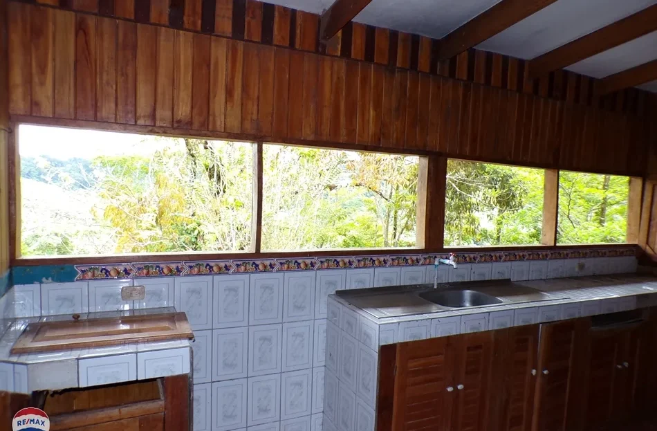 The views from this house are spectacular, with a wide mountain panorama visible from the kitchen, and the balcony surrounding the house offers a peaceful and tranquil environment surrounded by nature. Additionally, within the property, you can find two quite spacious structures. One was originally intended for use as a place for livestock but remained unused, and it can be transformed into a spacious residential house or jungle cabin. The second structure was initially built as a chicken coop; it has more of an open dance hall appearance and can also be converted into a spacious house, renovated for cabins, or used as a chicken farm.