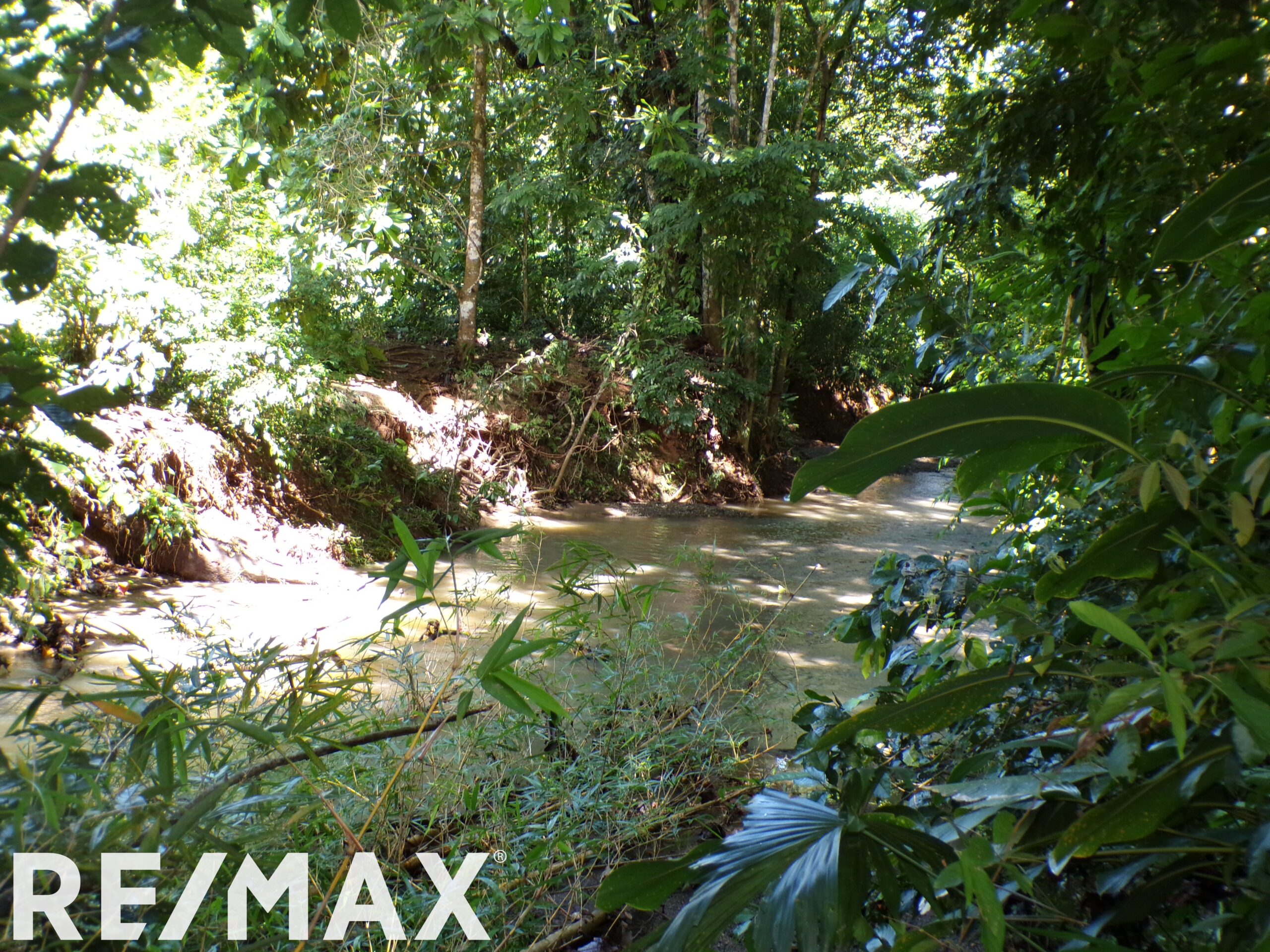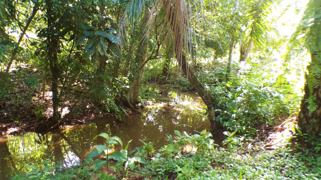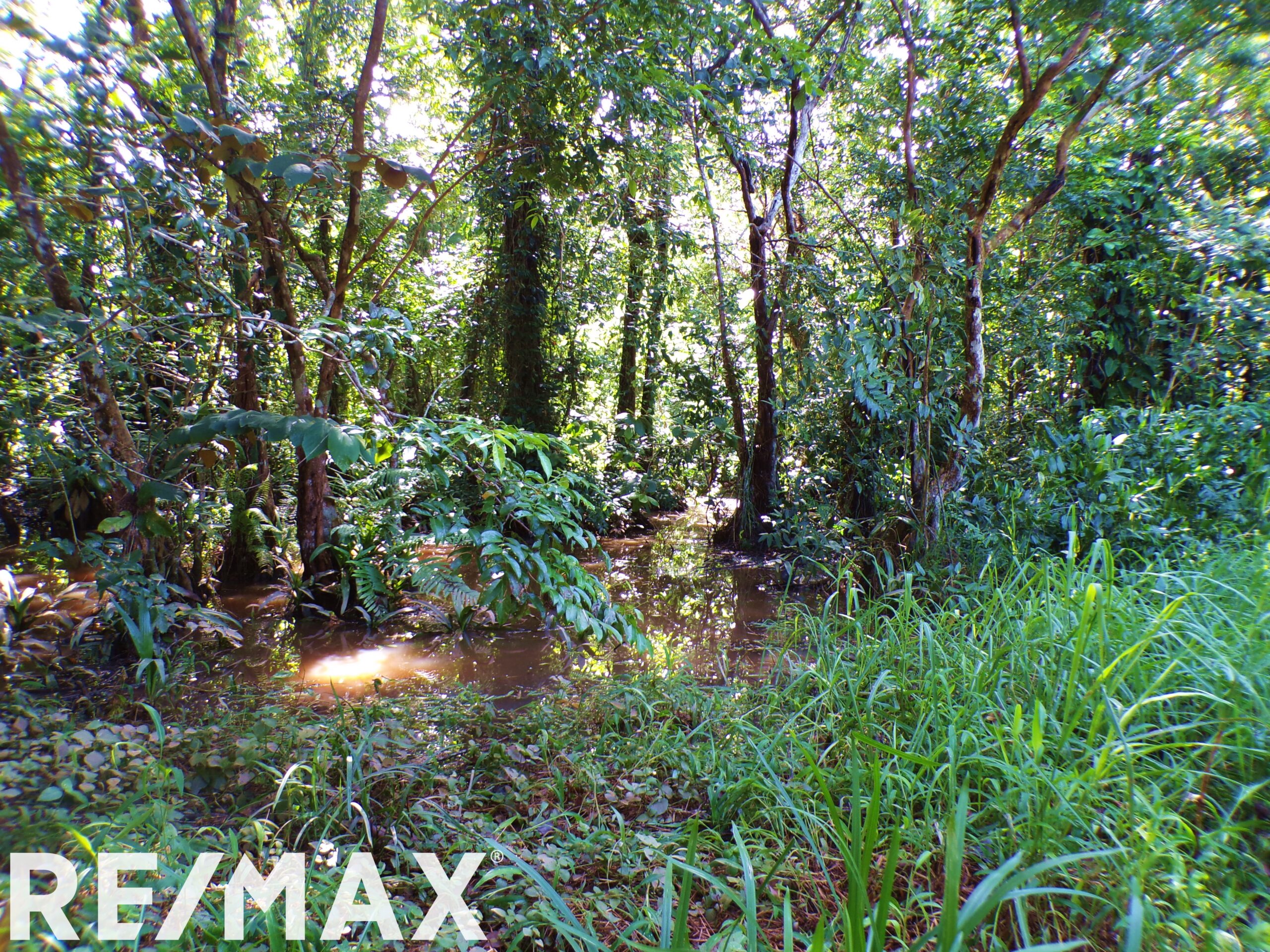 Bordering the Manzanillo River and a small stream running through the property.