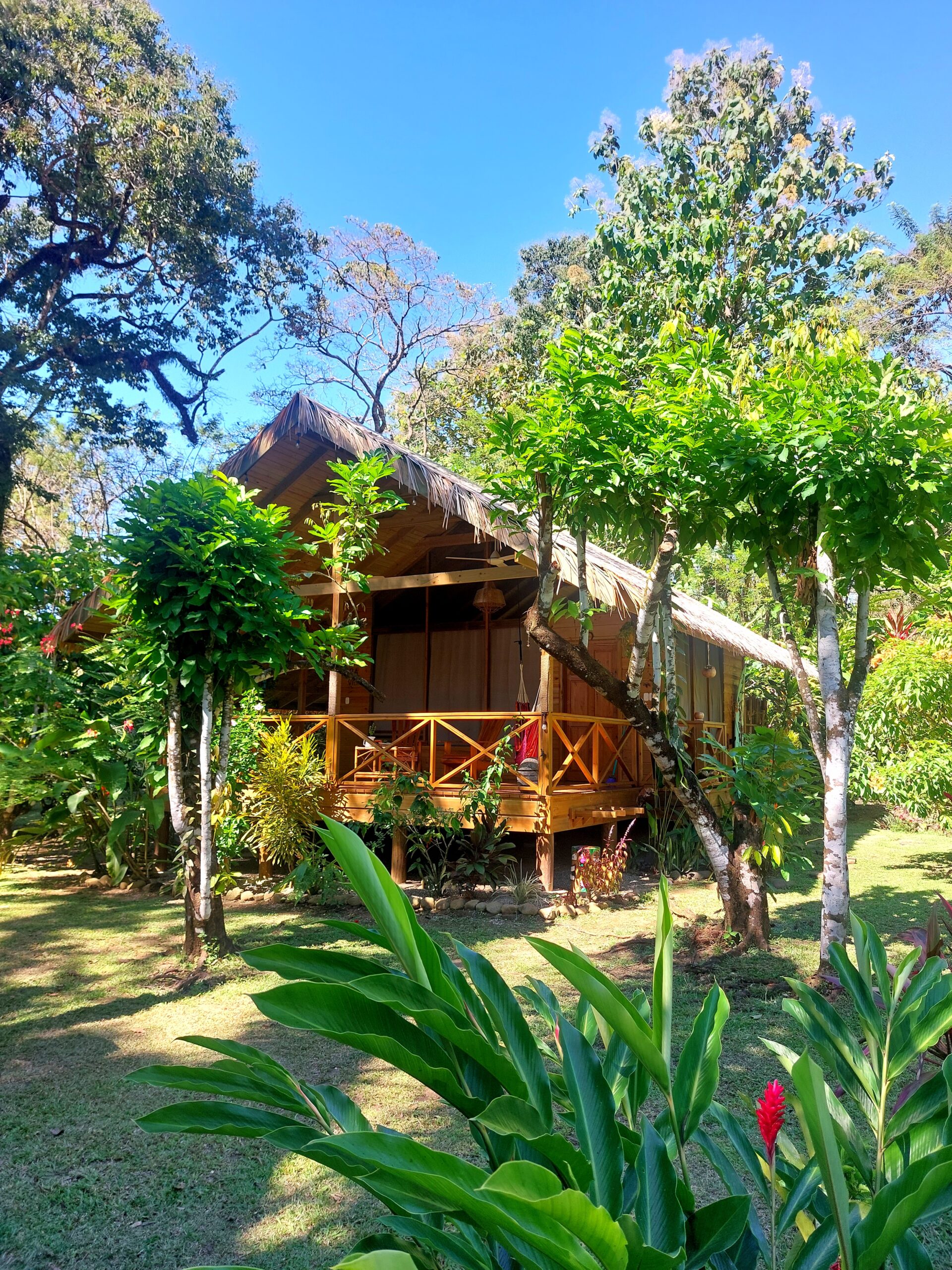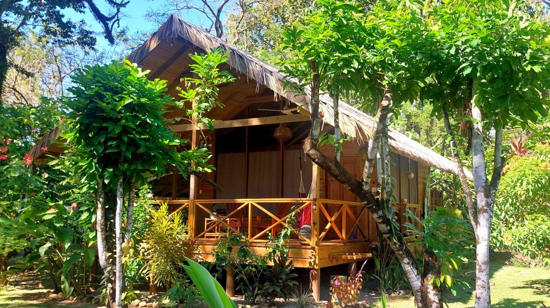– Rental Cabin 1: A charming 60+ square meter wooden cabin with a palm roof. Includes a spacious bedroom, bathroom, kitchen, and a large terrace.