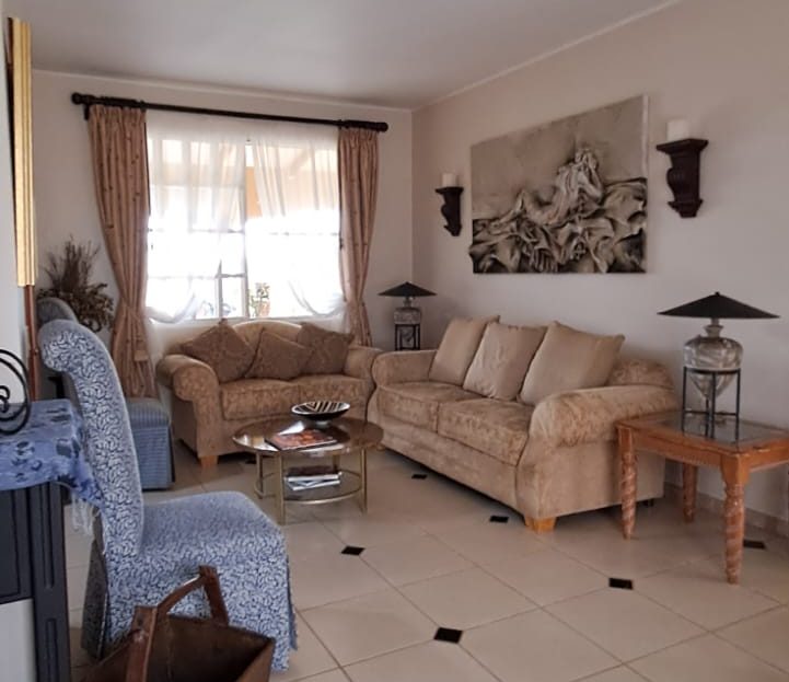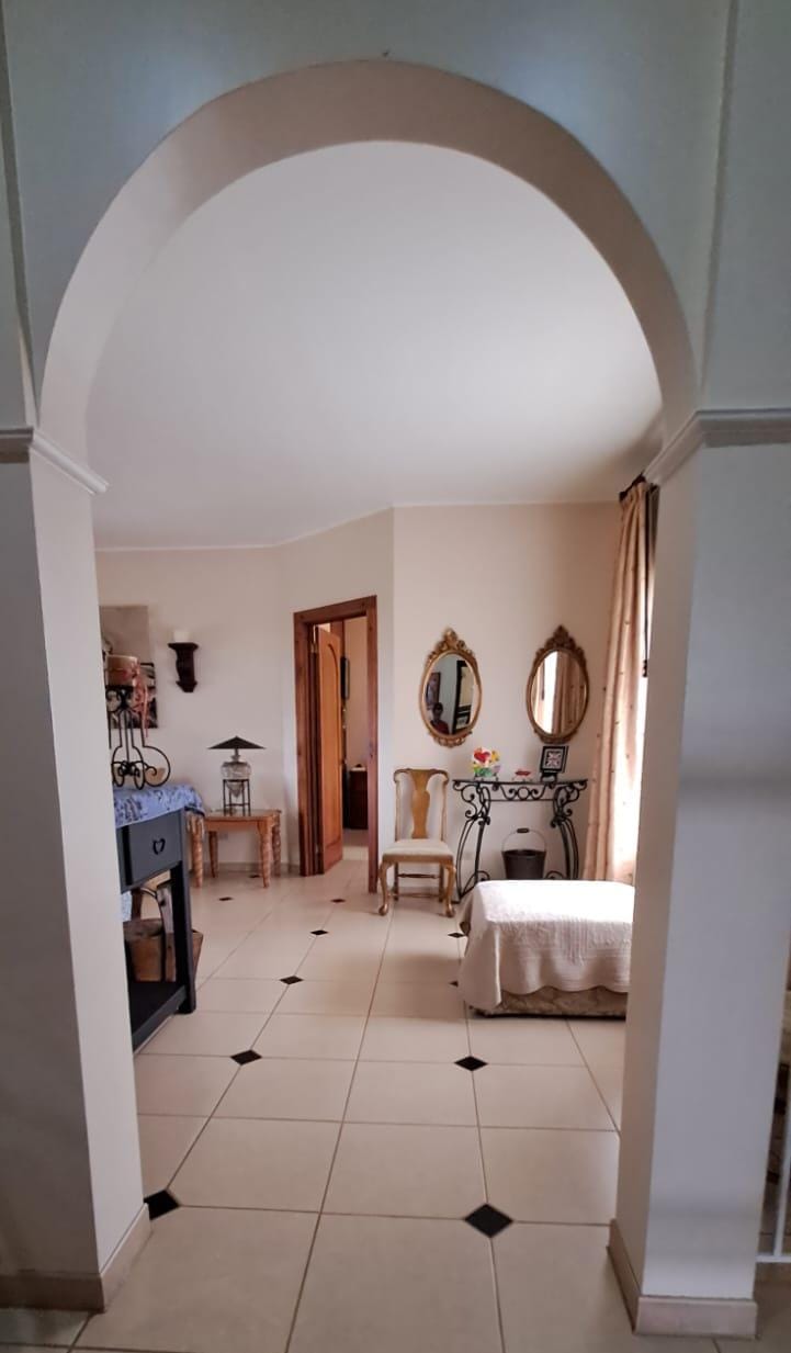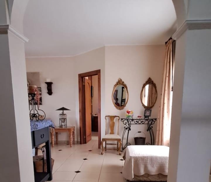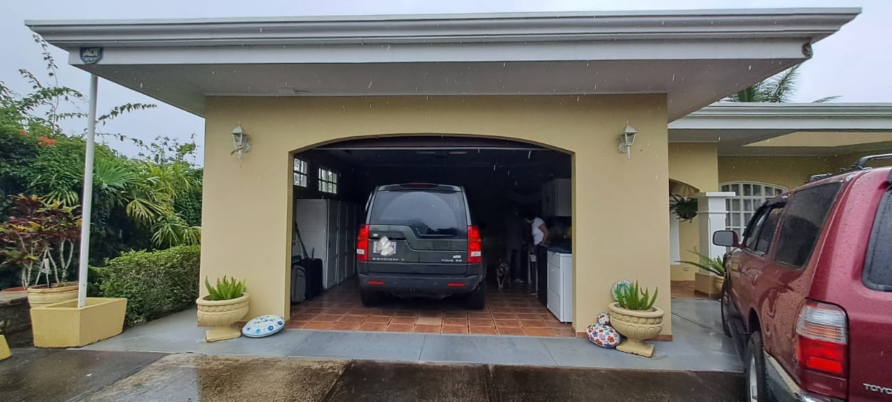 The property includes a private garage, additional parking for up to four vehicles, and washer/dryer hookups. It’s secured by an elegant electric gate, a full perimeter fence, and a modern alarm system. A water reserve tank ensures consistent supply year-round.