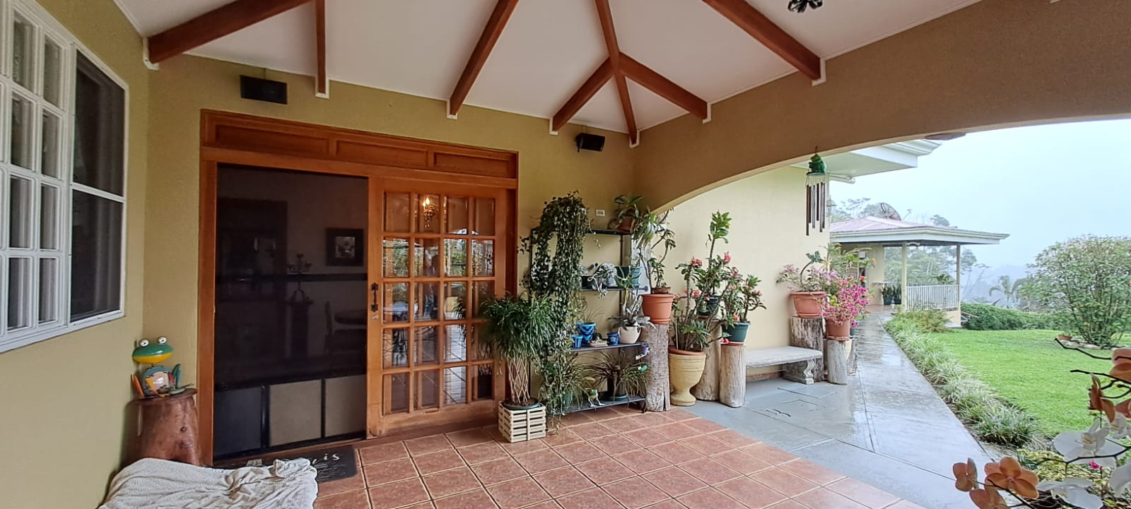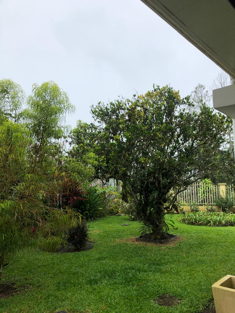 Step onto the expansive terrace and take in the panoramic views of Parque de la Amistad and the distant Barú Volcano. The beautifully landscaped garden features a variety of native plants and citrus trees, creating a vibrant and tranquil environment.