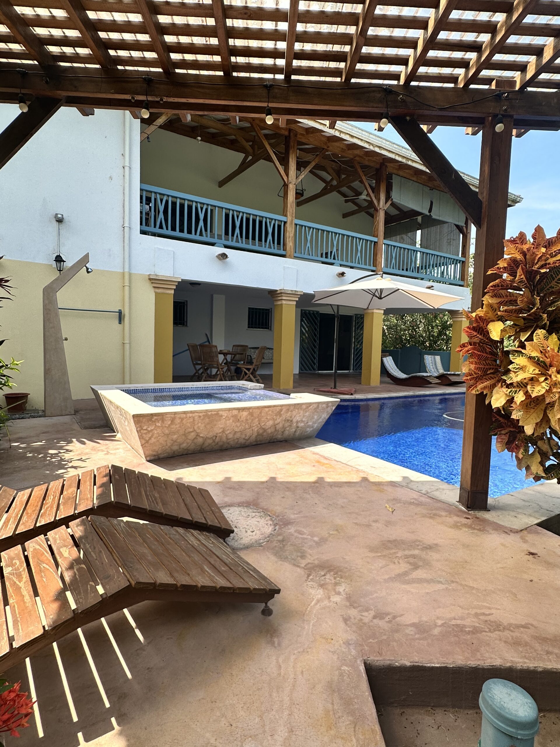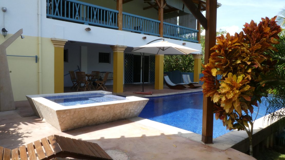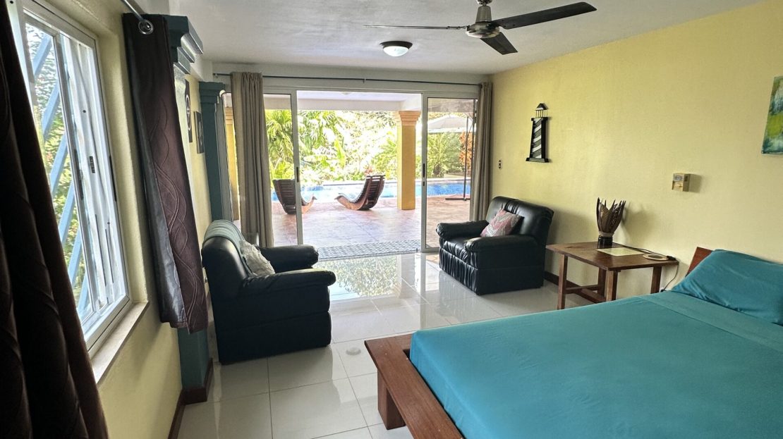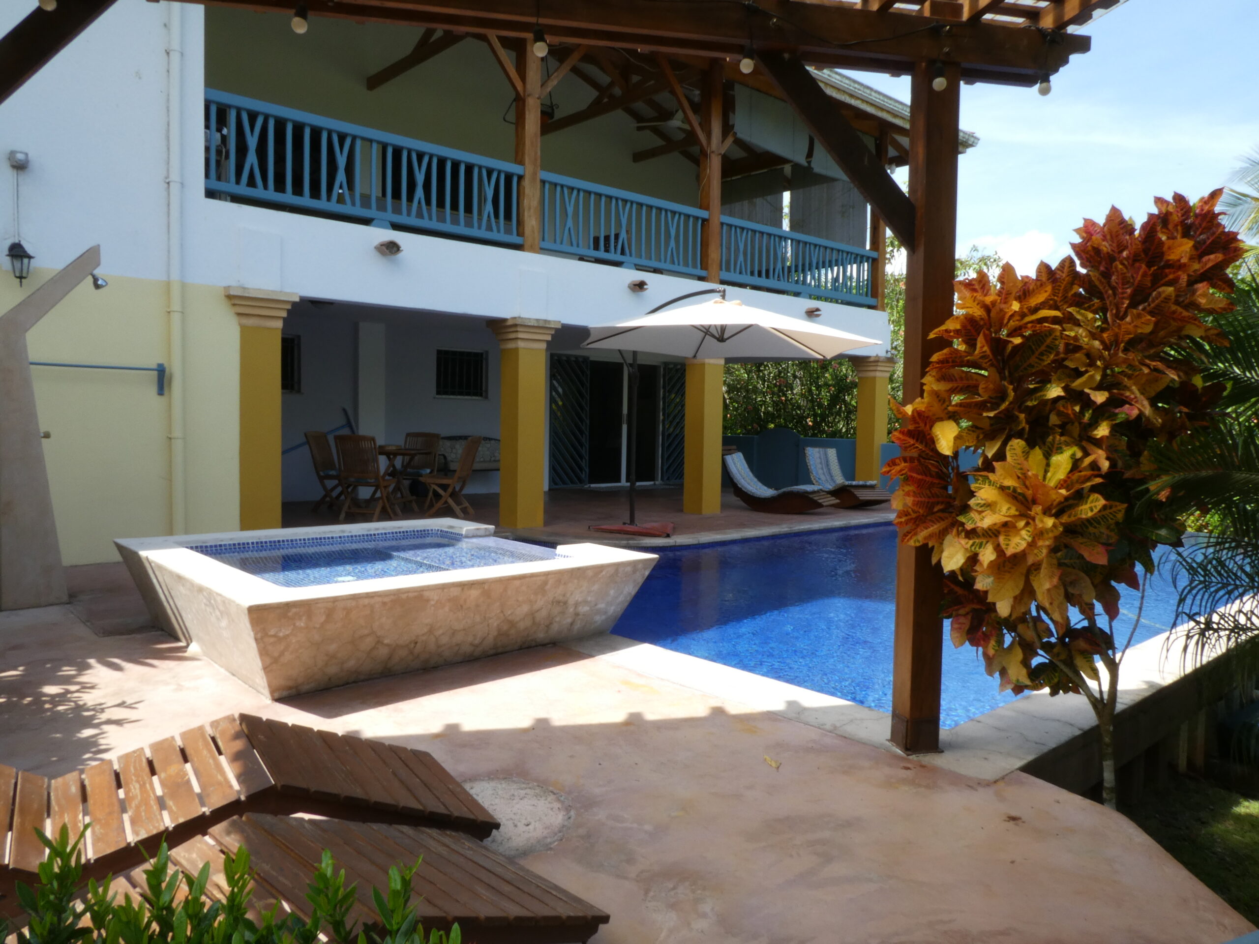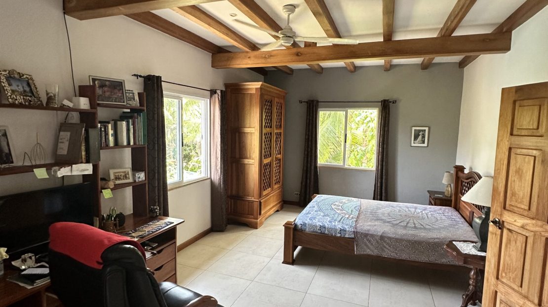 French custom home builder personal home, this estate has 5,000 square meters of jungle surroundings and only 10 minute walk to the beach. Home has peek of the Golfo Dulce, pool, grille, and 4 bedrooms, with one of these easily an airbnb unit. Included in the land is a farm of 100 cacao trees for making your own chocolate or enjoying its fruit! Waterfall nearby in desirable Pilon neighborhood! Owner has invested over $70,000 in 15kw solar power system with panels, batteries, and connecting back to the ICE electric power grid.