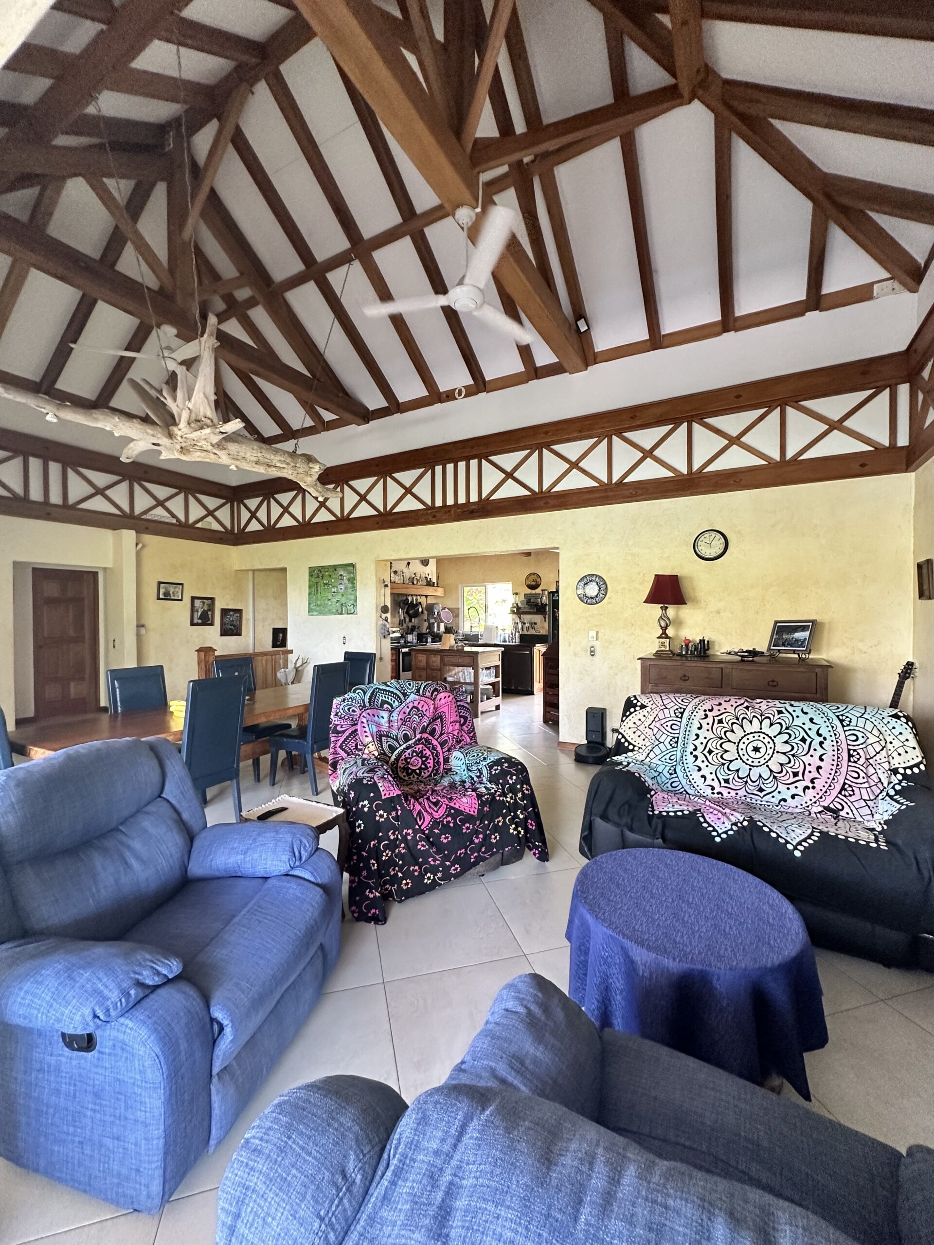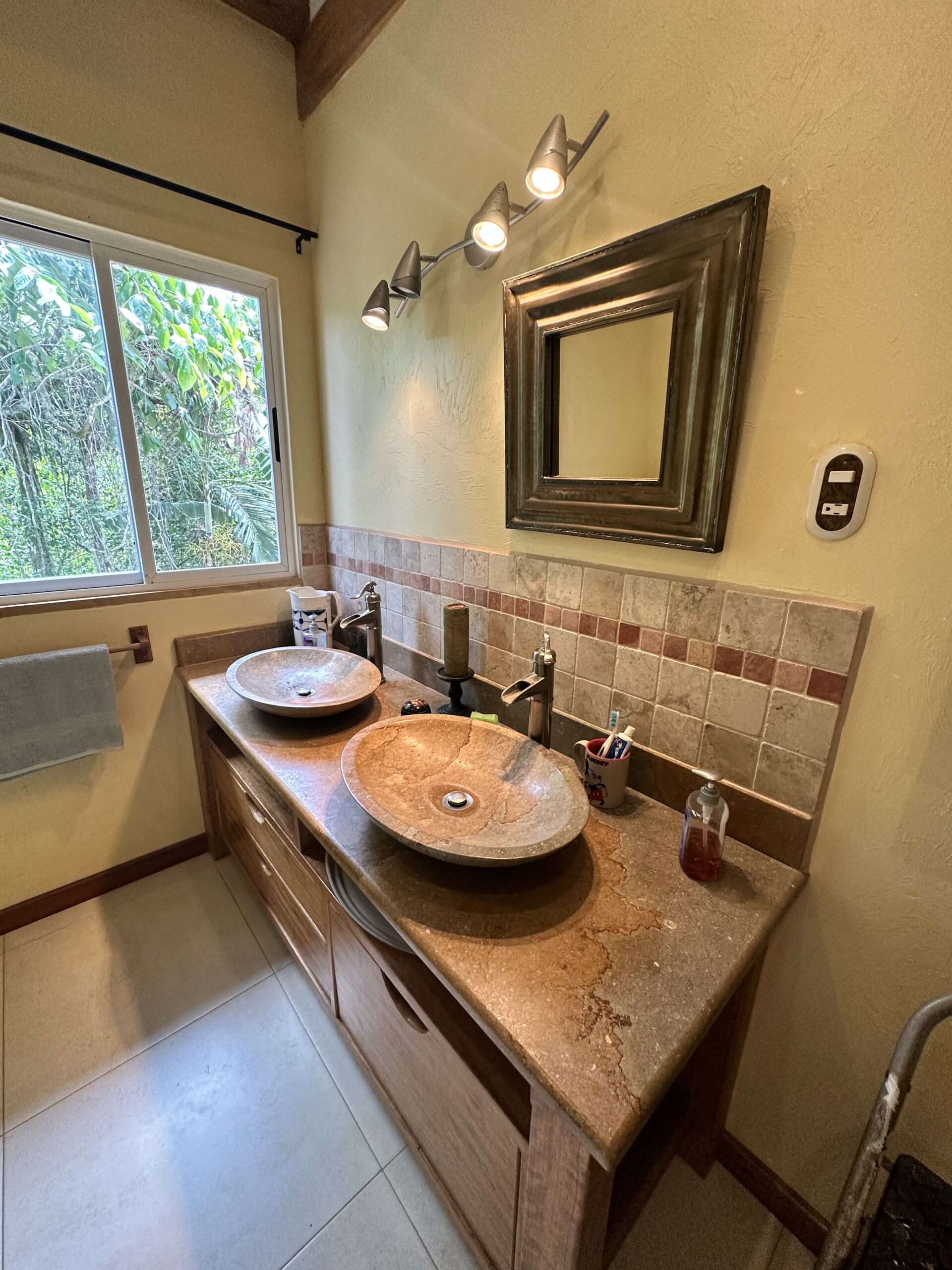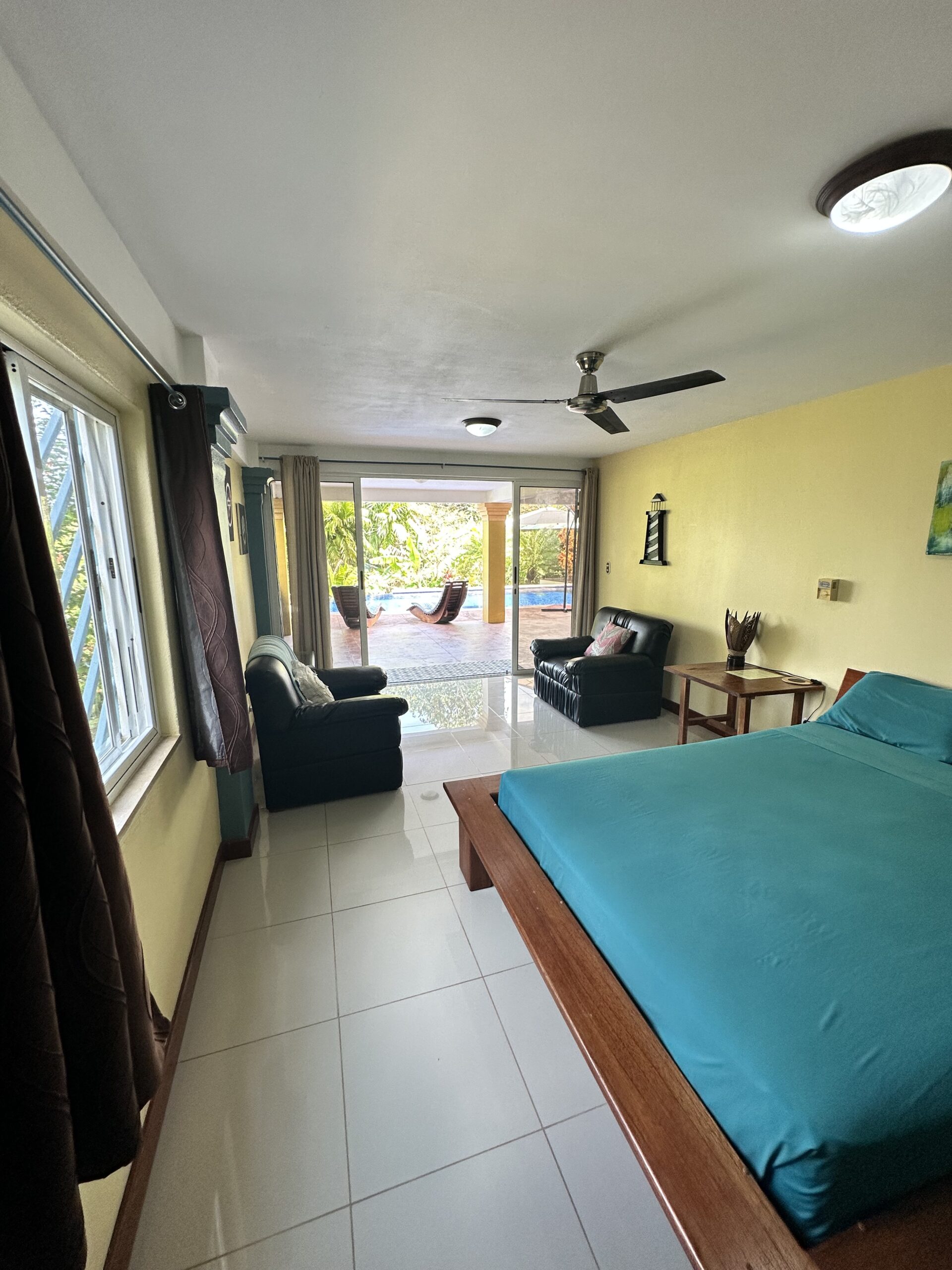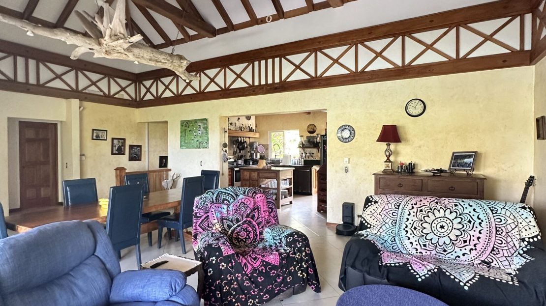 French custom home builder personal home, this estate has 5,000 square meters of jungle surroundings and only 10 minute walk to the beach. Home has peek of the Golfo Dulce, pool, grille, and 4 bedrooms, with one of these easily an airbnb unit. Included in the land is a farm of 100 cacao trees for making your own chocolate or enjoying its fruit! Waterfall nearby in desirable Pilon neighborhood! Owner has invested over $70,000 in 15kw solar power system with panels, batteries, and connecting back to the ICE electric power grid.