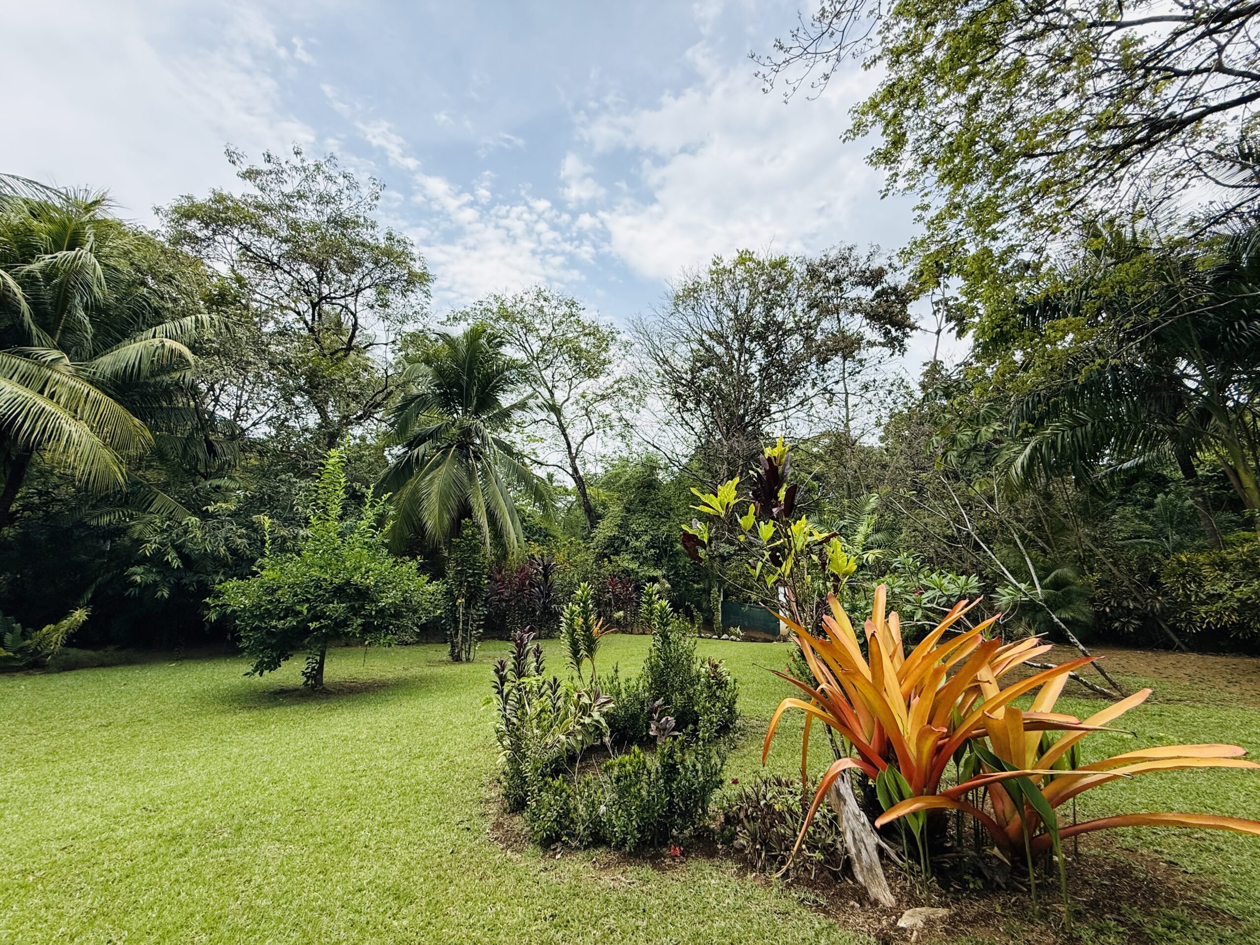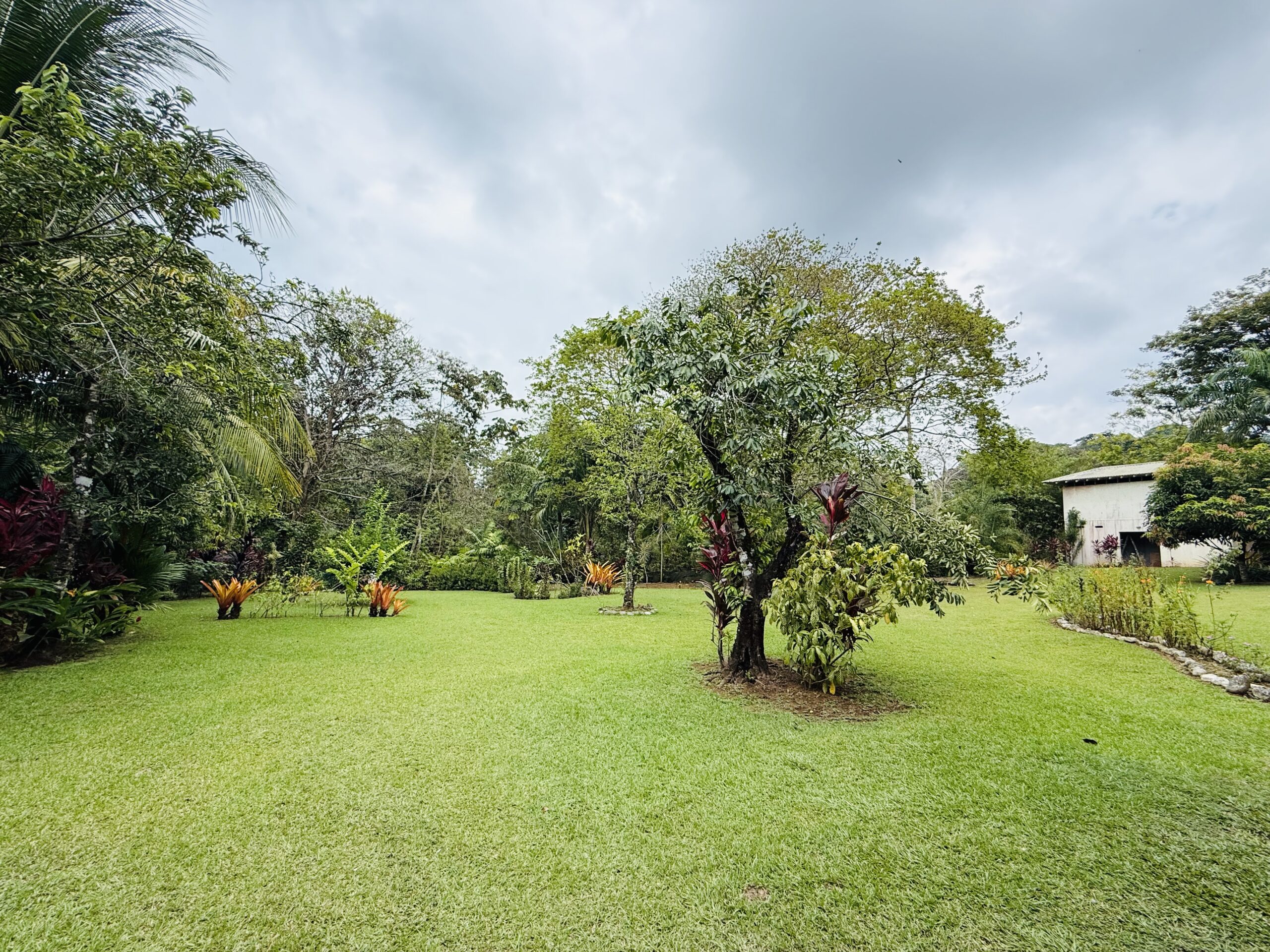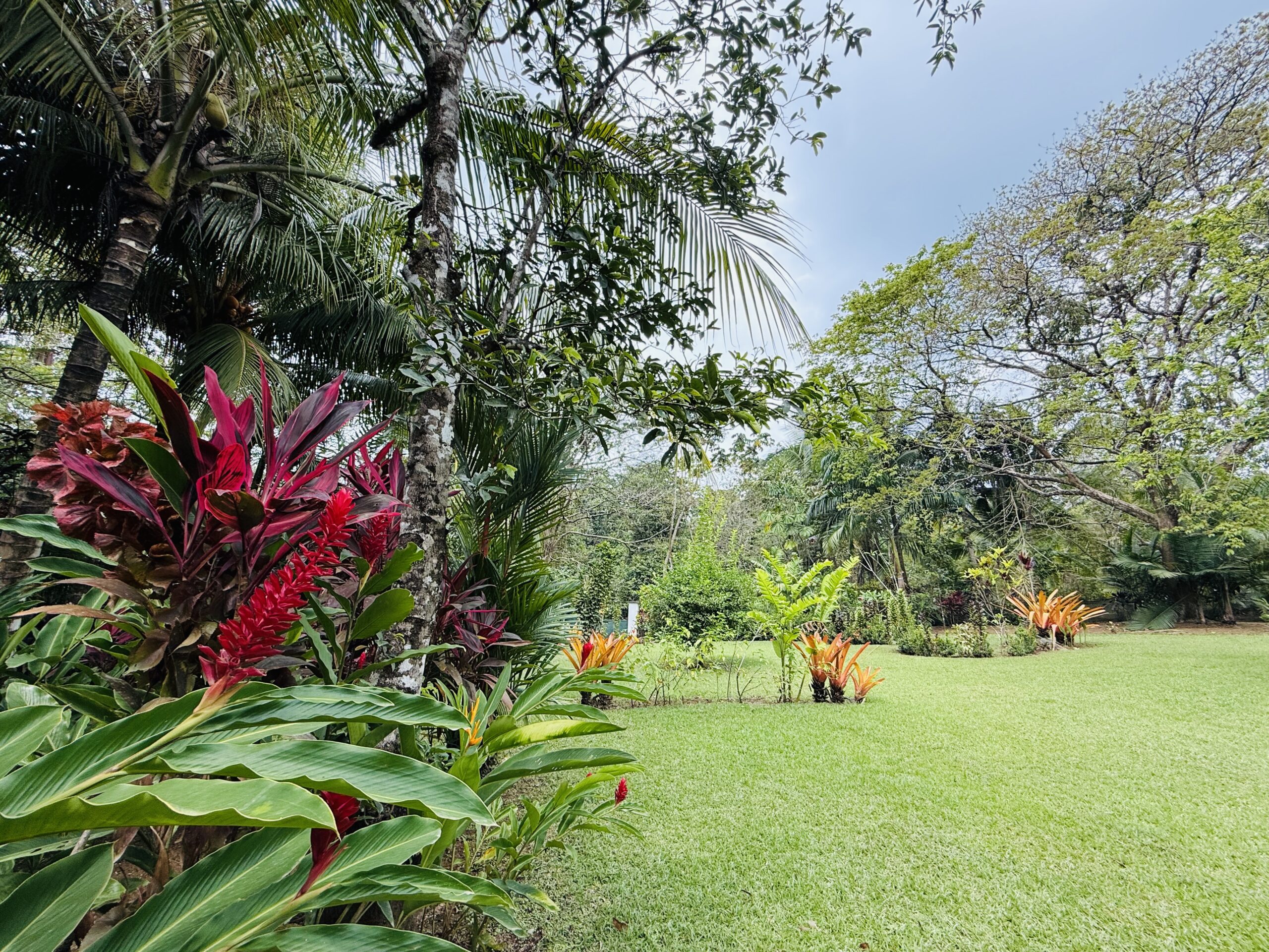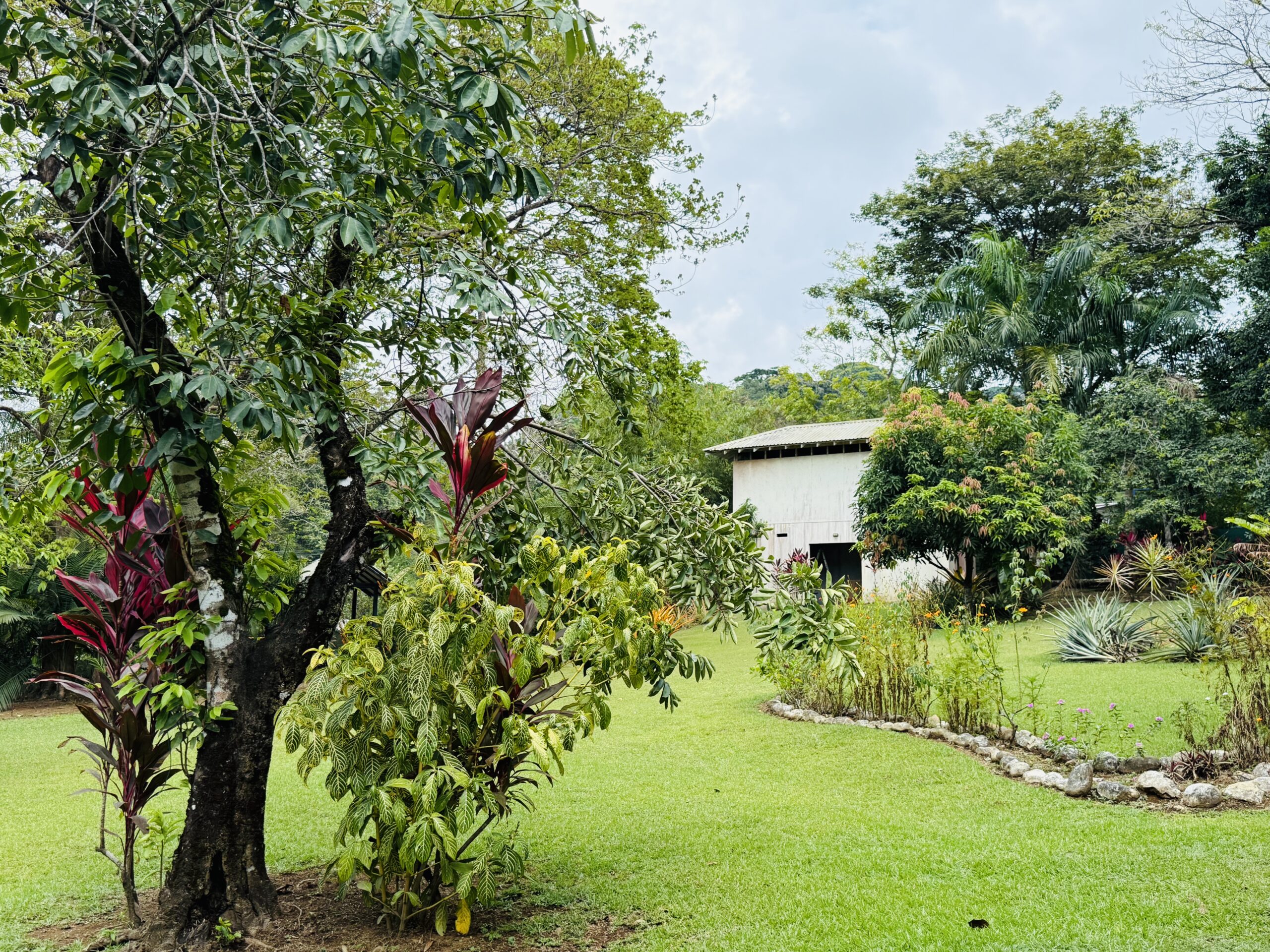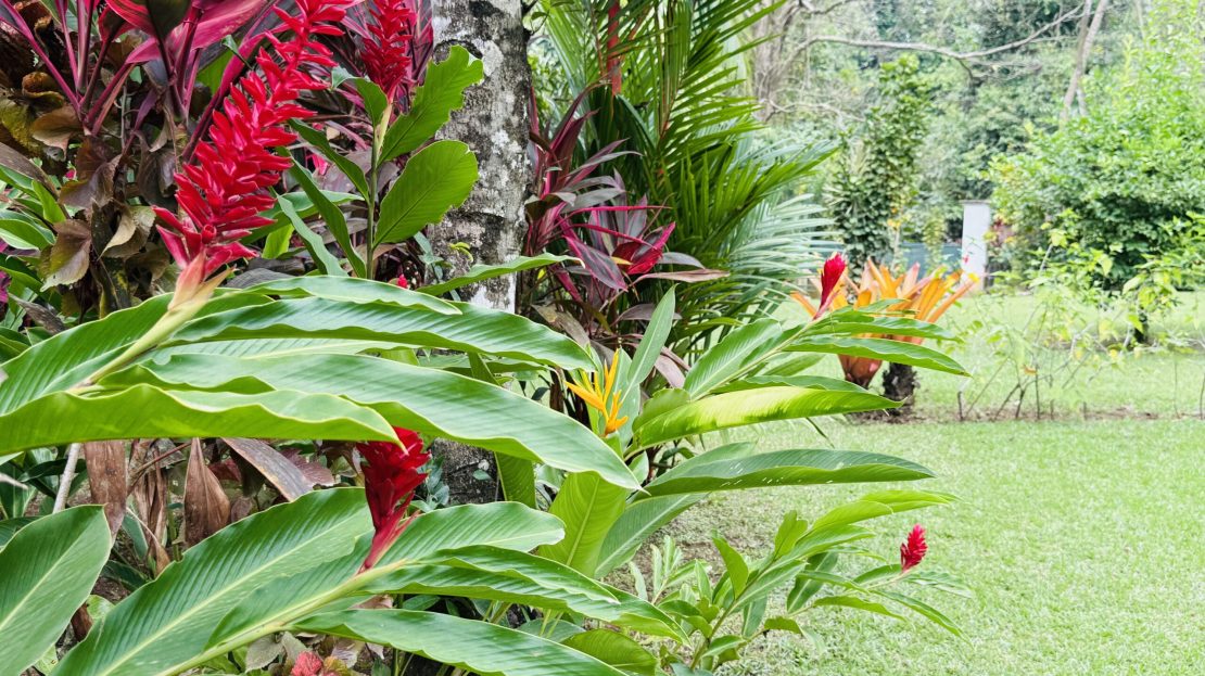 The surrounding grounds are a tropical paradise, finely maintained and planted with a variety of fruit trees, including mangosteen, lemon, soursop, mango, and coconut, along with vibrant pineapple plants.