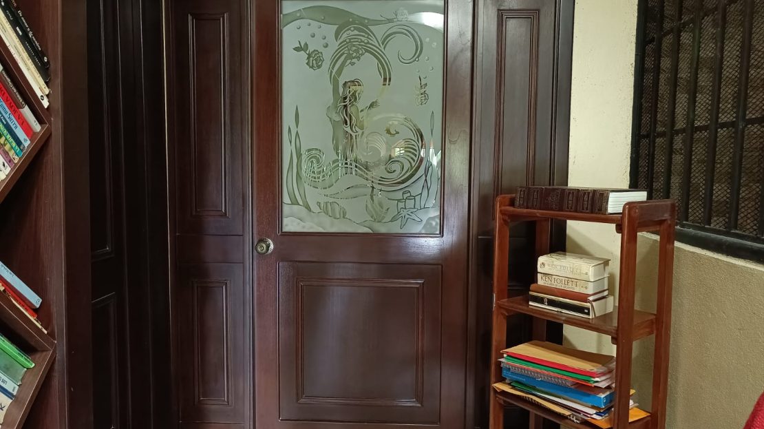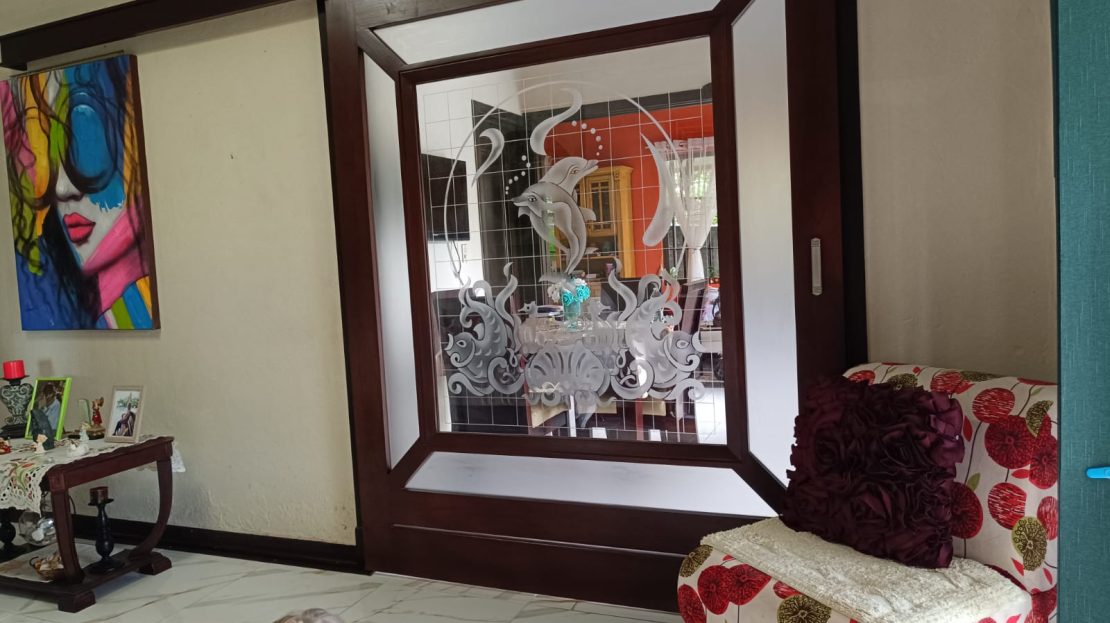 Stunning glass and wood doors that add elegance and natural light.