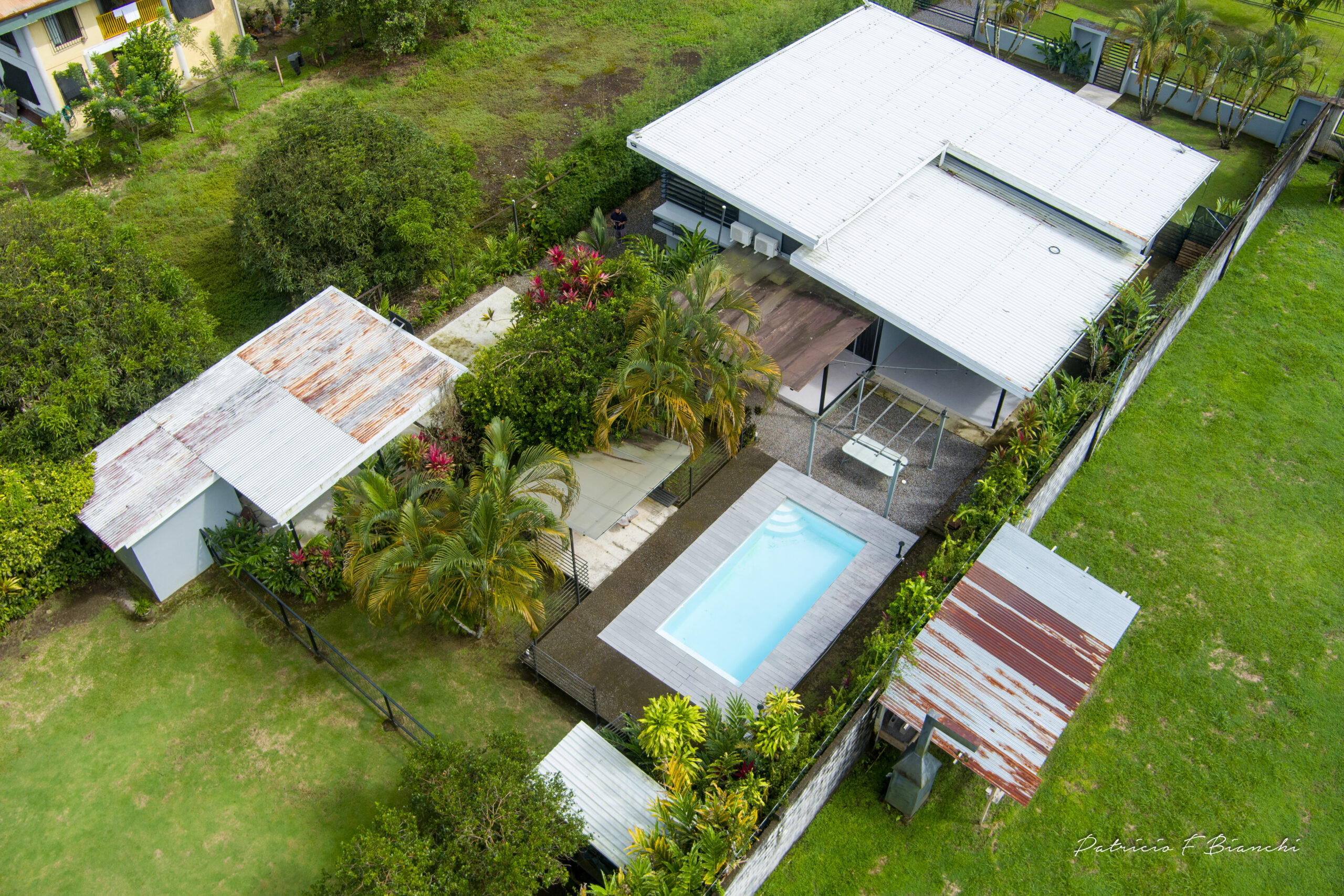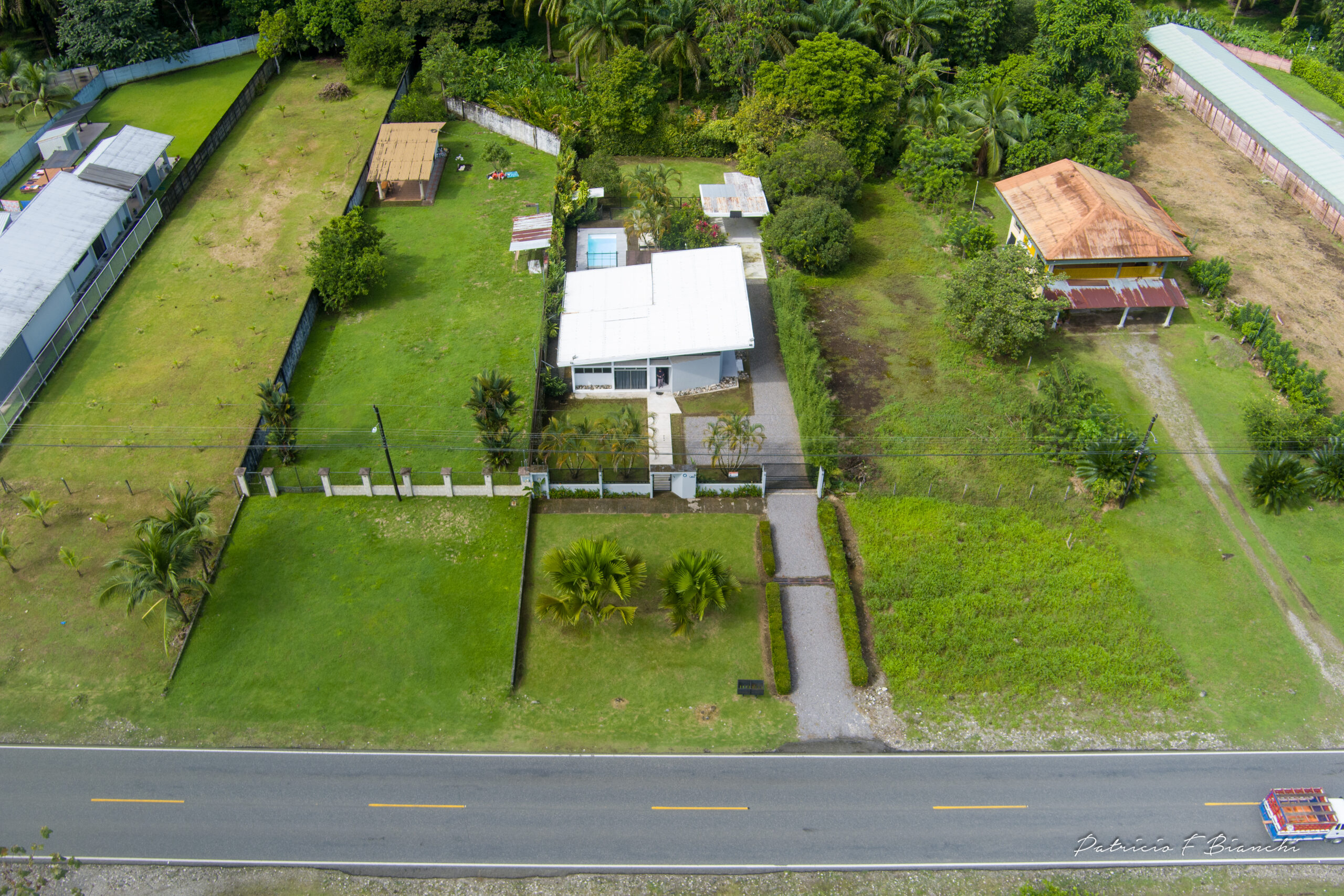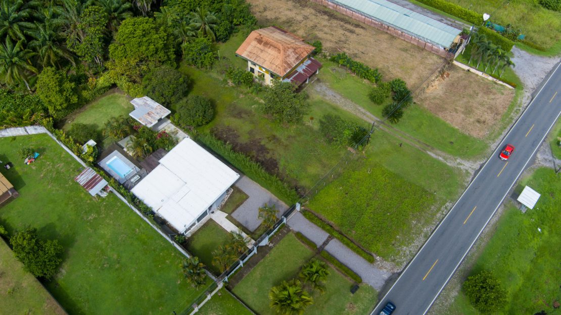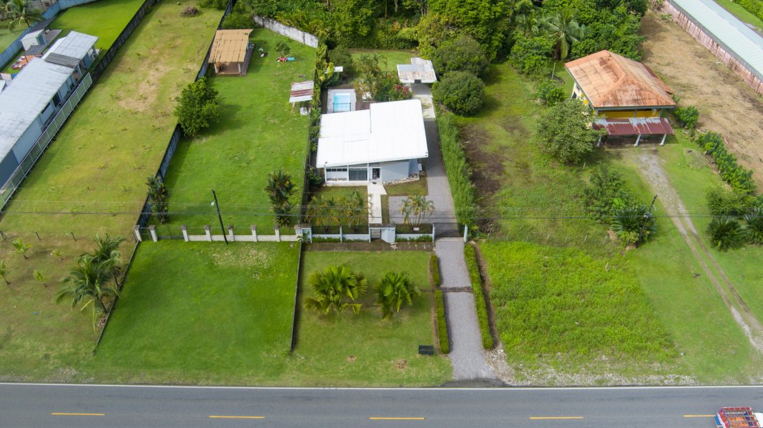 La propiedad cuenta con dos terrazas posteriores grandes, una terraza lateral pequeña y un mezzanine con tanque de agua de 1,000 litros y espacio de almacenamiento. Ubicada sobre la Carretera Interamericana, entre Ciudad Neily y Canoas, cerca de la nueva aduana, hospital, ríos y pozas naturales.