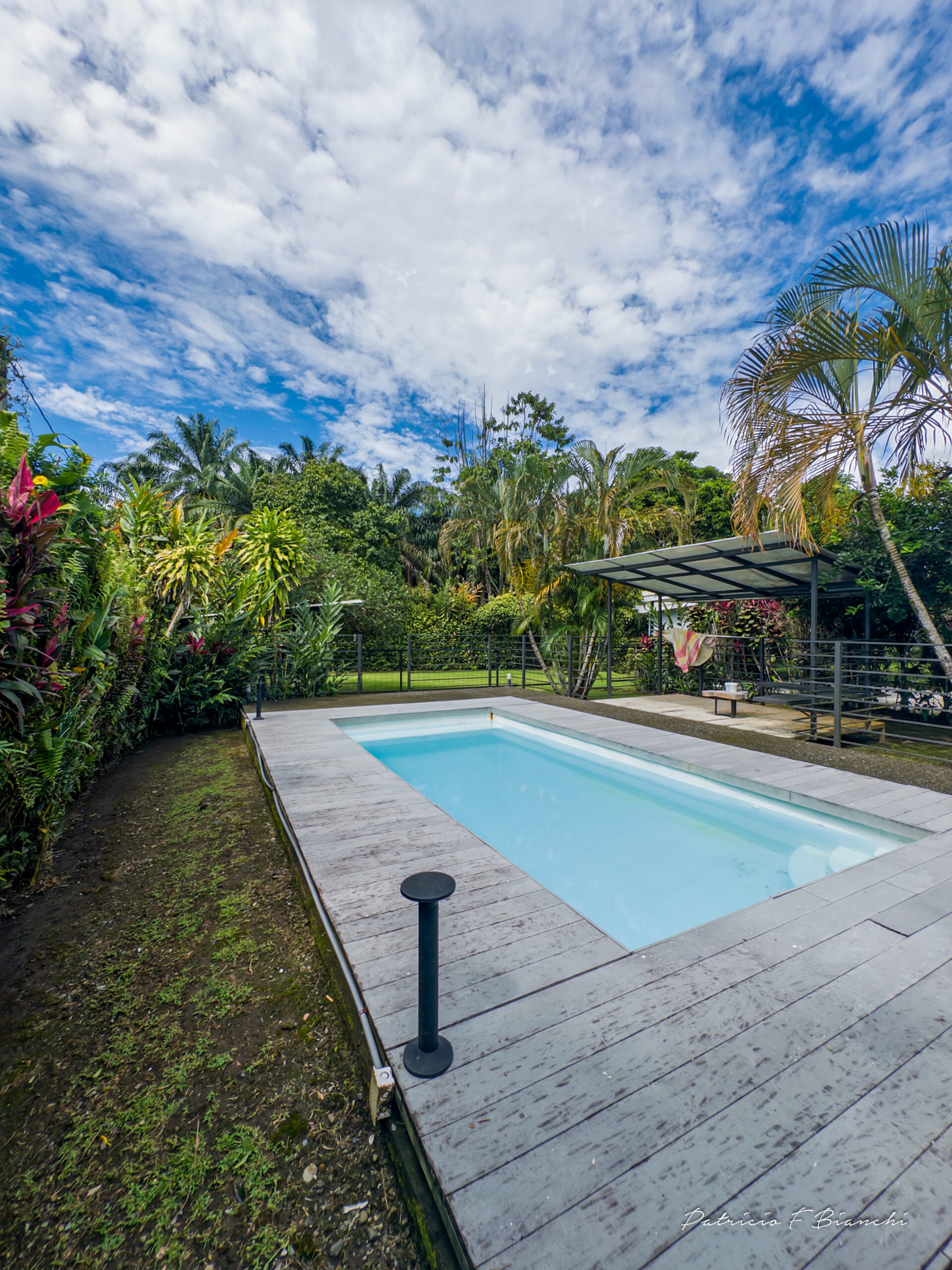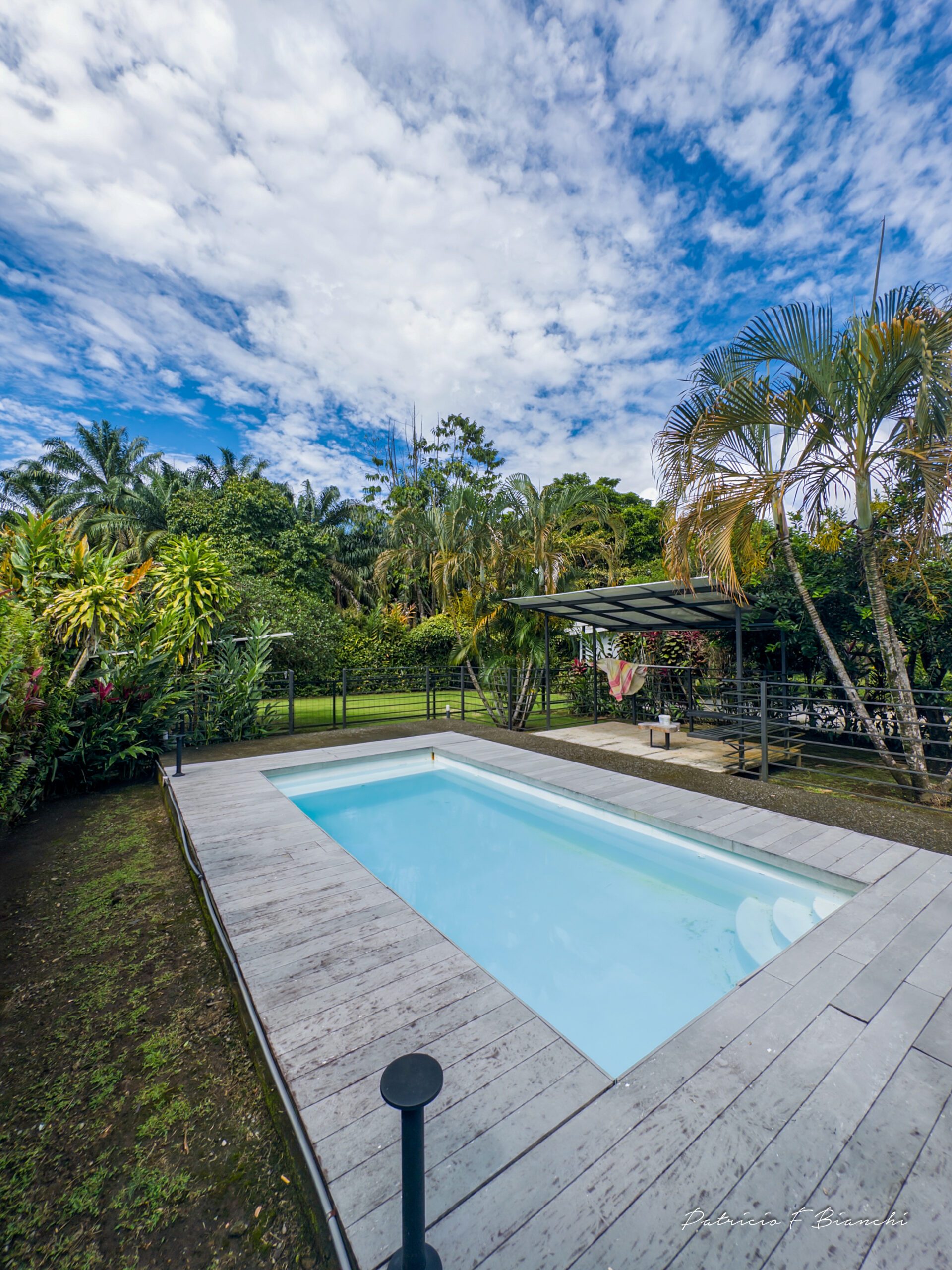 Piscina con deck y área verde