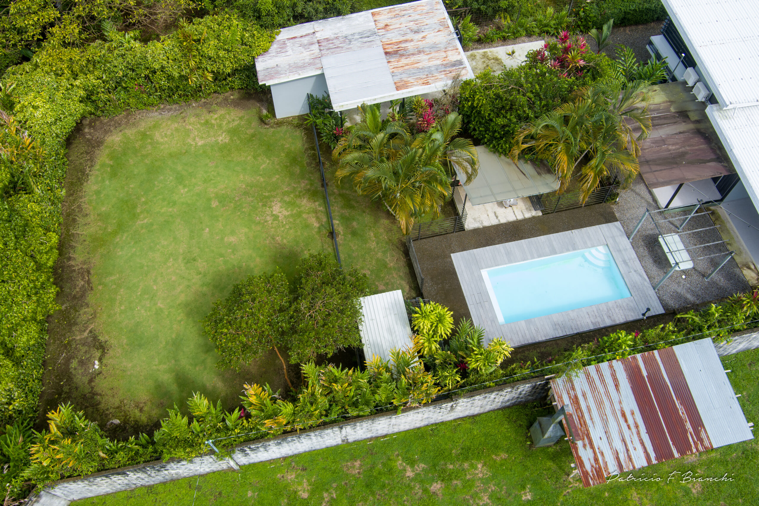 Pool with deck and green area