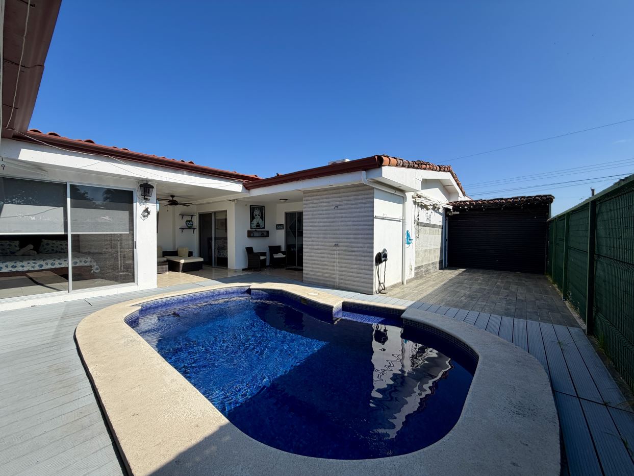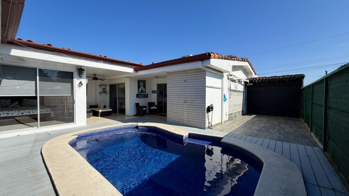 En el corazón de la casa:una piscina hermosa, área de bar y esa sensación constante de estar de vacaciones… todos los días.