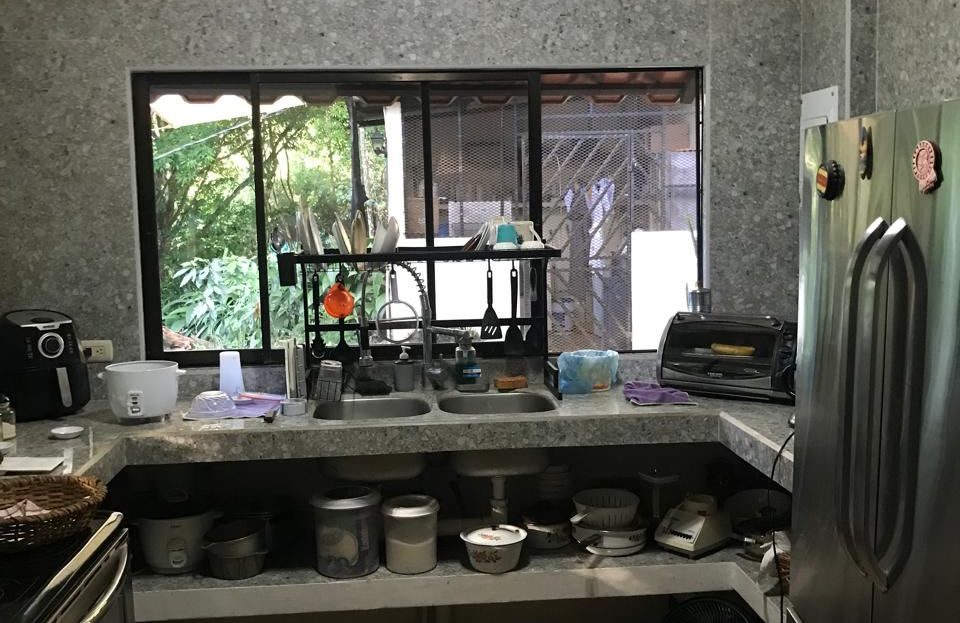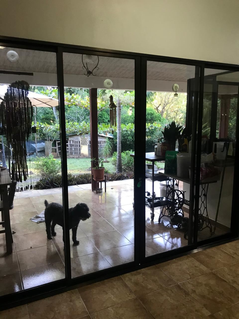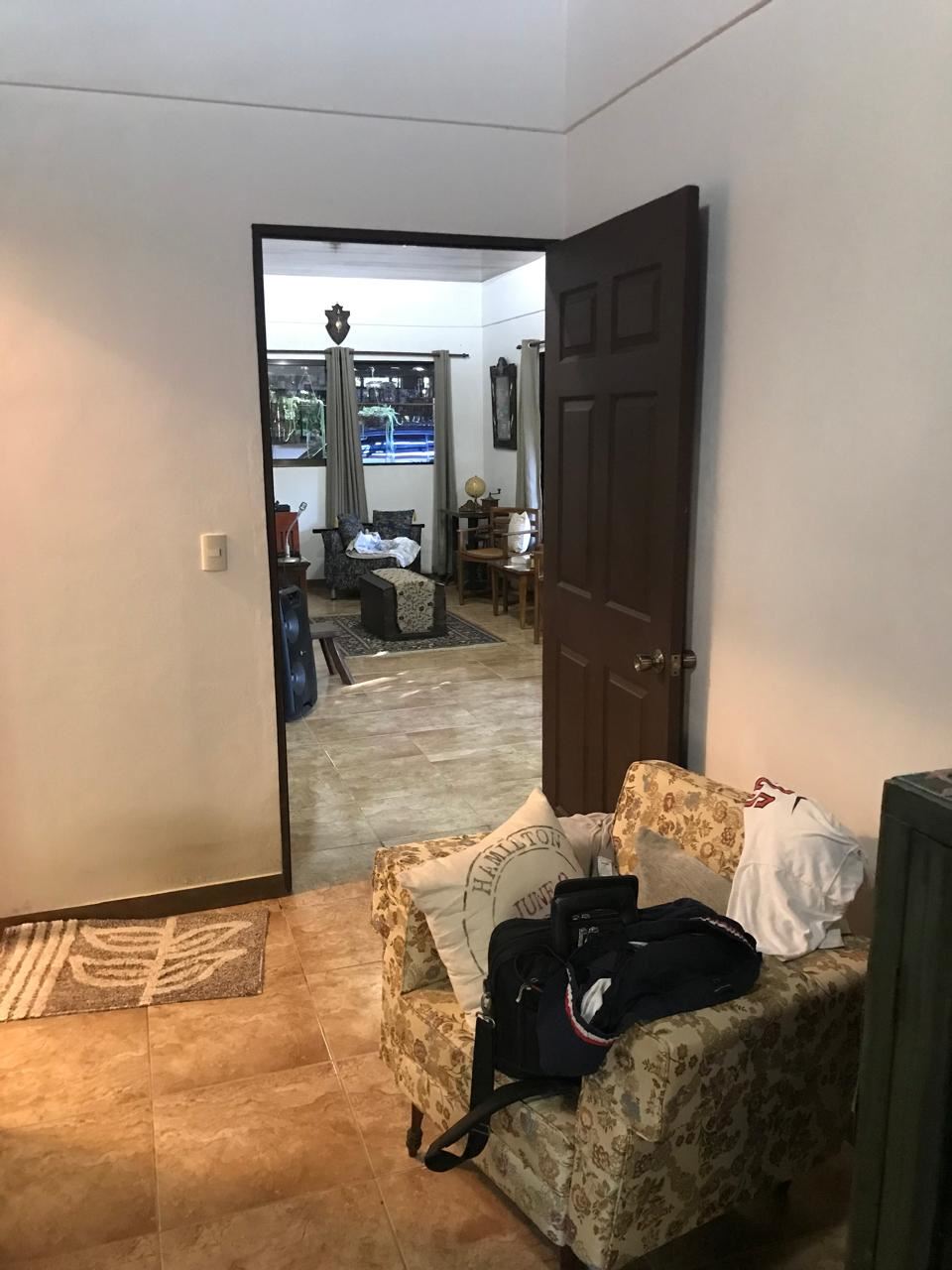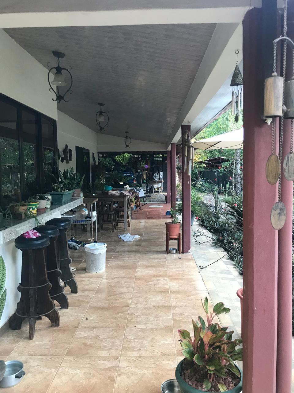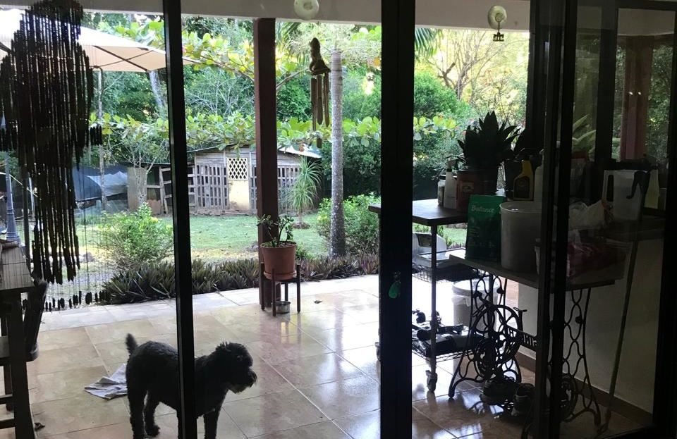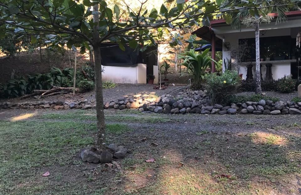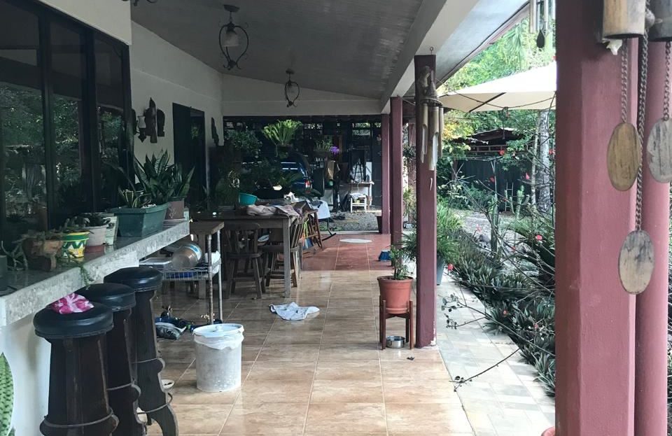 Countryside home in a farm setting next to primary forest with stream composed of 2 parcels, 3037 square meters, includes a house with 2 bedrooms, living room, kitchen, 2 full bathrooms, large hallway, laundry room, storage areas, garages for 6 cars, rancho bbq, pond, chicken coops, cages, green area, gardens, fruit and ornamental trees. There is a perimeter fence, security cameras.