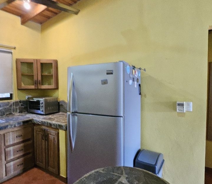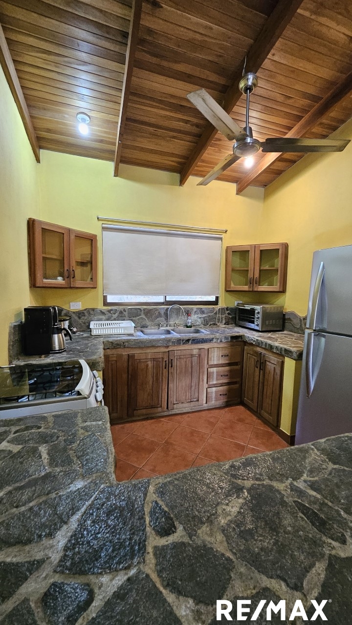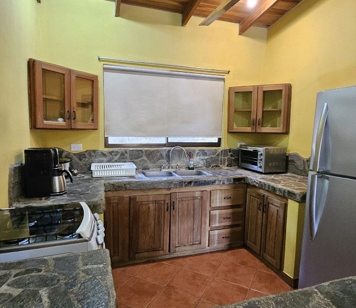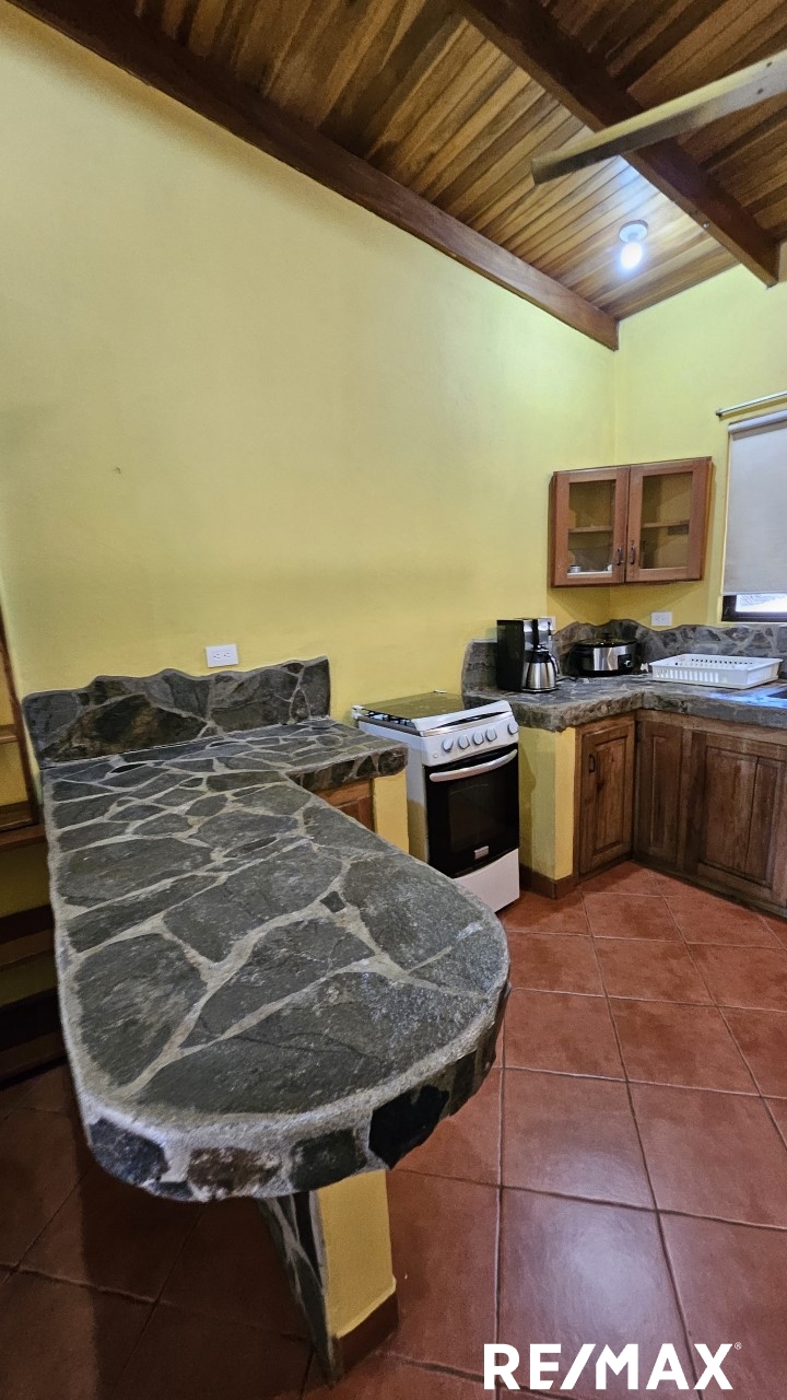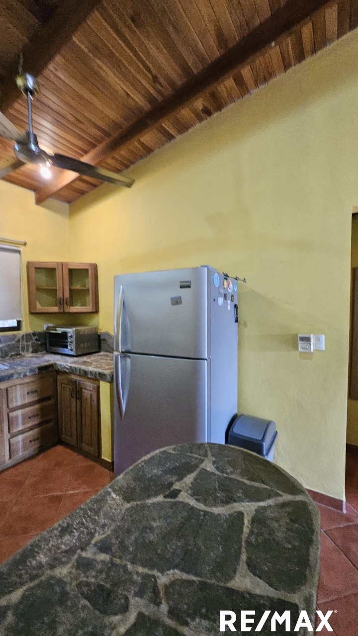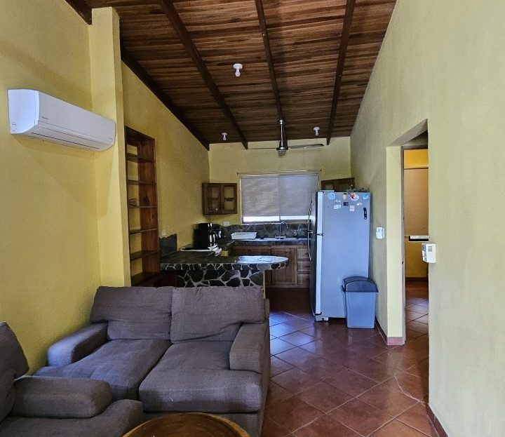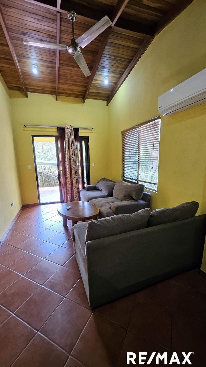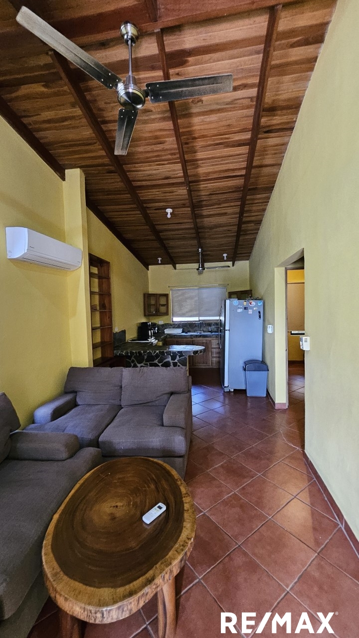 Nestled within a secure gated community, this 2-bedroom, 1-bath sanctuary offers the epitome of coastal living. Located within walking distance to the beach, indulge in the soothing rhythm of waves and salty breezes just moments from your doorstep. Boasting low HOA fees, the residence features stunning high vaulted ceilings adorned with captivating wood accents and beams, exuding warmth and charm throughout. Enjoy the surrounding natural beauty with ease, as walking and biking trails wind through the lush landscape, inviting exploration and adventure. Conveniently situated only 7 kilometers from Jaco, residents have access to a plethora of amenities, including shops, restaurants, and entertainment options. Additionally, the famed Los Sueños Marina and Golf Club are a mere 20-minute drive away, offering world-class recreational opportunities. Embrace a lifestyle of coastal luxury and convenience in this idyllic retreat. Welcome home to paradise.