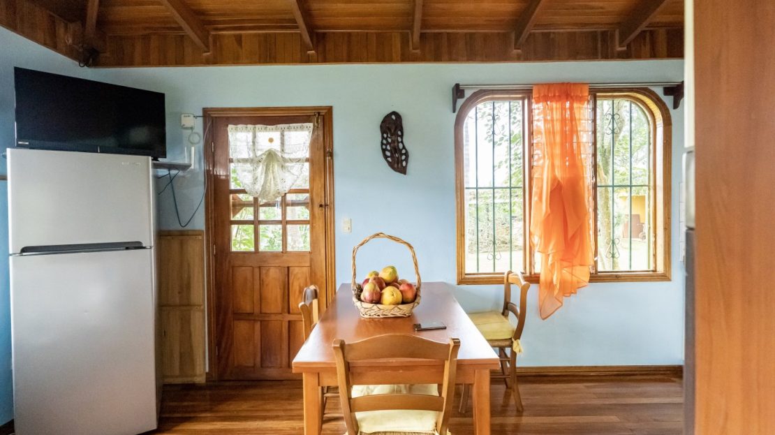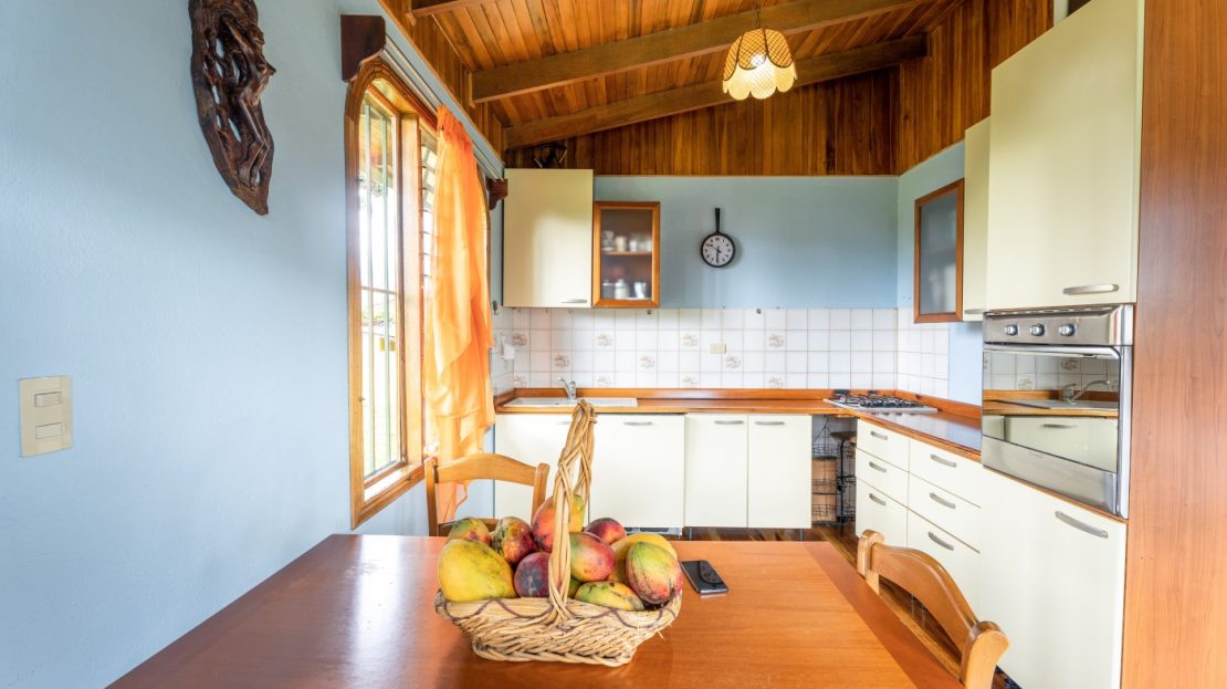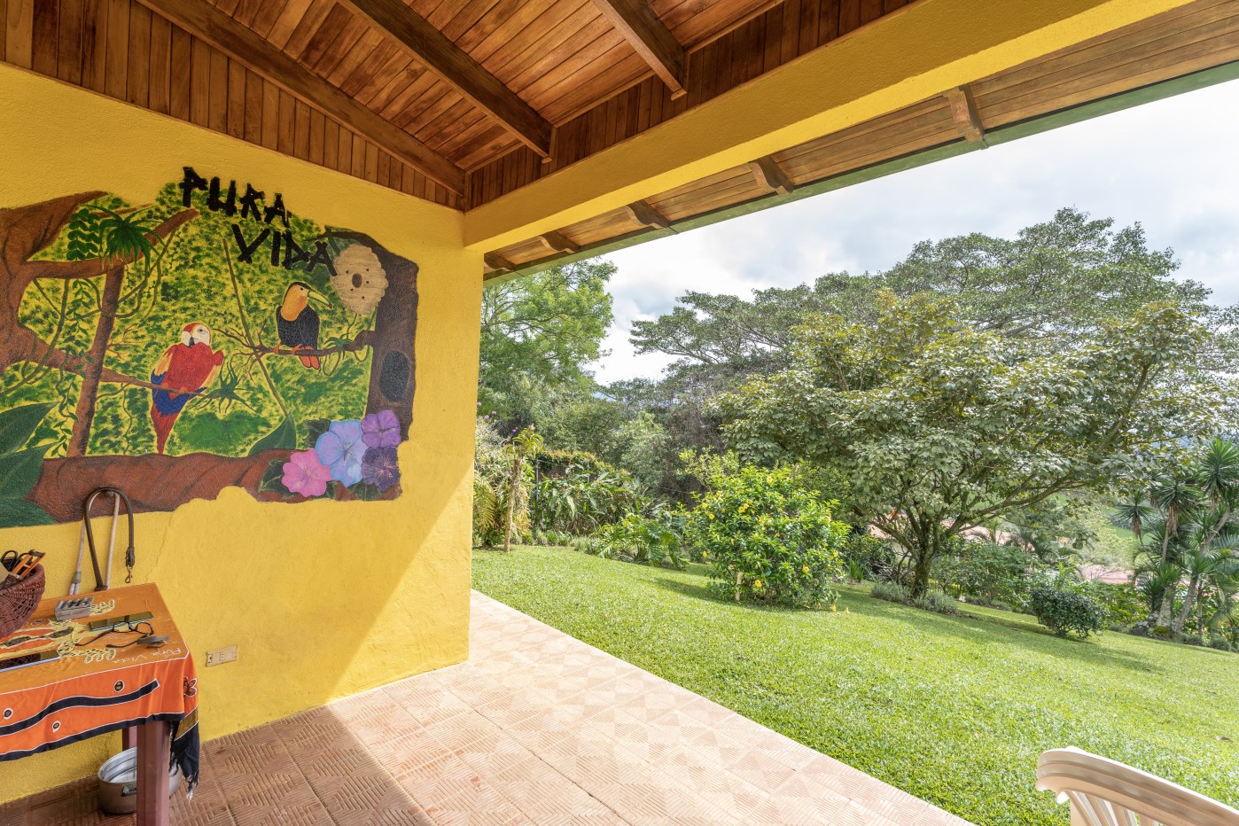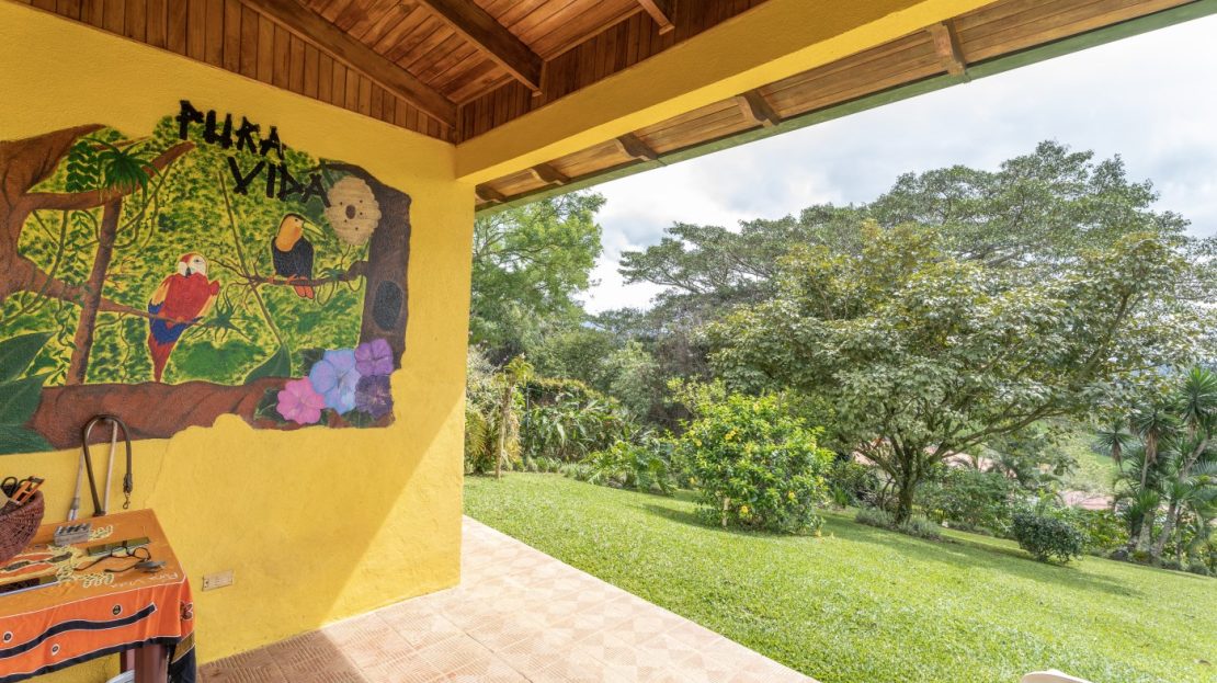 La propiedad se encuentra llena de arboles frutales y plantas ornamentales, tanto como hierbas aromáticas. Tiene una hermosa vista hacia las montañas y avistamiento de tucanes y diferentes pájaros de la zona.