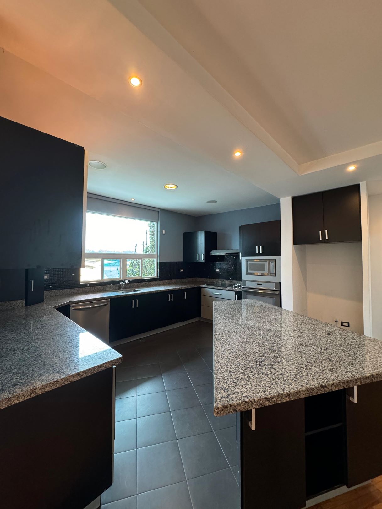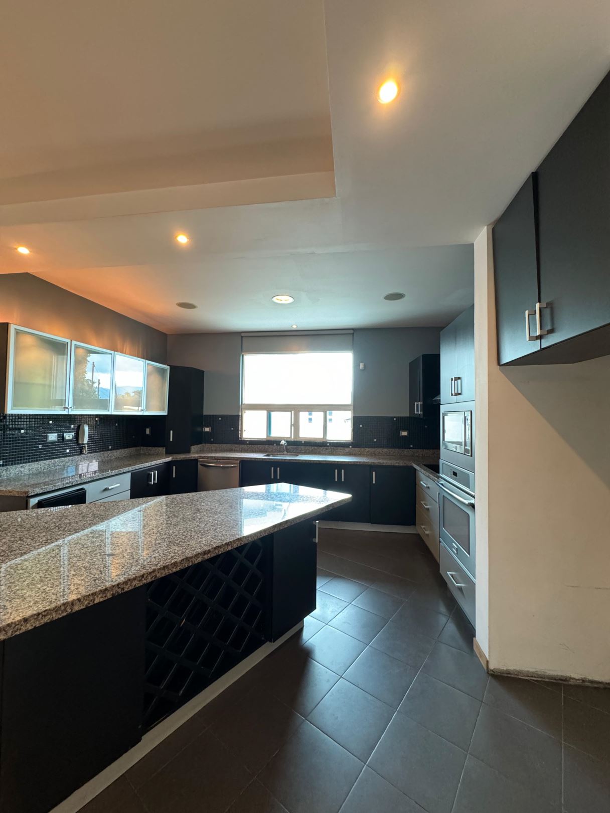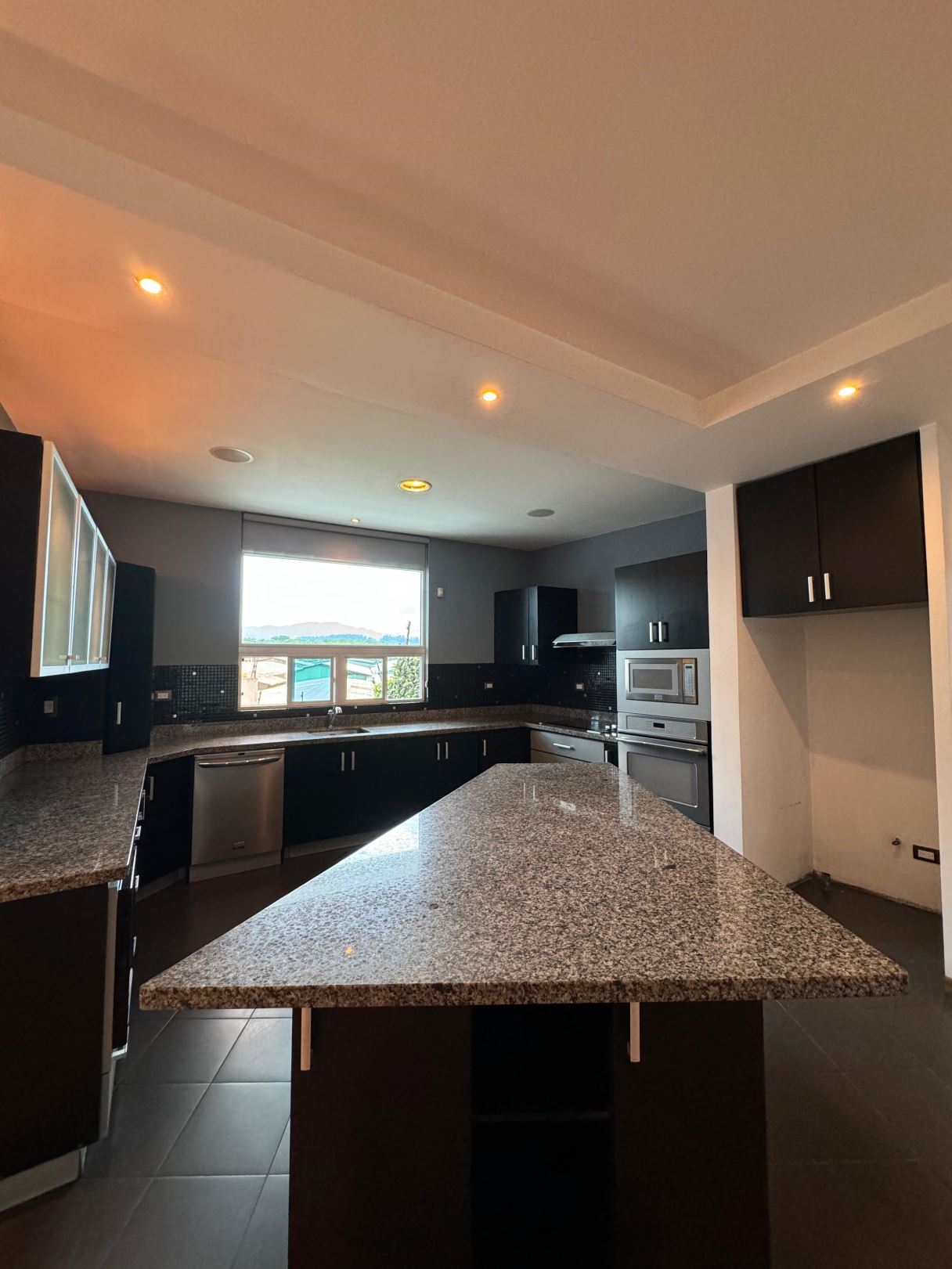 Cocina de Ensueño: Una preciosa cocina con isla central y sobres de granito natural, equipada con línea blanca empotrada de alta gama (hornos, plantilla eléctrica, lavaplatos y vinera).