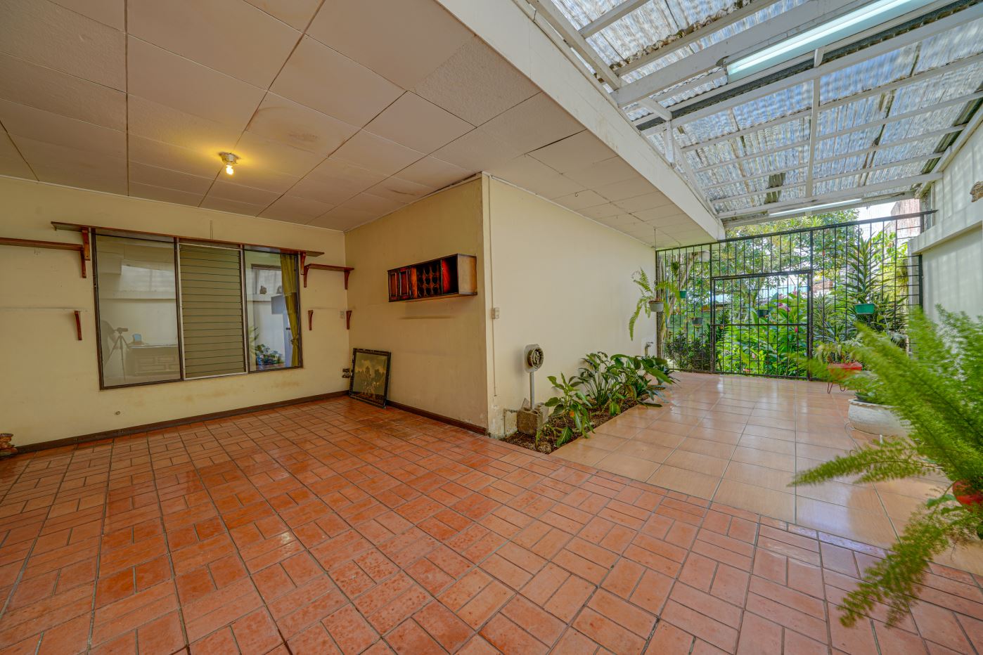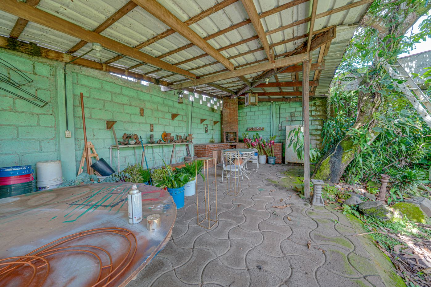 Spacious garden with a rancho: An area that can be converted into additional parking if needed.