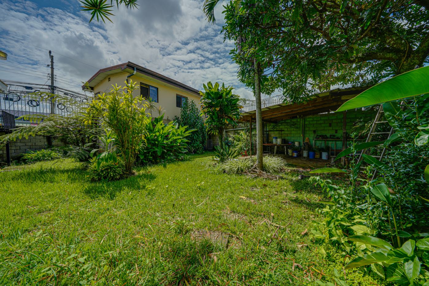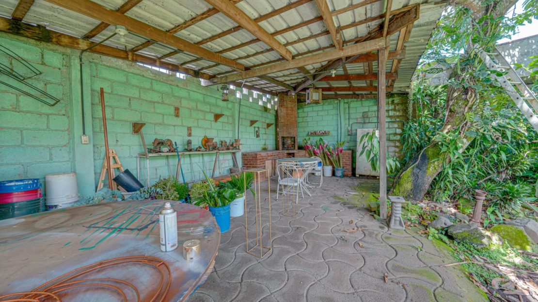 Jardín amplio y rancho: Un área que puede transformarse en estacionamiento adicional, aumentando la capacidad y utilidad del espacio.