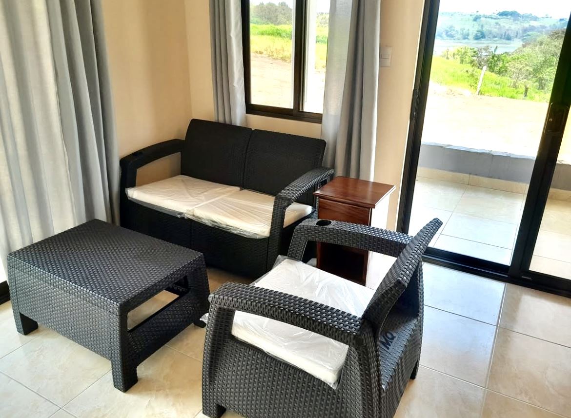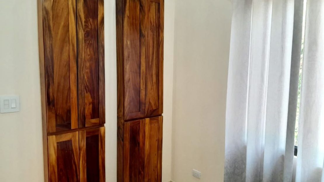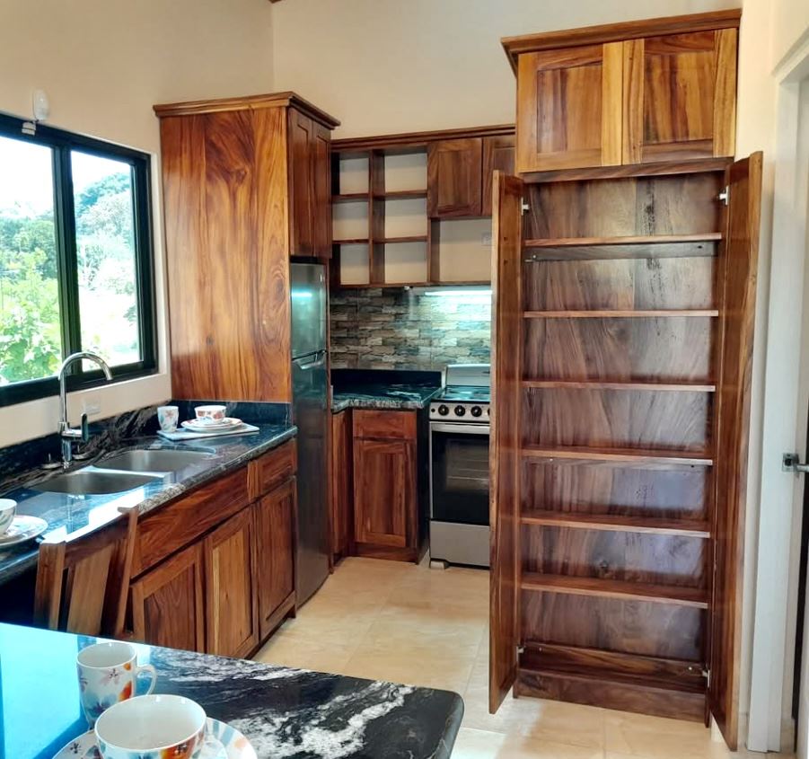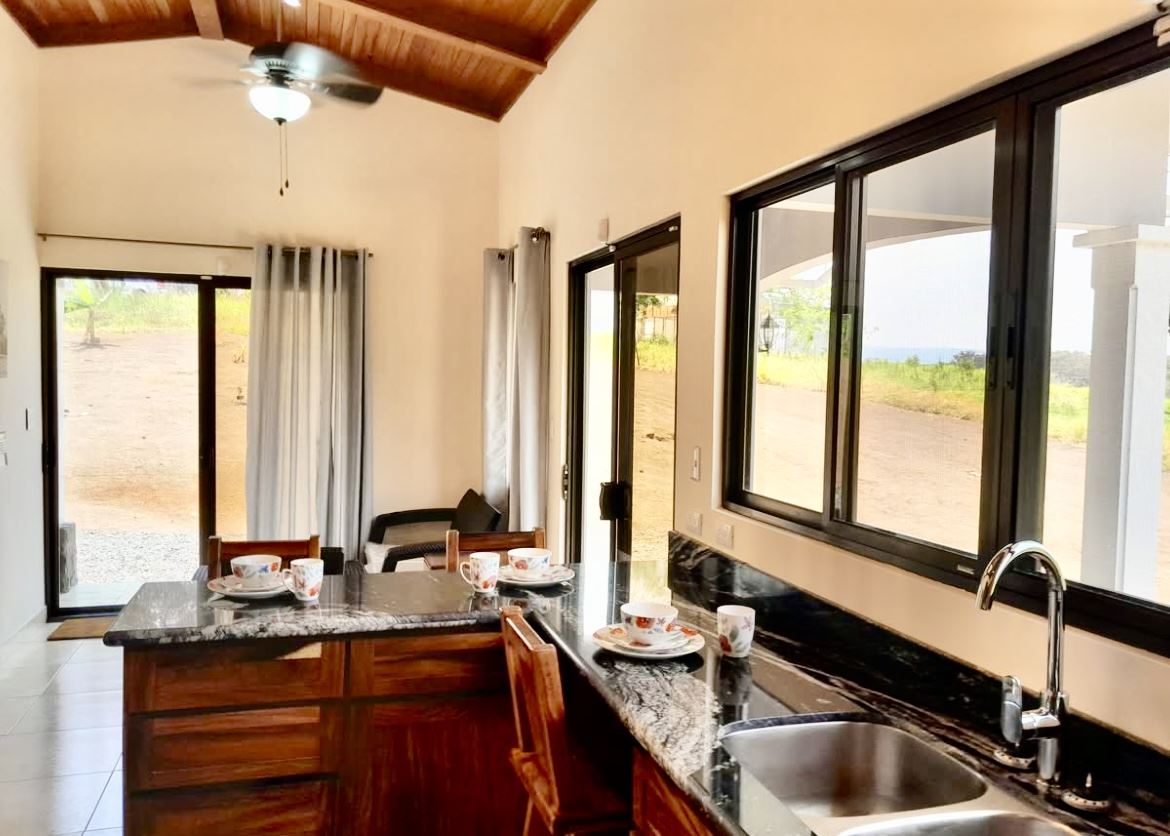 Designed for comfort and longevity, the home features standard block construction with a solid concrete foundation, ceramic tile flooring throughout, and rich solid wood Guanacaste cabinetry and furniture. The open-concept layout includes vaulted Cedro ceilings and large lake-facing windows that flood the space with natural light and showcase stunning views from every angle.