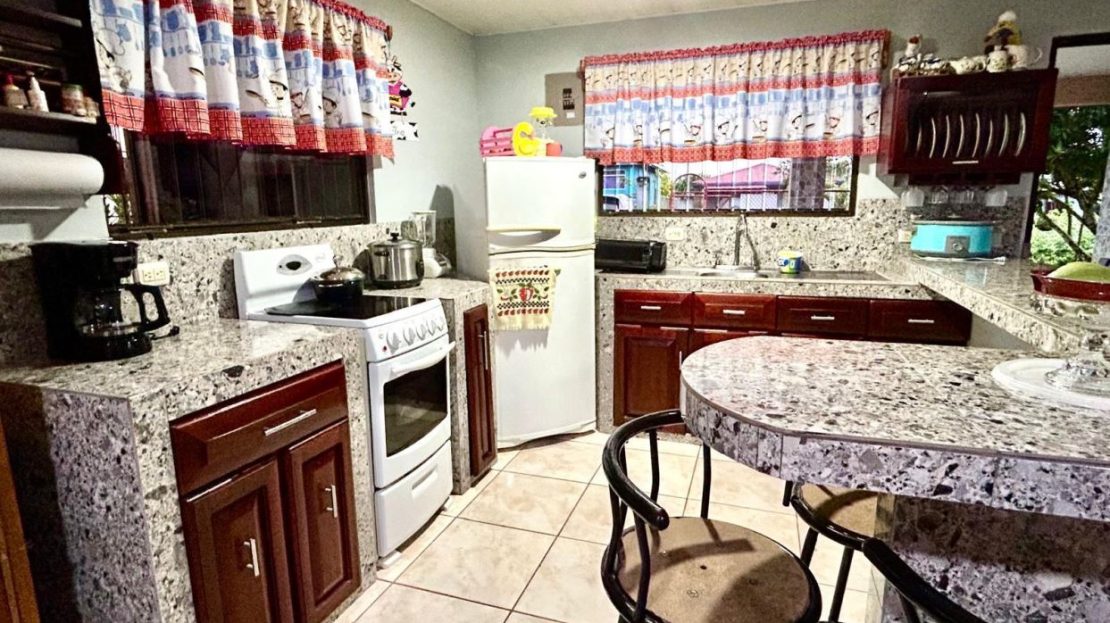 This charming Costa Rican-style three-bedroom, one-bath home offers approximately 1,400 square feet of living space on a quiet road, set on a 2,691 square foot lot with peaceful countryside views