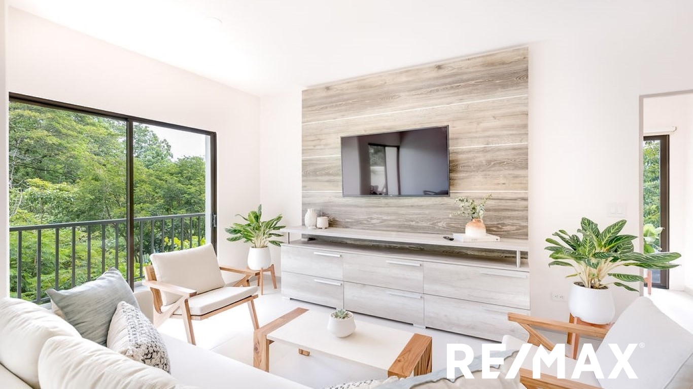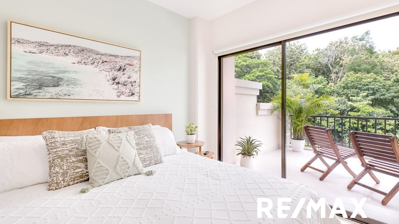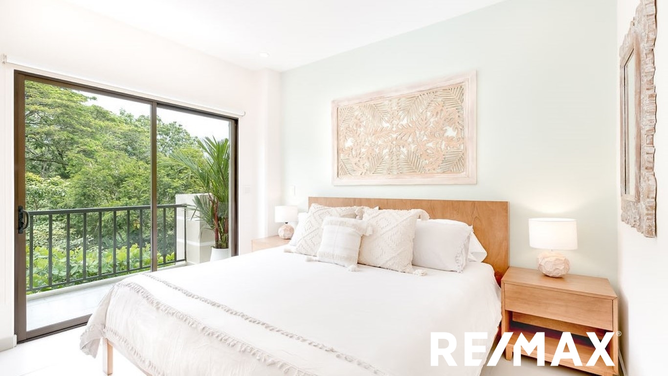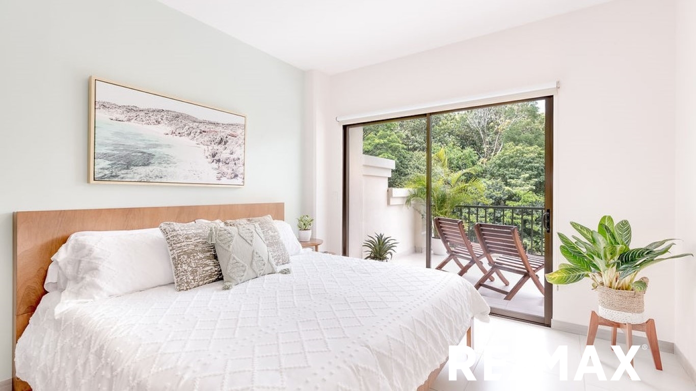 The condo was remodeled by a Canadian interior designer to create a relaxing, contemporary, coastal aesthetic. It is spacious, private, and conveniently located on the third floor with an expansive private balcony. It is one of the few condos in the area where you look out towards a protected forest and won’t have city noise, construction to contend with, or new developments blocking your view. A quiet peaceful oasis steps away from the lively beach town of Jaco.