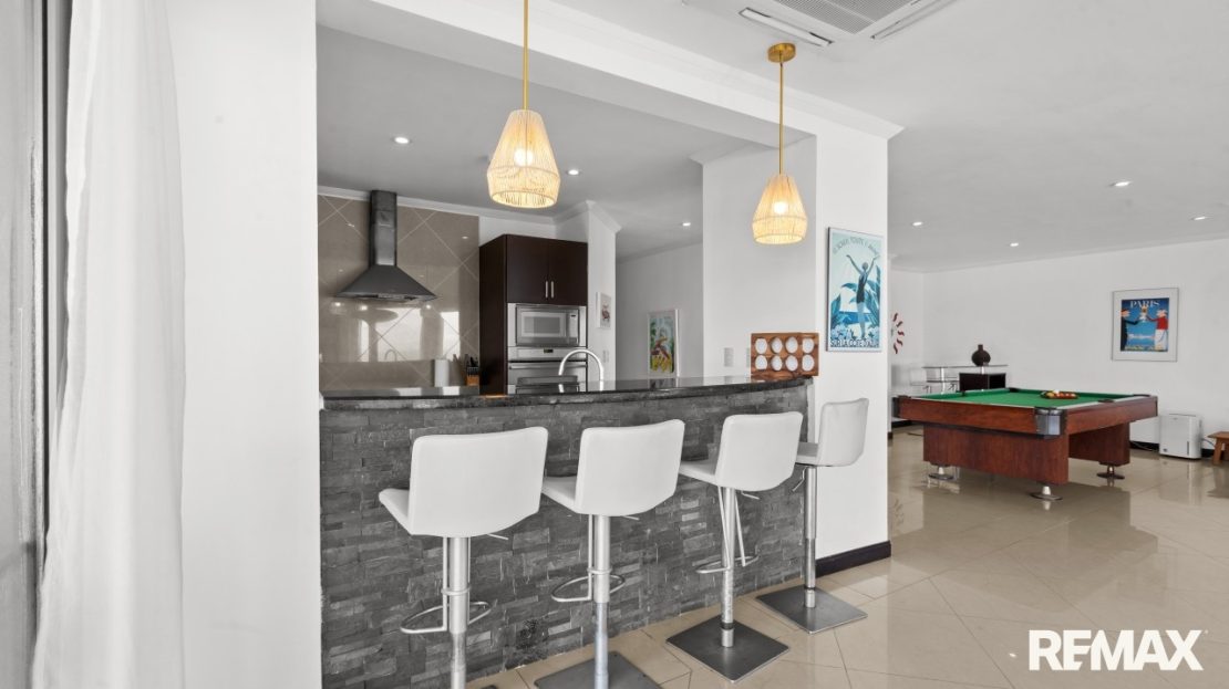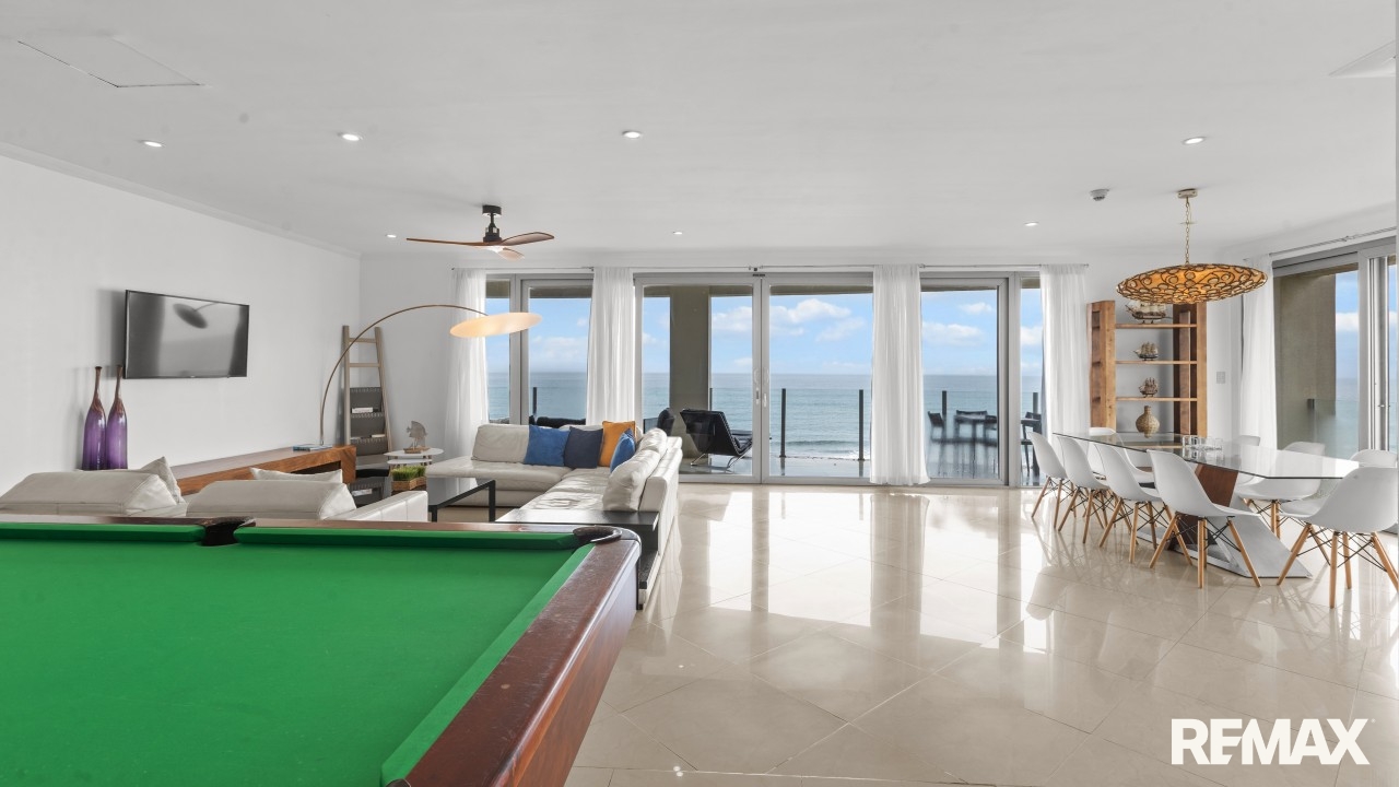 Perfectly designed for entertaining, this condo features an expansive ocean-facing living area complete with a full-size pool table, ideal for hosting family, friends, or high-value rental guests. Each bedroom offers an en-suite bath for privacy and comfort, while an additional half-bath in the living area adds convenience. The unit is being sold fully furnished and turnkey ready, making it effortless to move in or start generating rental income immediately.