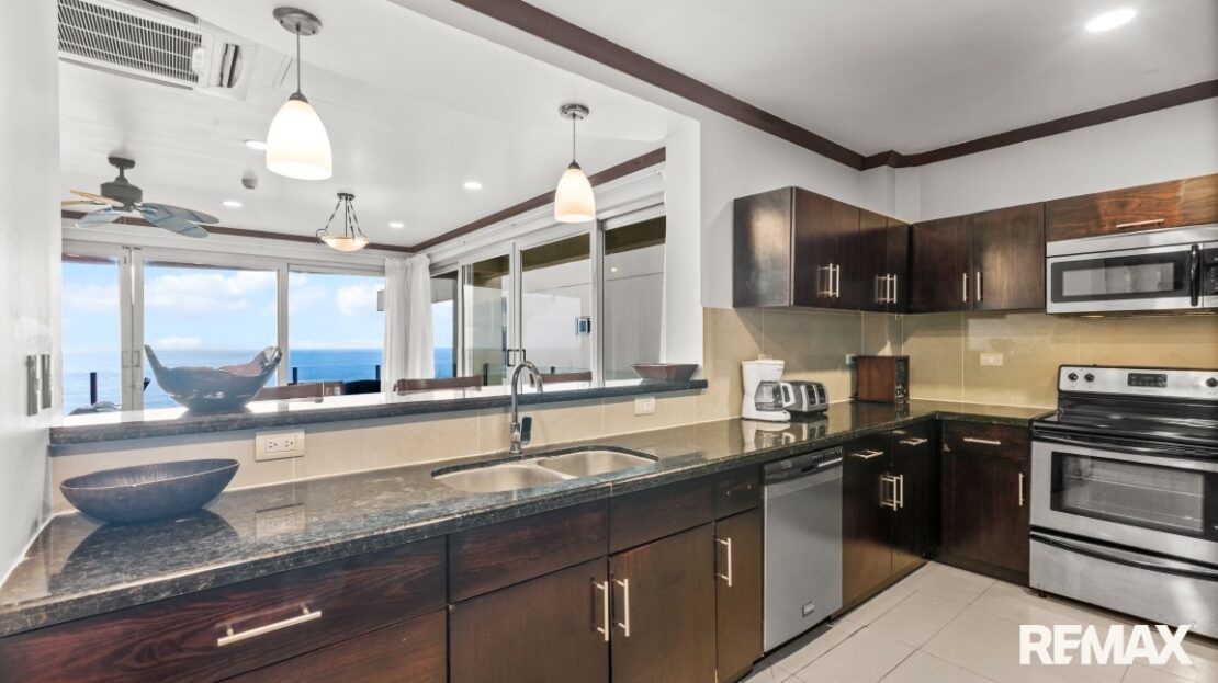 Step into a sun-drenched open layout featuring sleek porcelain floors, custom hardwood cabinetry, and stainless steel appliances in a modern kitchen. The spacious living area flows effortlessly onto a wrap-around balcony, perfect for sipping your morning coffee or catching world-class sunsets. Each bedroom enjoys its own private balcony, creating peaceful retreats for everyone in the home.