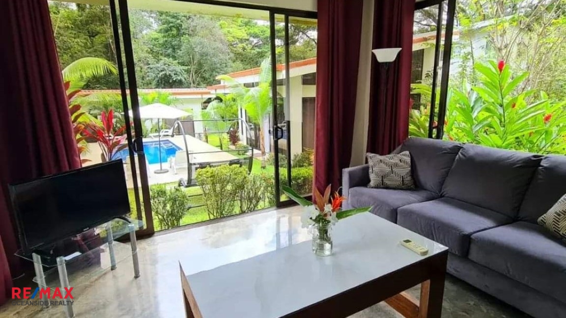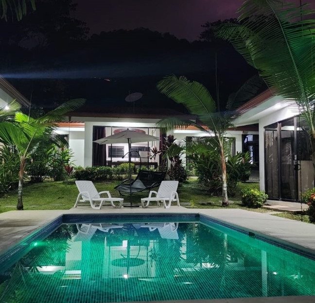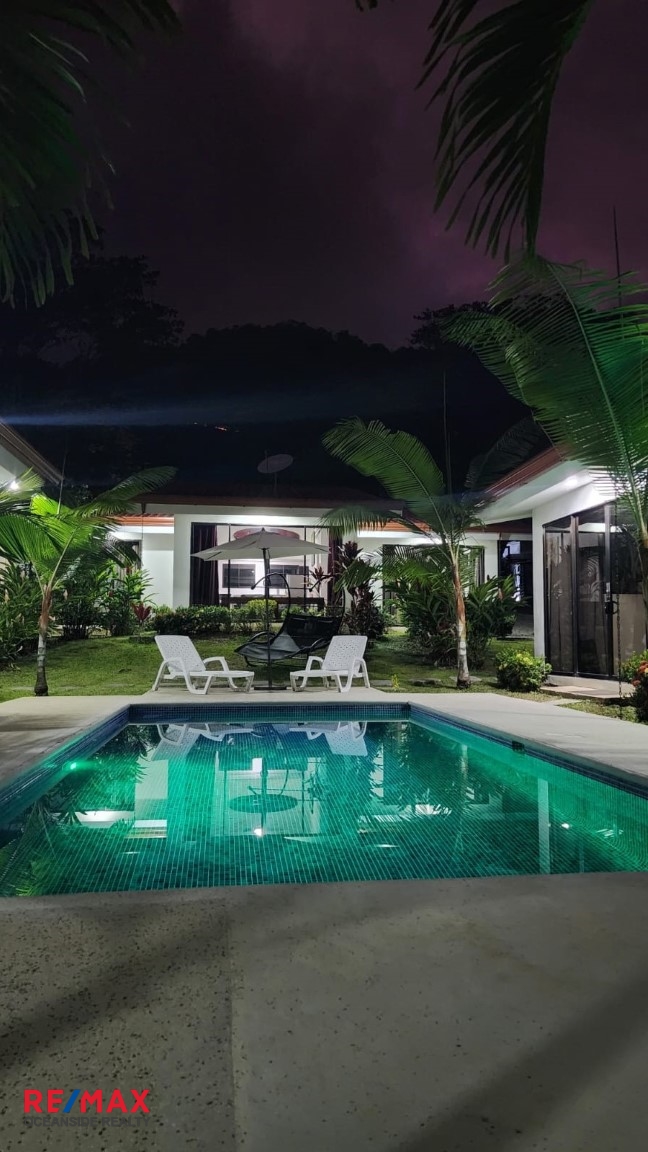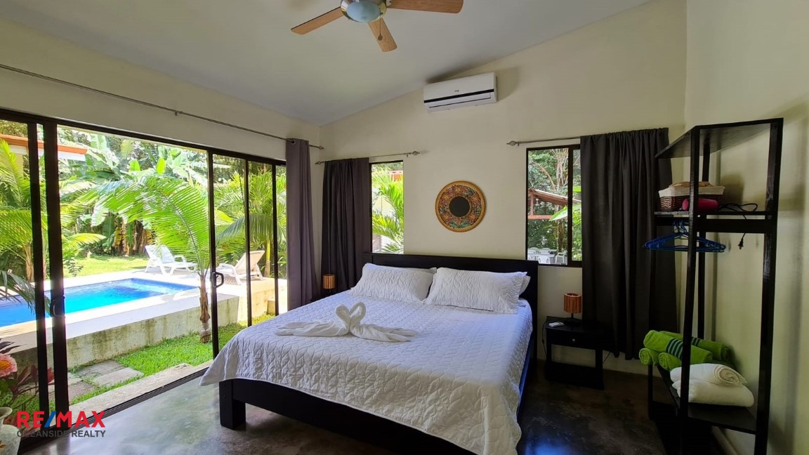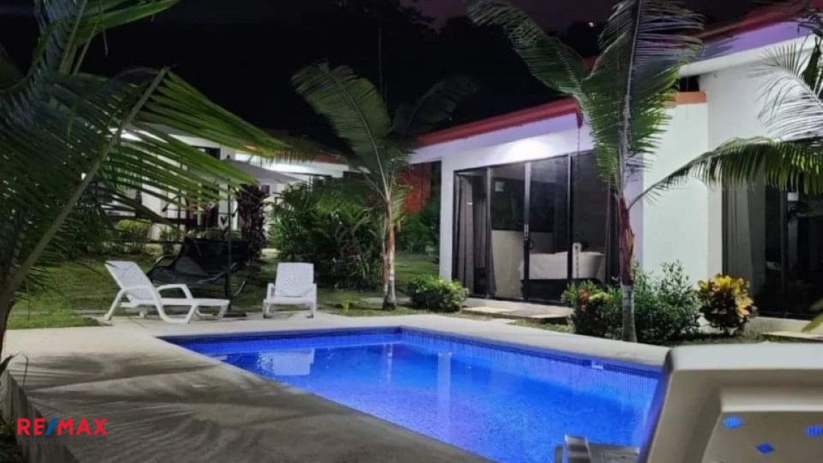Dream Tropical Paradise. Totally unique, jewel of a property located in heart of hermosa Beach, Costa Rica. 7 bedrooms 6 bathrooms and enough space to accommodate an entire party or group for vacations. 4 buildings in total with 3 houses and 2 studios each come with bedrooms, bathrooms, kitchens, a single washer and dryer, free wifi, air conditioning in each room and parking within the property. LOCATION This dream tropical paradise is located on Calle Conga within Playa Hermosa, we are located deep within the mountains which gives the benefit of peace and privacy, while also being immersed in nature. Nearby down the road is the world famous Playa Hermosa, known for its immense beauty and being a favorite surf destination and a 10 minute drive from Playa Jaco the closest beach to the airport and favorite tourist spot due to the many restaurants, bars and nightlife PROPERTY This Modern Property was built in 2021, LOT SIZE of 1200 sq. meters. (12,917 square feet) with fenced perimeter. Property is in excellent condition, custom built, meticulously maintained by the owners. Dream Tropical Paradise has two bedrooms, two bathrooms and a full sized kitchen, house two has one master bedroom, a private bathroom and a full sized kitchen, house three has two bedrooms a bathroom and a full sized kitchen and both studios have a kitchenette and bathrooms, each room comes equipped with a king sized bed and air-conditioning with free wifi on the property includes washer, dryer, a swimming pool and secured by a gate. MAIN HOUSE: 75 sq. meters (775 square feet) main house, w/living room, kitchen, 2 bedrooms, 2 bathrooms, 3 AC units, king size beds. APARTMENT 1: Measuring 58 sq. meters (624 square feet) with large living room, kitchen, 1 bedroom, 1 bathroom, ceiling fans. APARTMENT 2: Measuring 58 sq. meters (624 square feet) with living room, kitchen, 2 bedroom with a king size bed in each bedroom, 1 bathroom. 2 STUDIOS: Each of them with comfortable furniture. 19,50 sq. meters (209,85 square feet) king size bed , A/C, Small fridge and microwave. RANCHO Measuring 60 sq. meters (645 square feet) PARKING: Parking for 8 cars. Beautiful gardens all around the property. CONSTRUCTION: House is high tech and low maintenance, foam-core construction on floating slab – cool year-round and earthquake proof. INCLUING: Website and social media pages. ……………………………………………. Totalmente única, joya de propiedad ubicada en el corazón de Playa Hermosa, Costa Rica. 7 dormitorios 6 baños y suficiente espacio para acomodar a todo un grupo o grupo de vacaciones. 4 edificios en total con 3 casas y 2 estudios cada uno vienen con habitaciones, baños, cocinas, una sola lavadora y secadora, wifi gratis, aire acondicionado en cada habitación y estacionamiento dentro de la propiedad. LOCALIZACIÓN Ubicados en Calle Conga dentro de Playa Hermosa, estamos ubicados en lo profundo de las montañas, lo que brinda el beneficio de la paz y la privacidad, al mismo tiempo que se sumerge en la naturaleza. Cerca del camino se encuentra la mundialmente famosa Playa Hermosa, conocida por su inmensa belleza y por ser un destino favorito para surfear y a 10 minutos en automóvil de Playa Jaco, la playa más cercana al aeropuerto y el lugar turístico favorito debido a la gran cantidad de restaurantes, bares y vida nocturna. PROPIEDAD Esta propiedad moderna fue construida en 2021, TAMAÑO DE LOTE de 1200 metros cuadrados. (12,917 pies cuadrados) con perímetro cercado. La propiedad está en excelentes condiciones, construida a la medida, mantenida meticulosamente por los propietarios. La casa uno tiene dos dormitorios, dos baños y una cocina grande, la casa dos tiene un dormitorio principal, un baño privado y una cocina grande, la casa tres tiene dos dormitorios, un baño y una cocina grande y ambos estudios tienen una cocina pequeña y baños , cada habitación está equipada con una cama king size y aire acondicionado con wifi gratuito en la propiedad que incluye lavadora, secadora, una piscina y está protegida por una puerta. CASA PRINCIPAL: Casa principal de 75 metros cuadrados (775 pies cuadrados), con sala de estar, cocina, 2 dormitorios, 2 baños, 3 unidades de aire acondicionado, camas king size. APARTAMENTO 1: Mide 58 metros cuadrados (624 pies cuadrados) con amplia sala de estar, cocina, 1 dormitorio, 1 baño, ventiladores de techo. APARTAMENTO 2: Mide 58 metros cuadrados (624 pies cuadrados) con sala, cocina, 2 dormitorios con una cama king size en cada dormitorio, 1 baño. 2 ESTUDIOS: Cada uno de ellos con cómodo mobiliario. 19,50 metros cuadrados (209,85 pies cuadrados) cama king size, aire acondicionado, nevera pequeña y microondas. RANCHO Mide 60 metros cuadrados (645 pies cuadrados) ESTACIONAMIENTO: Estacionamiento para 8 autos. Hermosos jardines alrededor de la propiedad. CONSTRUCCIÓN: La casa es de alta tecnología y bajo mantenimiento, construcción con núcleo de espuma sobre losa flotante, fresca todo el año y a prueba de terremotos. INCLUYE: Sitio web y páginas de redes sociales.”/>