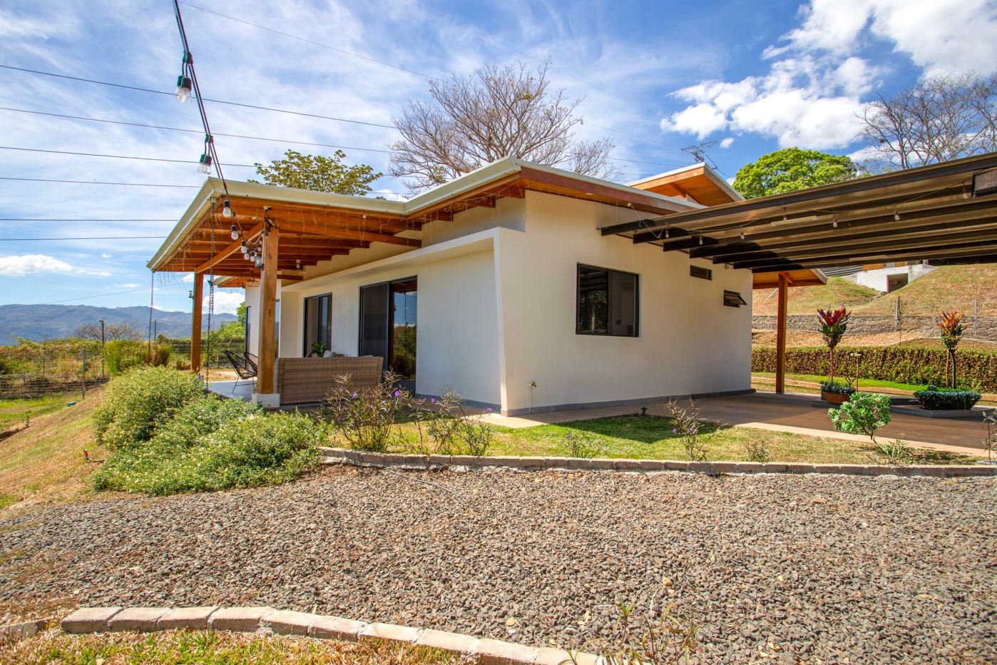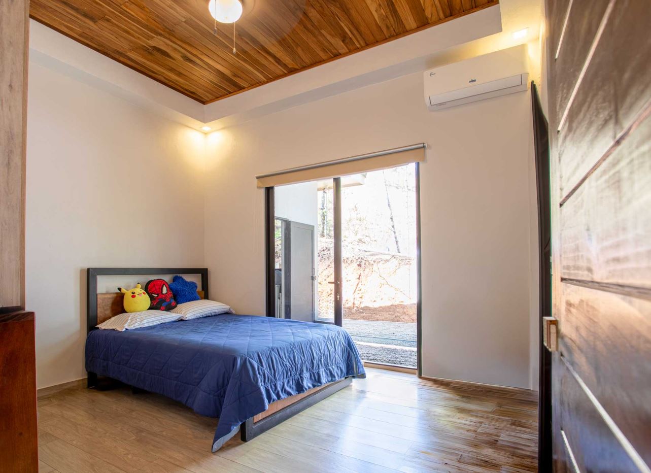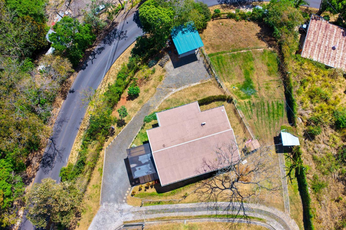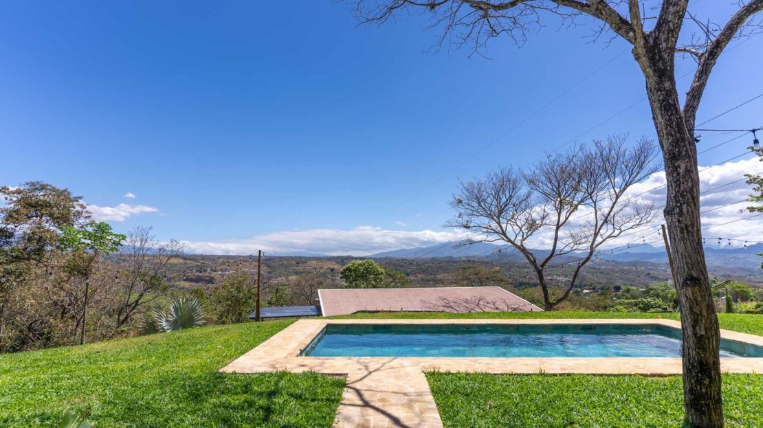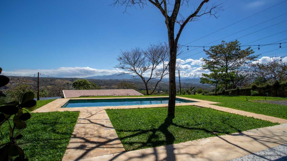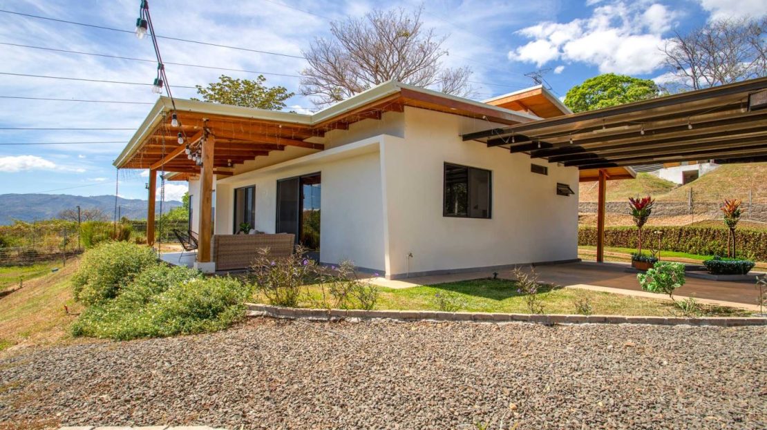 Eclectic modern meets traditional home with views in a farm setting located no more than 5 minutes from Atenas Center and 5 minutes from the new highway 27. The home features two private gates that leads to a hilltop with views of the Central Valley mountains and much of San Jose. The nice size yard is nicely landscaped throughout. The artesenal main formal entry wooden door leads to a inner terranium and office nook. The open living room has plenty of space for the formal dining room, living room and ample modern kitchen. There is nicely finished woodwork throughout the outside and inside of the home. The main extra large master bedroom suite leads to a bathroom with shower and tub and two double sinks with an added walk in closet. There are two nice size guest rooms with guest bathroom. There is an added room for an office or any other use with a third adjacent full bathroom. Outside there is a half bathroom for pool use. Come find your new Atenas home in Costa Rica!