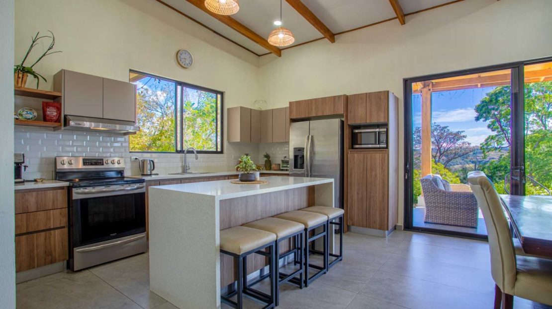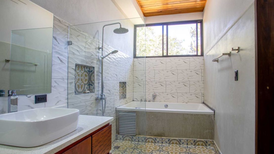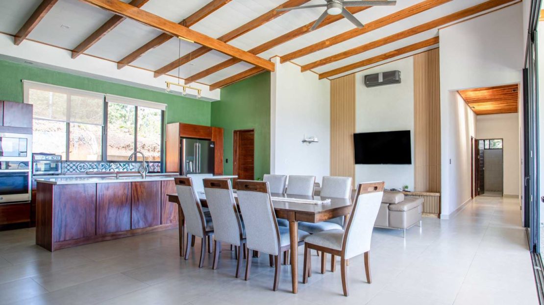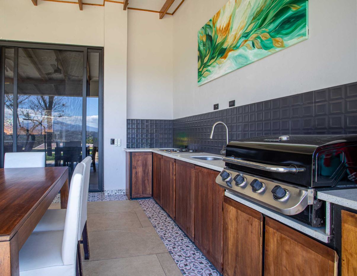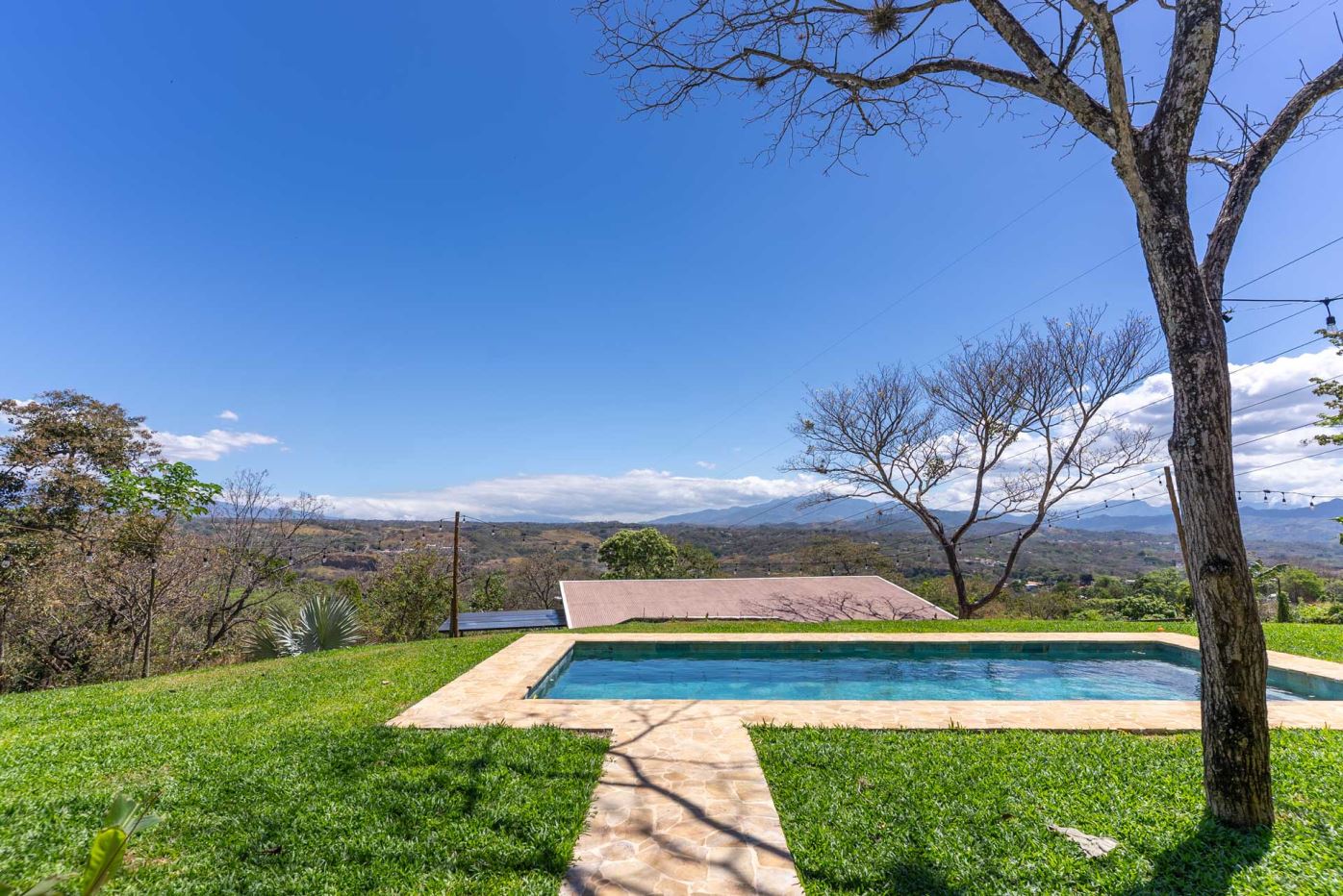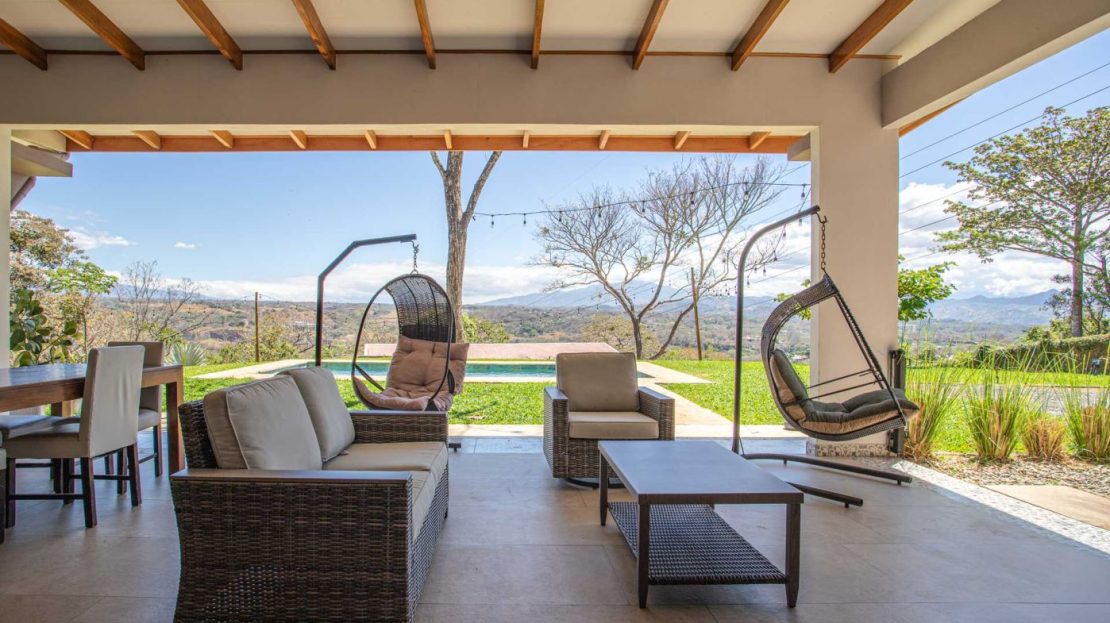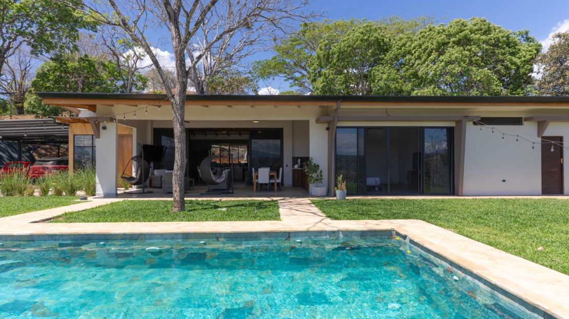 Eclectic modern meets traditional home with views in a farm setting located no more than 5 minutes from Atenas Center and 5 minutes from the new highway 27. The home features two private gates that leads to a hilltop with views of the Central Valley mountains and much of San Jose. The nice size yard is nicely landscaped throughout. The artesenal main formal entry wooden door leads to a inner terranium and office nook. The open living room has plenty of space for the formal dining room, living room and ample modern kitchen. There is nicely finished woodwork throughout the outside and inside of the home. The main extra large master bedroom suite leads to a bathroom with shower and tub and two double sinks with an added walk in closet. There are two nice size guest rooms with guest bathroom. There is an added room for an office or any other use with a third adjacent full bathroom. Outside there is a half bathroom for pool use. Come find your new Atenas home in Costa Rica!
